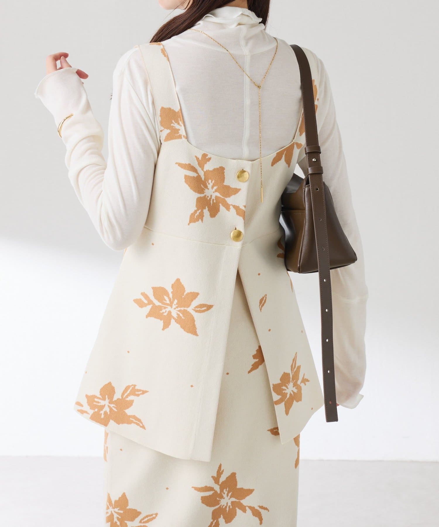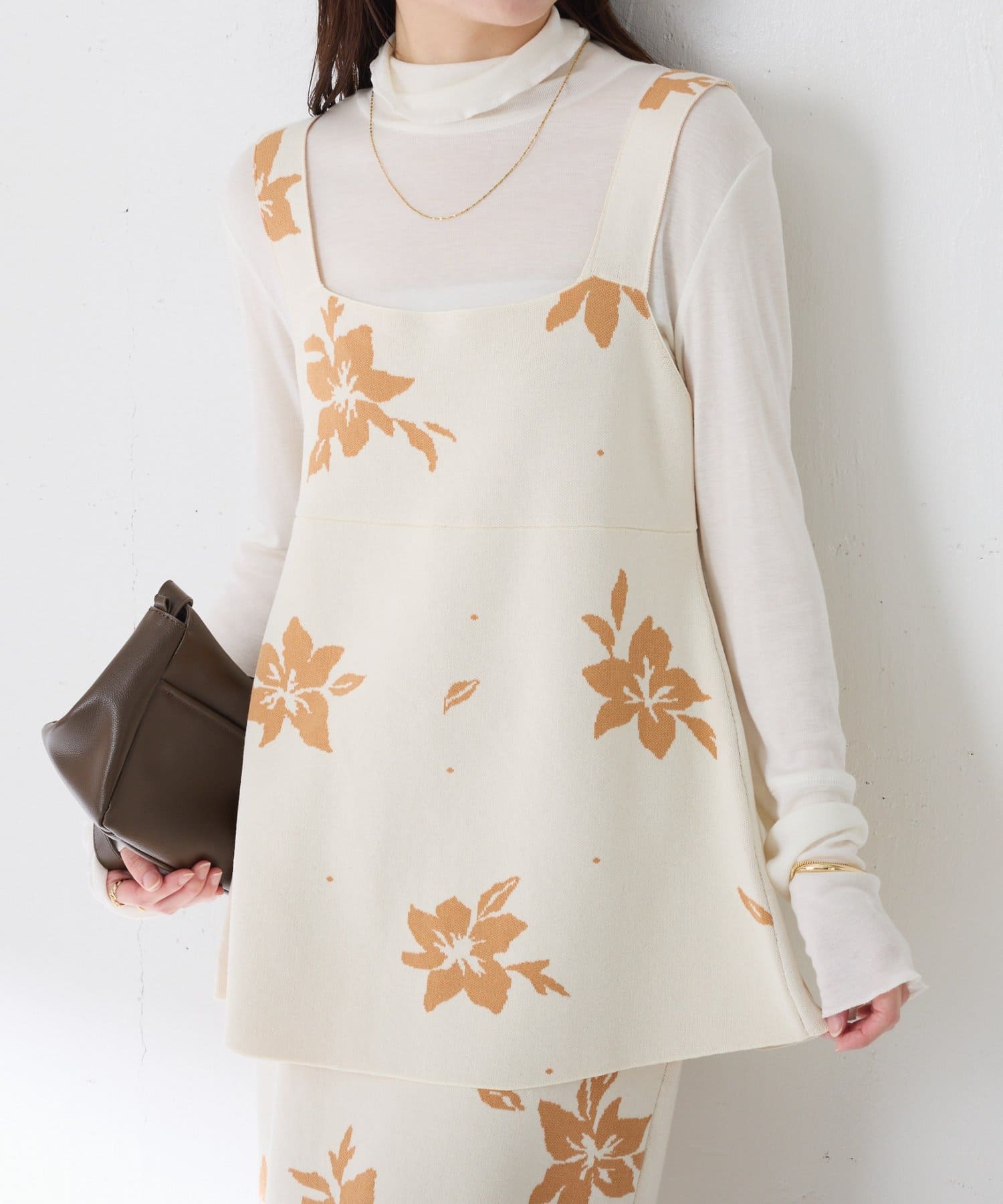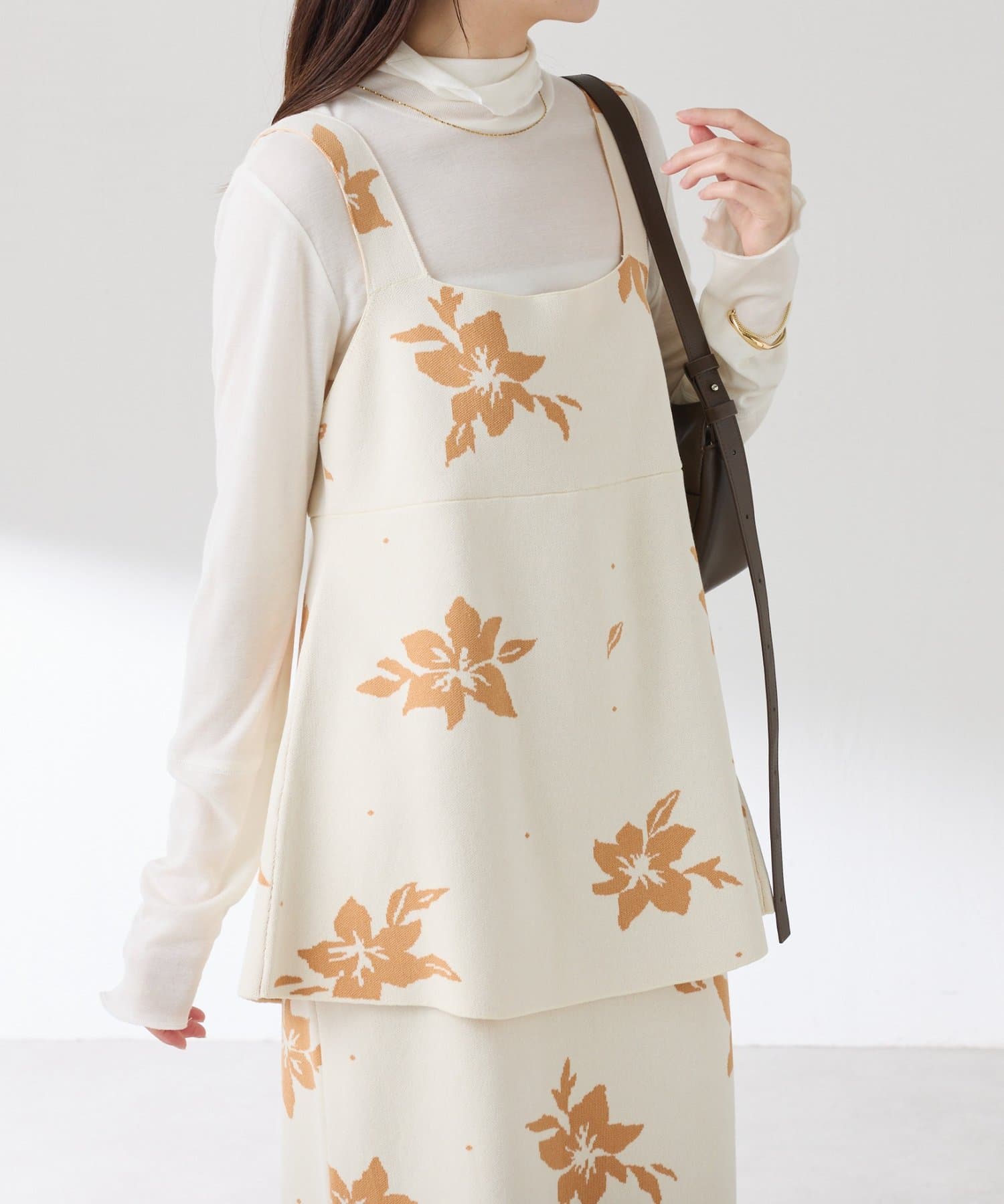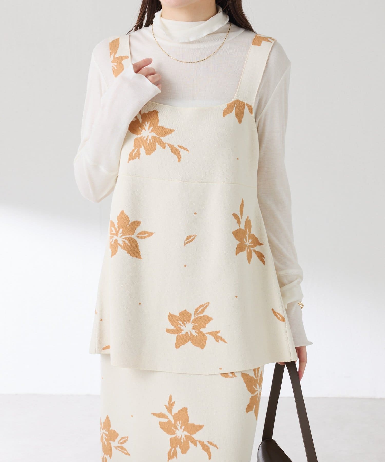 【前後2通りで着れる】フラワージャガードニットキャミ/セットアップ