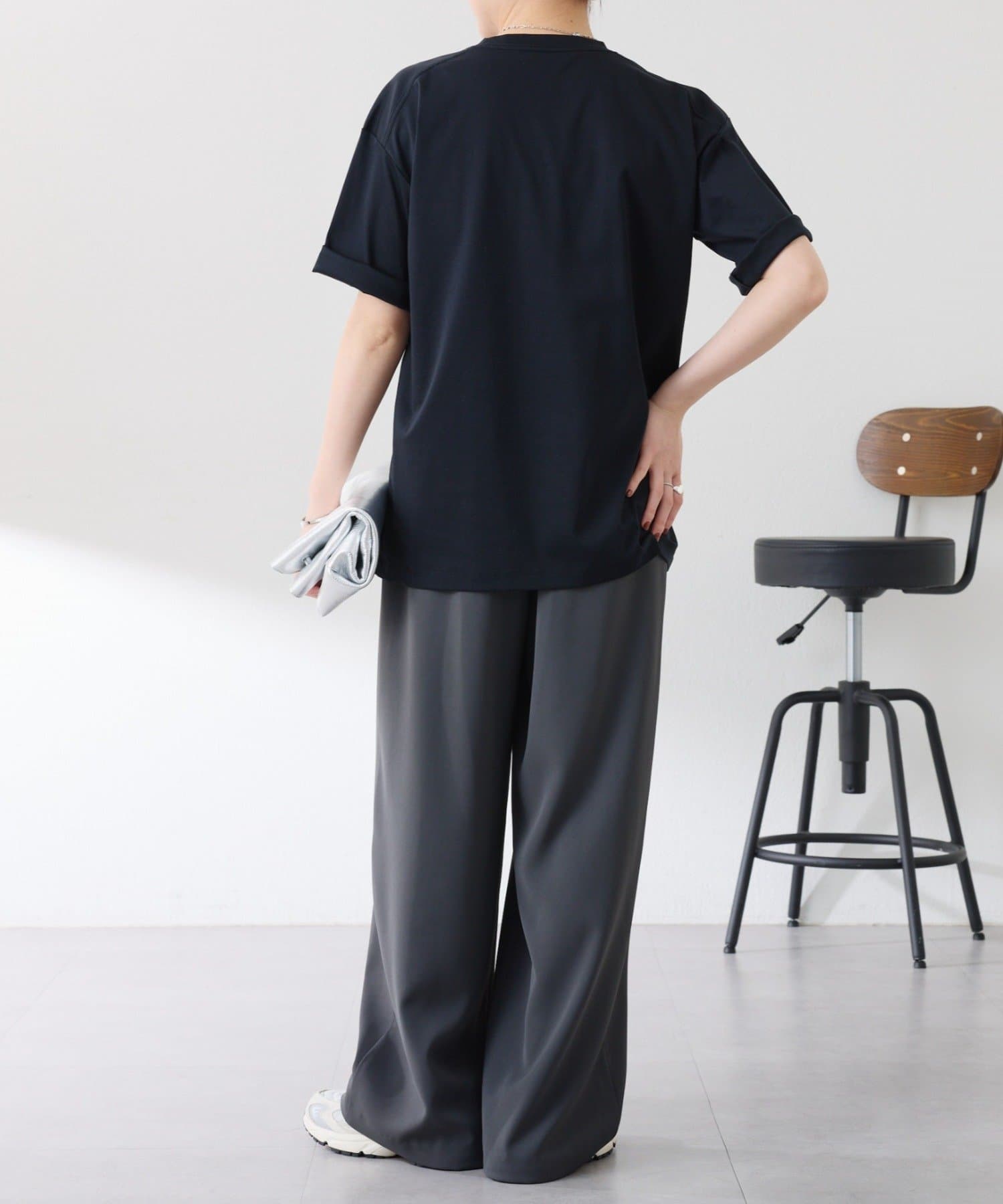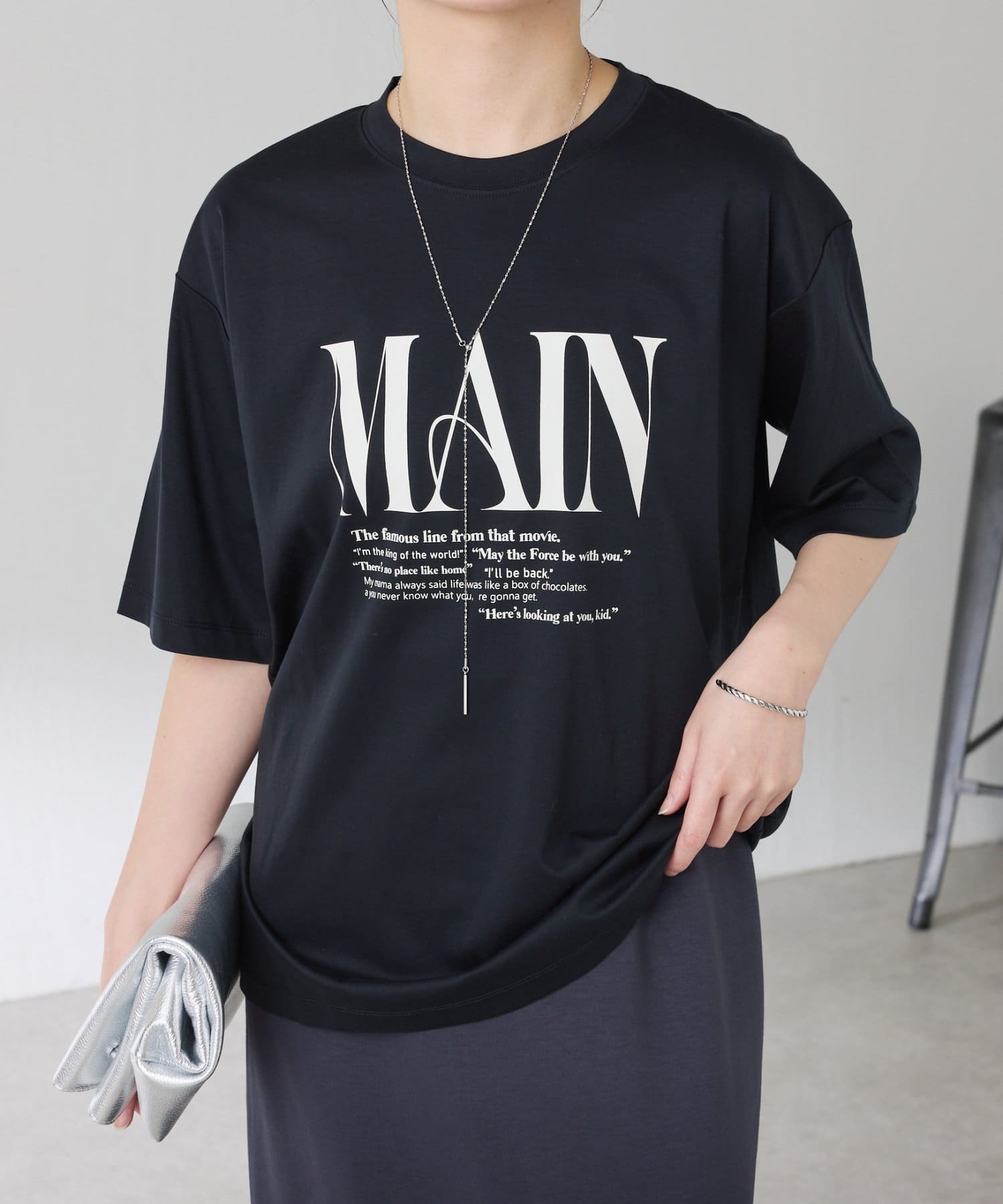 ・程よい光沢感のあるさらっとした生地を使用し、きれいめな印象で取り入れられるロゴTシャツ。