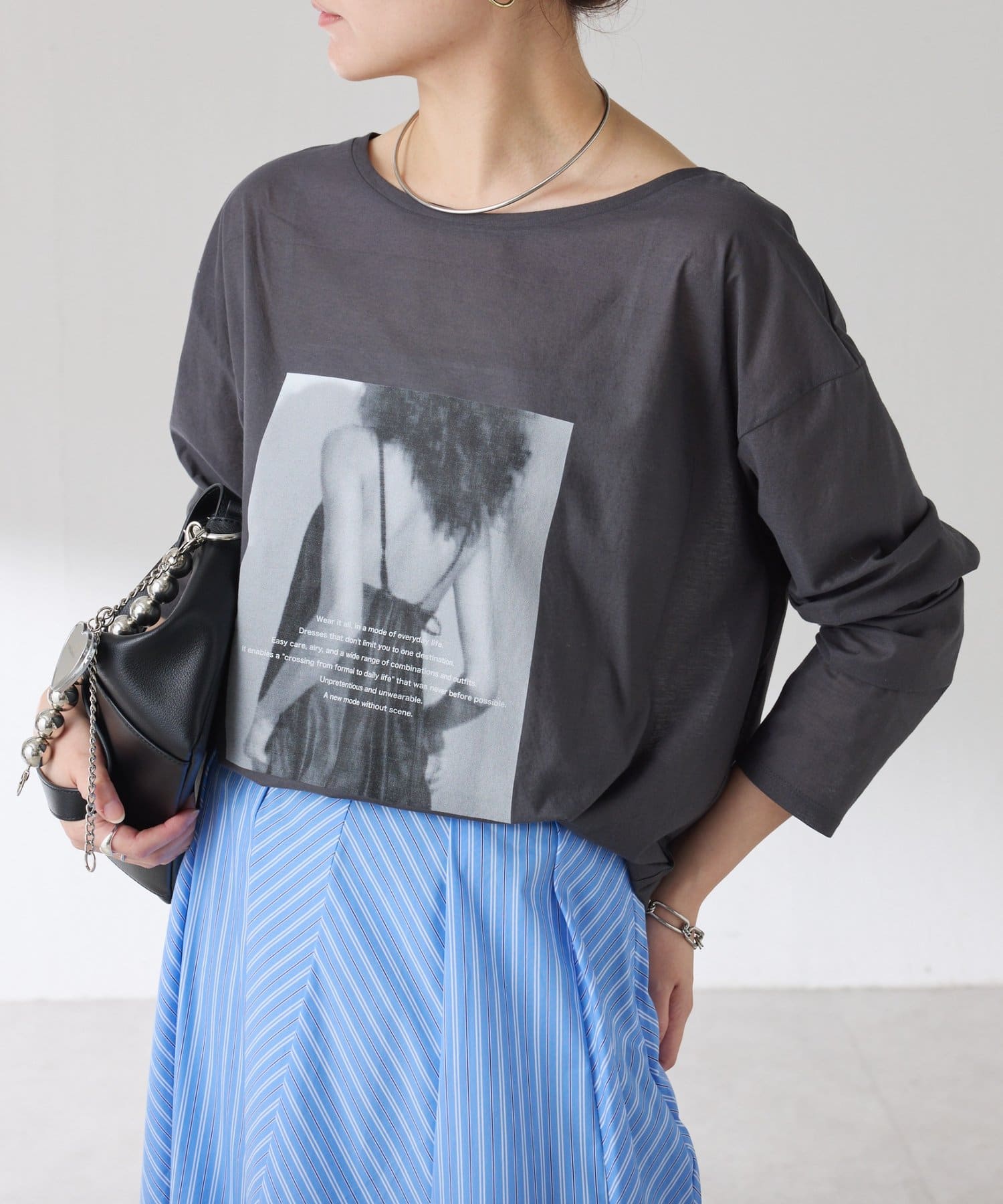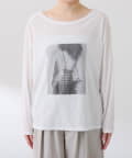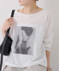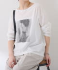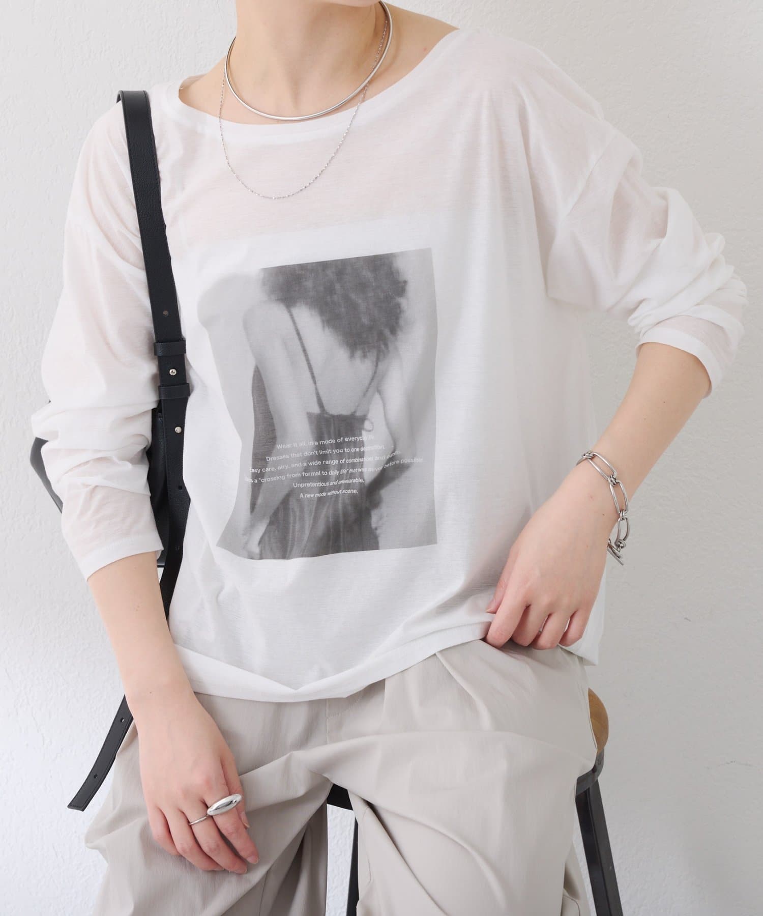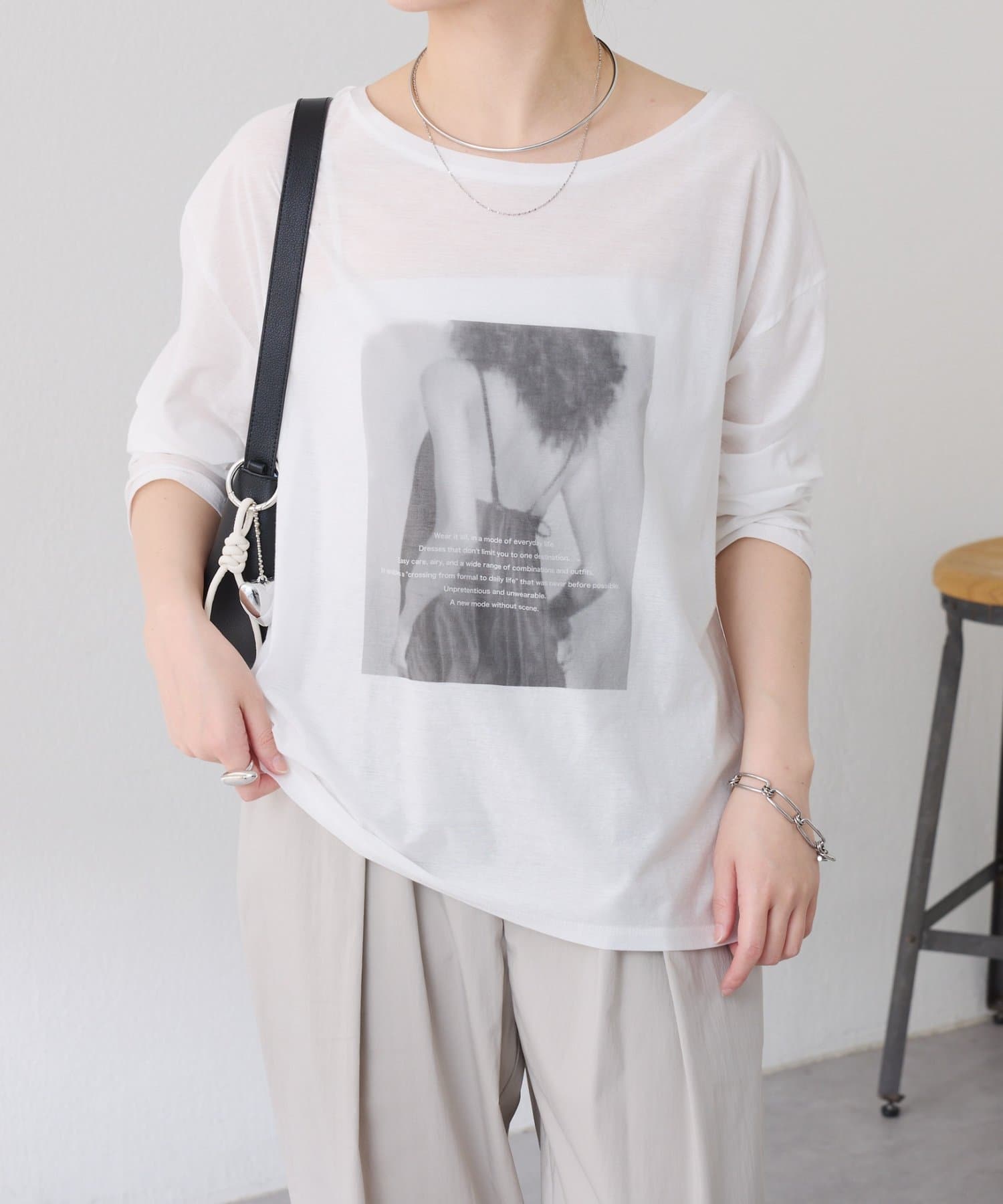 シアー素材が女性らしさを演出してくれる、抜け感プリントロンTEE