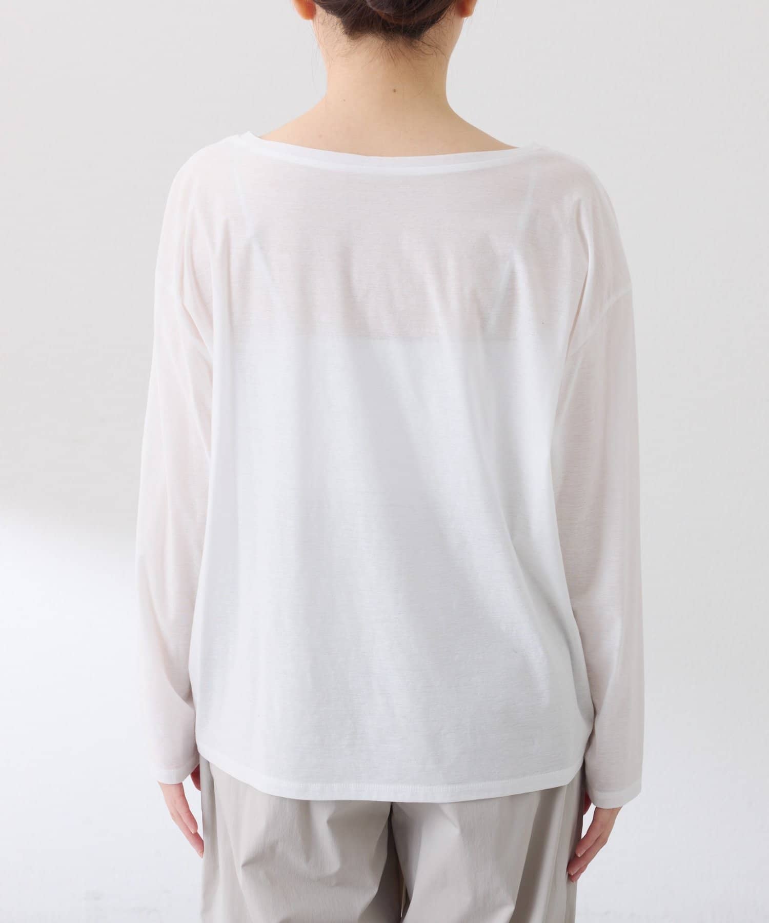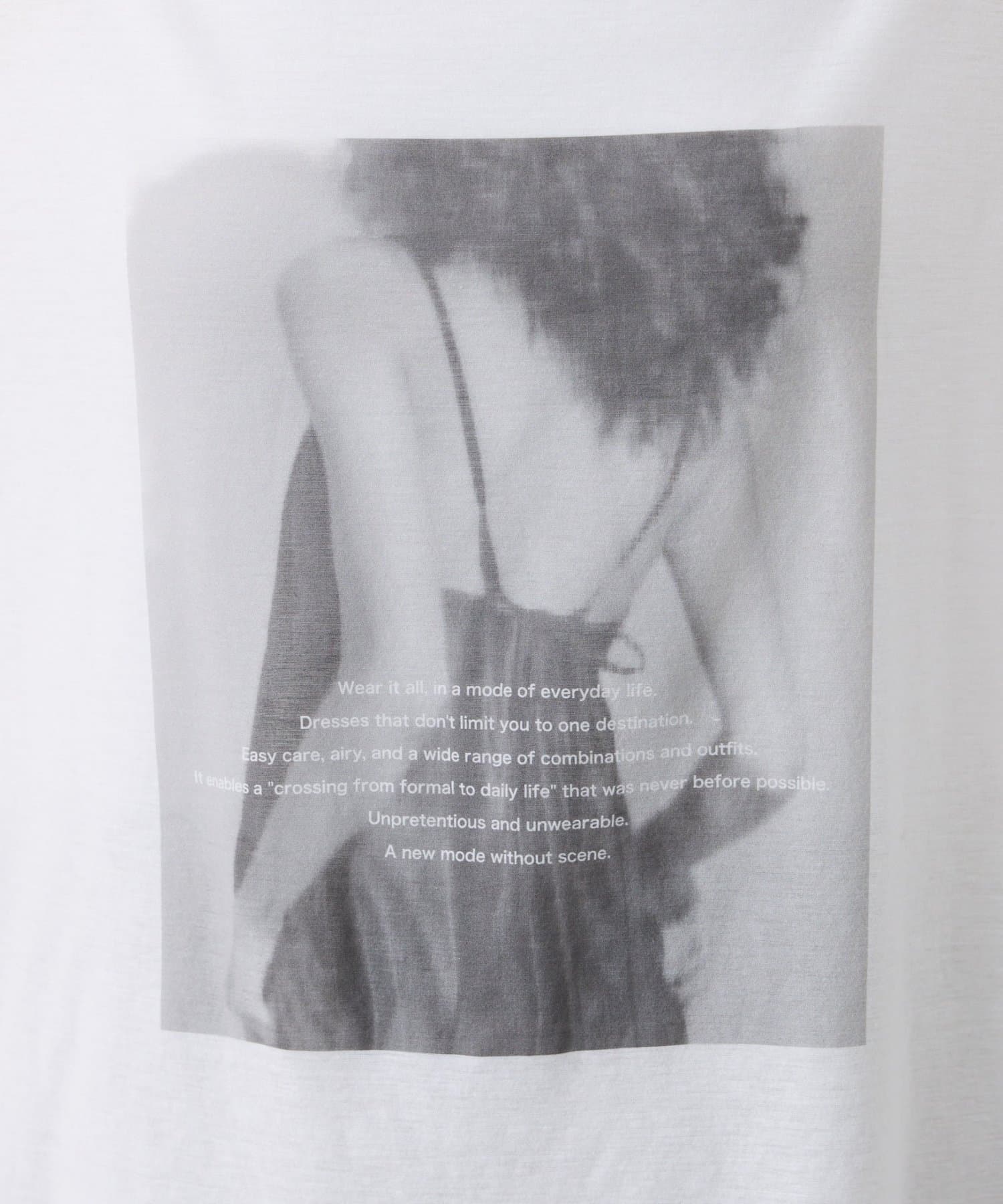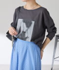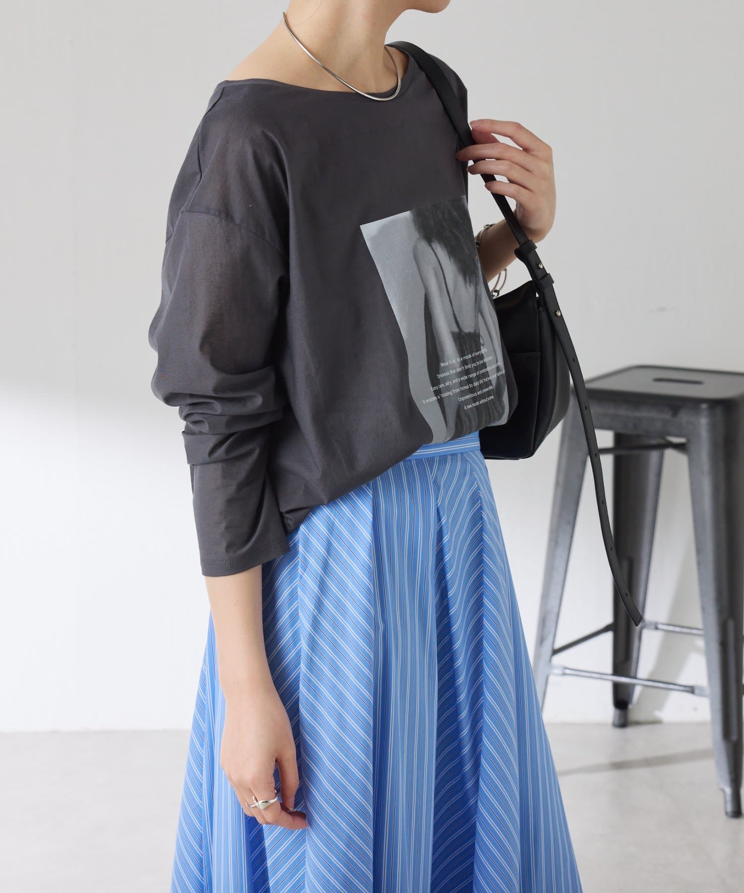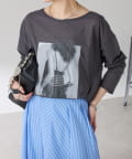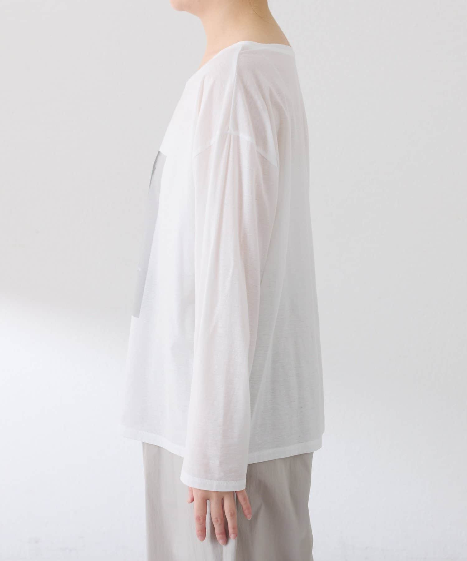 シアー素材が女性らしさを演出してくれる、抜け感プリントロンTEE