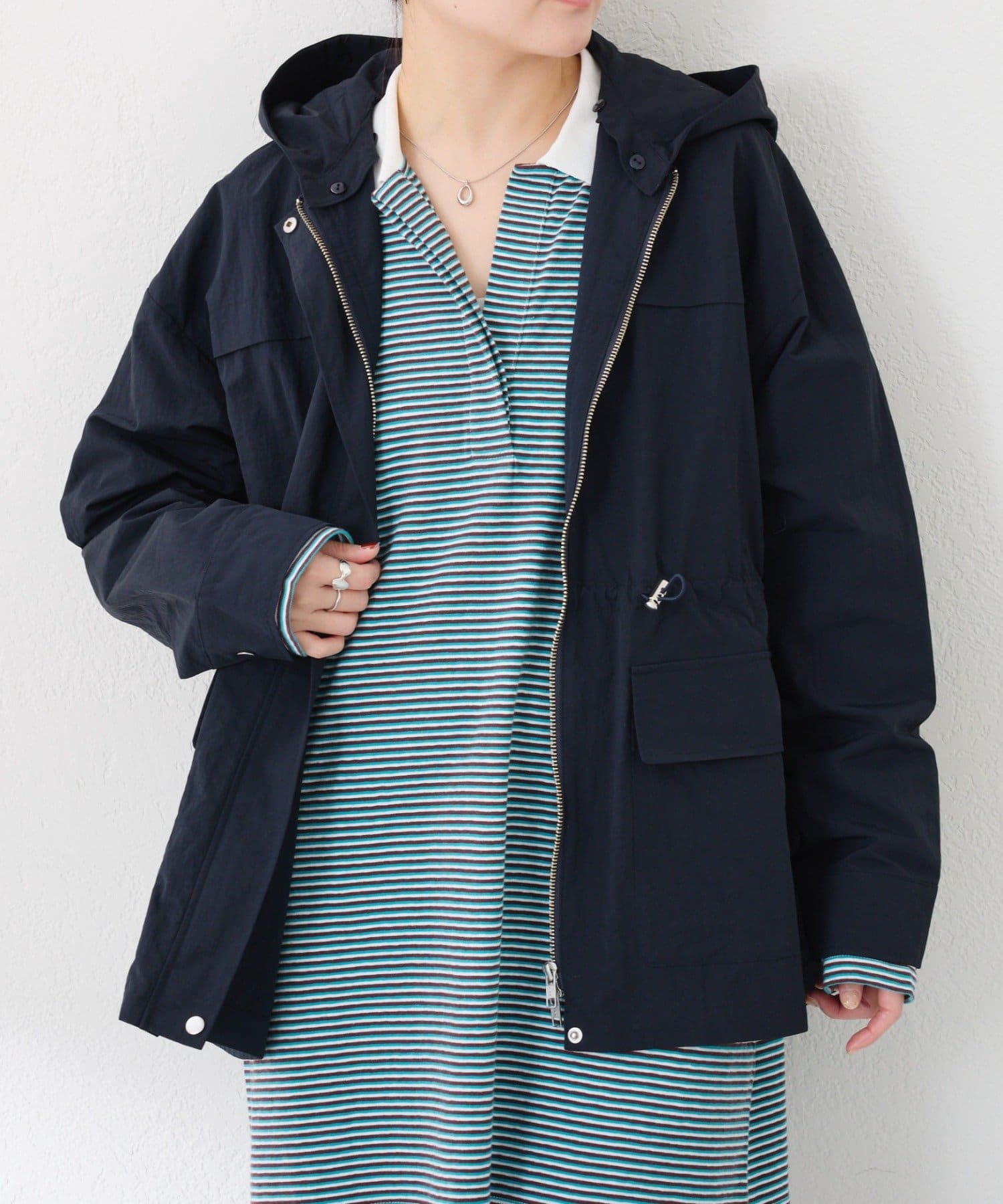 シルエットを変えられてオンオフ活躍するナイロンジャケット