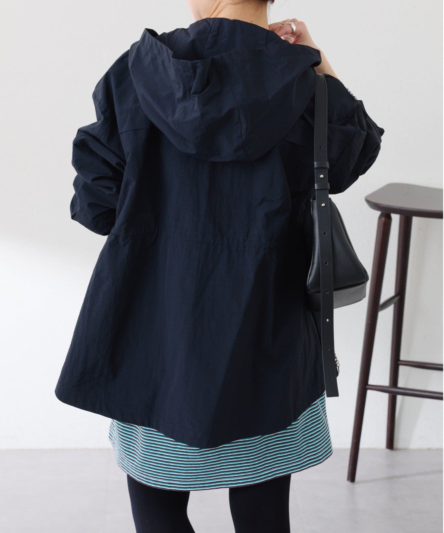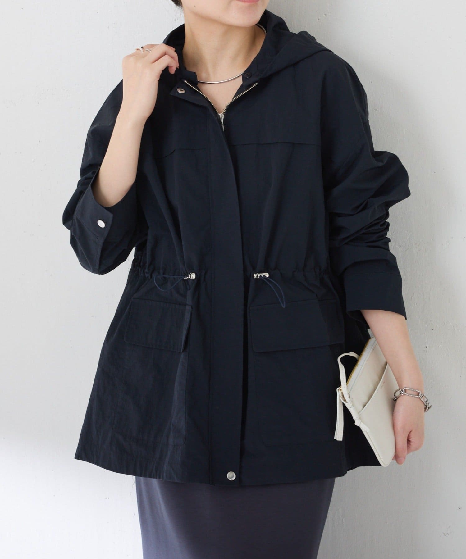 ・シンプルなシルエットですが、ウエスト部分のドロストを絞ることで立体感が生まれ高見えします。