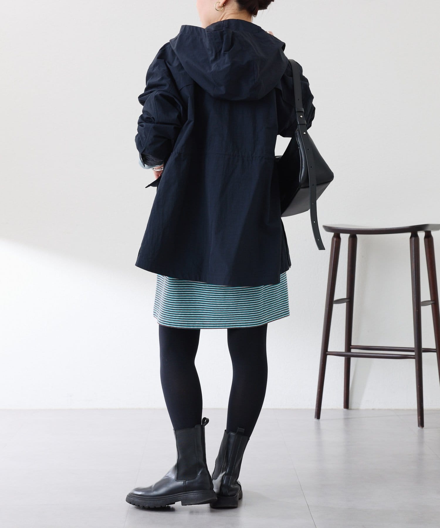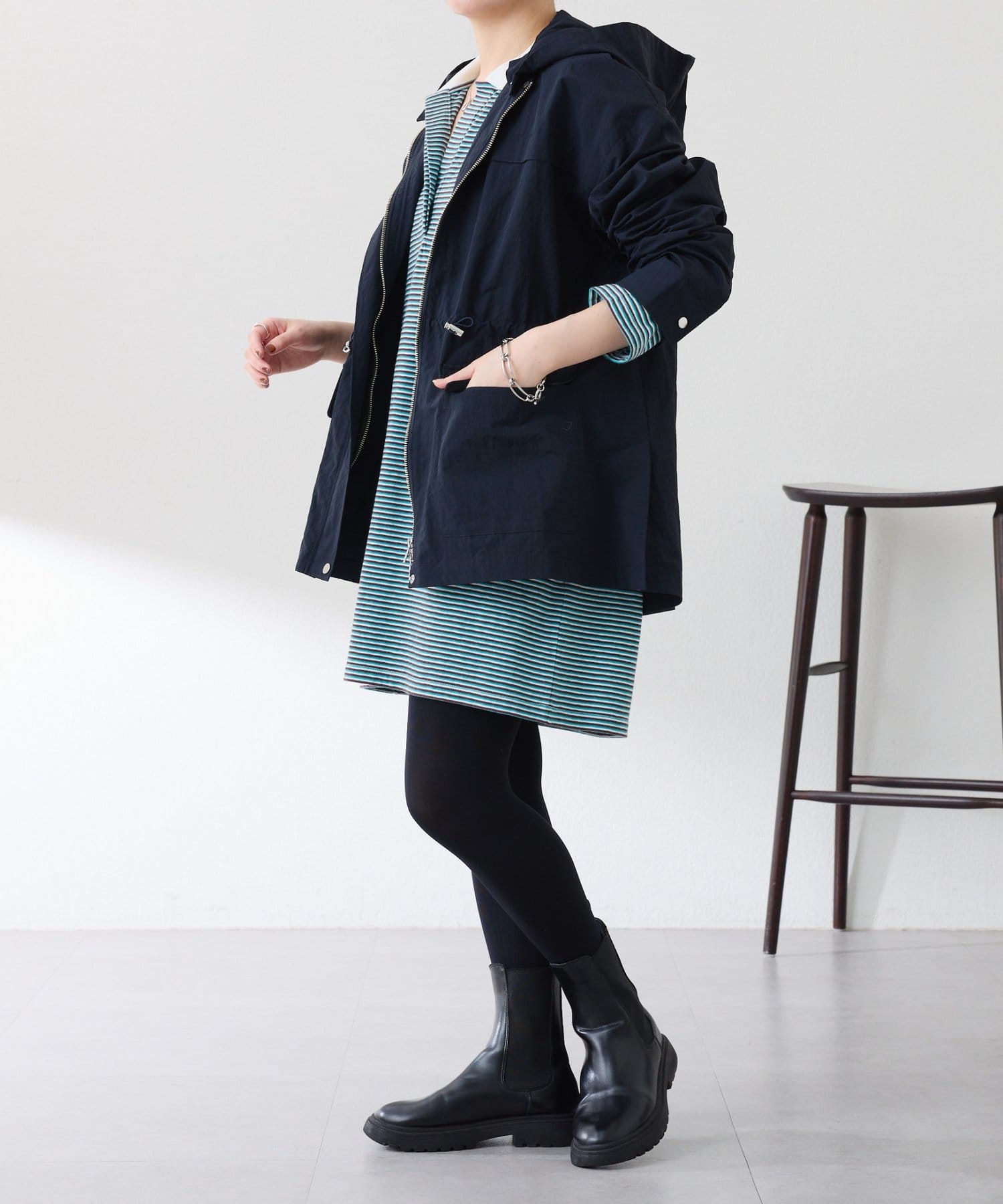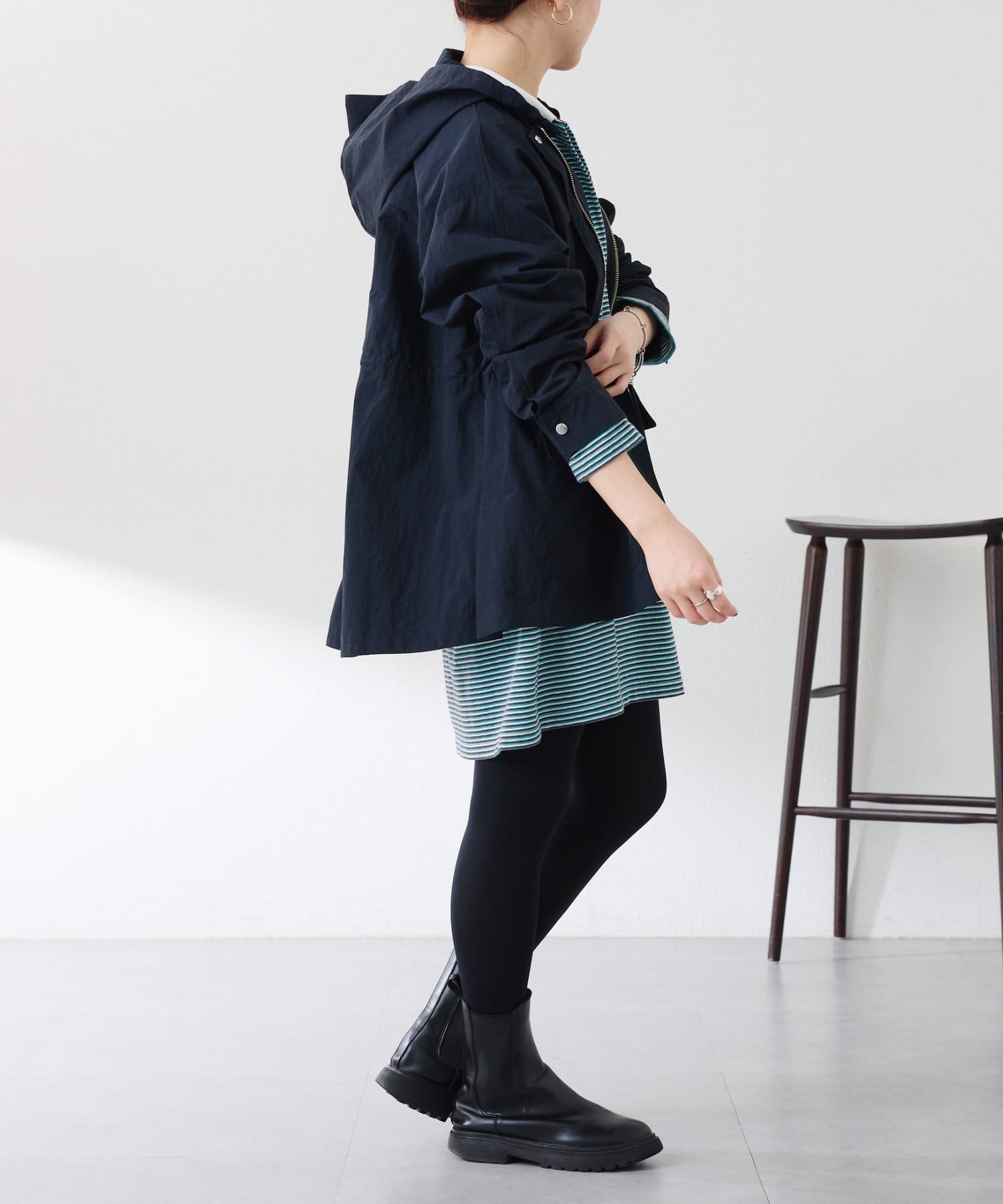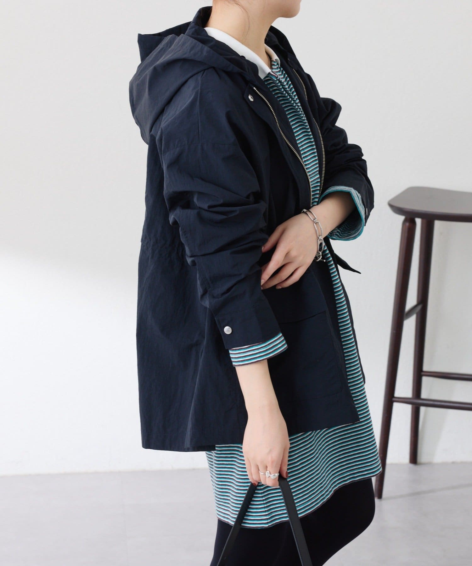 ・取り外しできるフードがポイント。フードを付ければ大人カジュアルな印象に、外せばシンプルな印象でお仕事にも活躍します◎