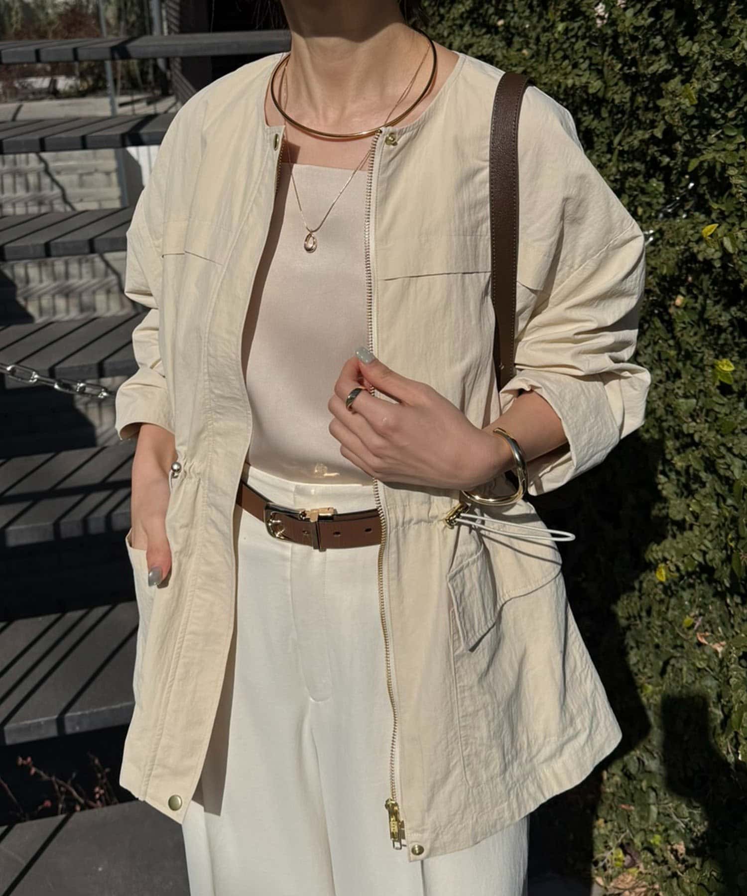 ・シンプルなシルエットですが、ウエスト部分のドロストを絞ることで立体感が生まれ高見えします。