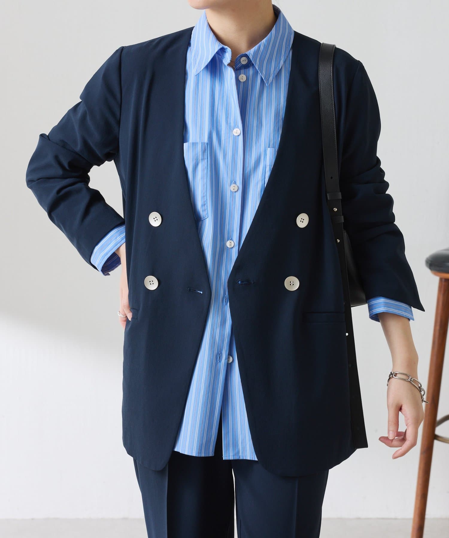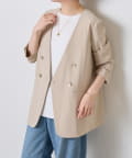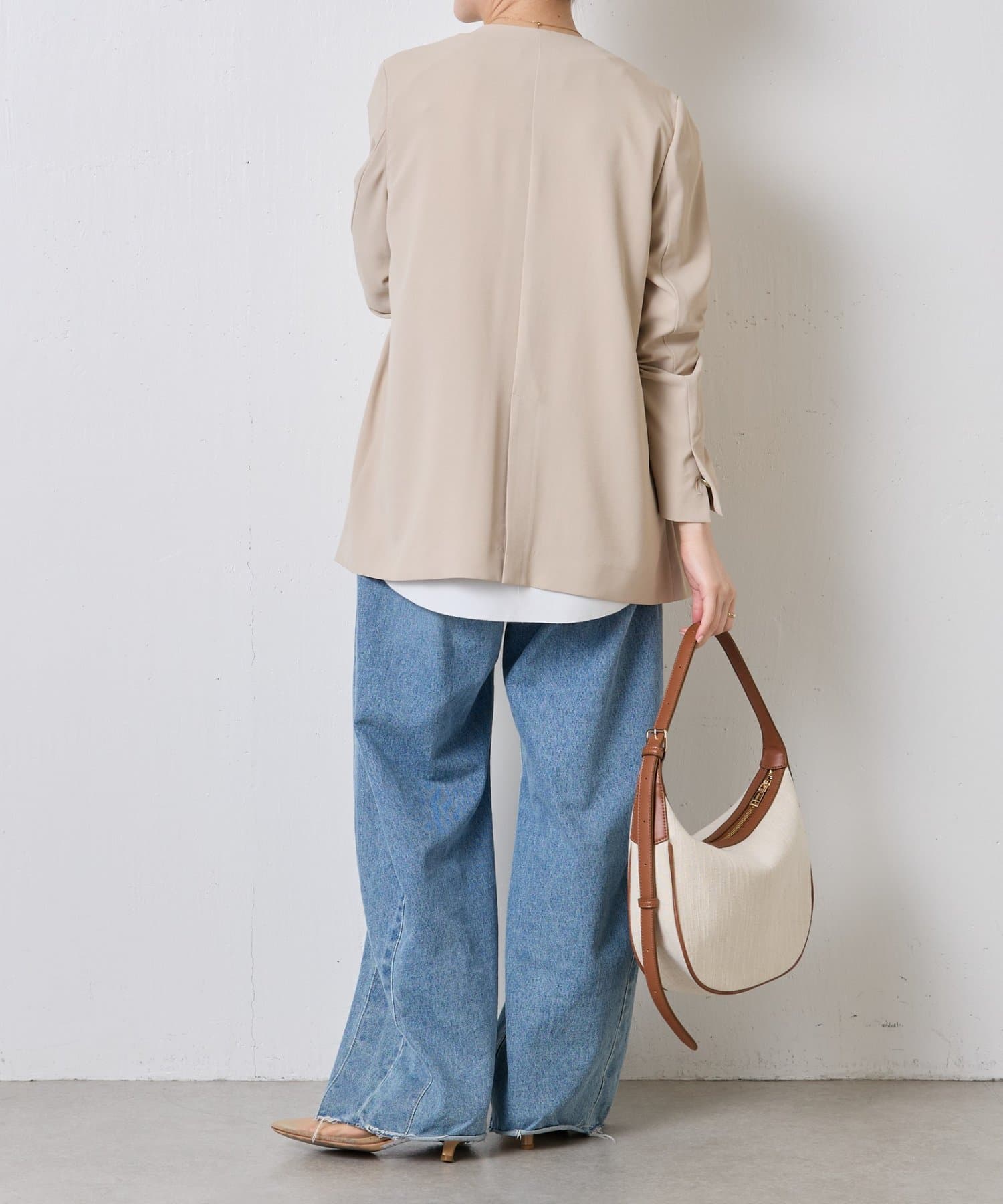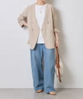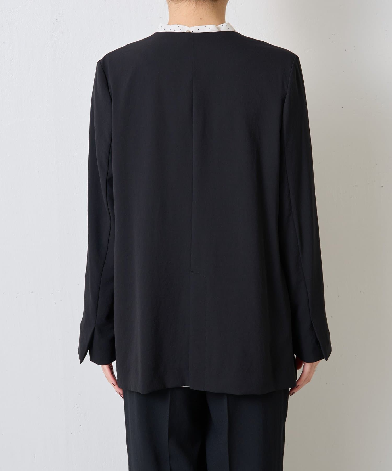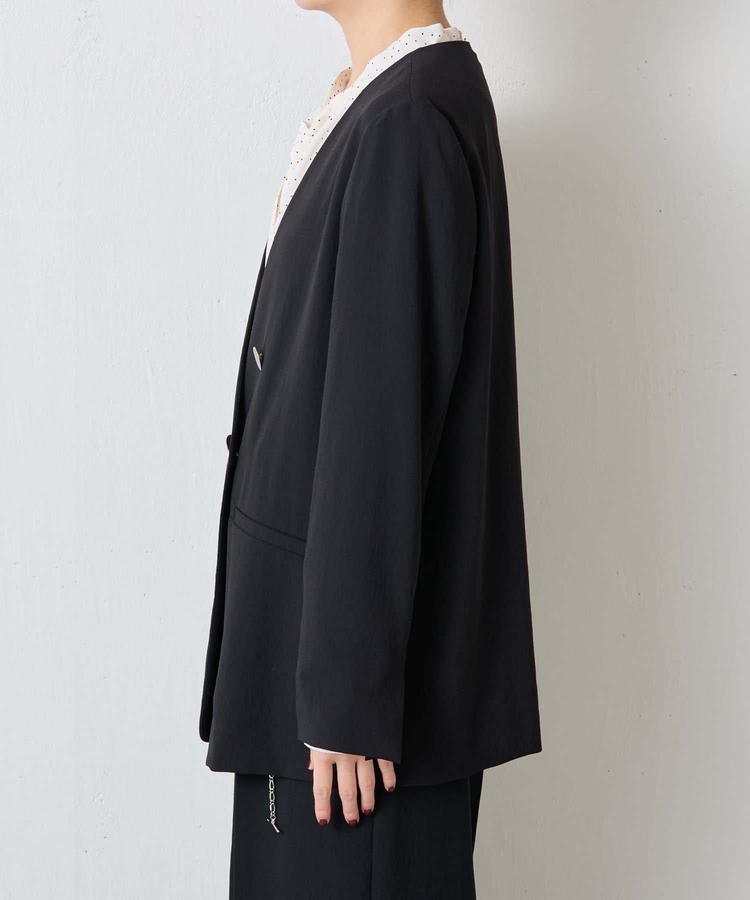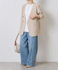 ・かっちりしすぎずカーディガン感覚で着れるノーカラージャケット。