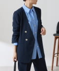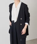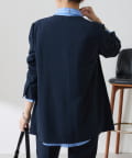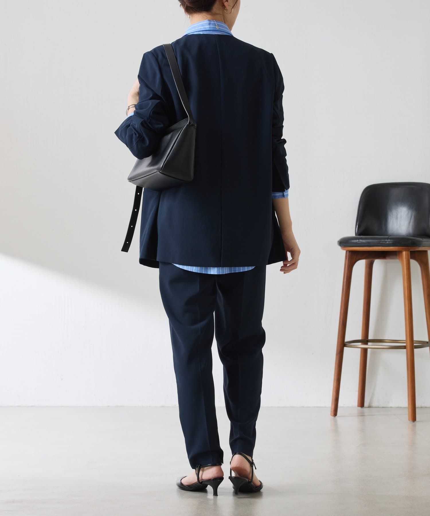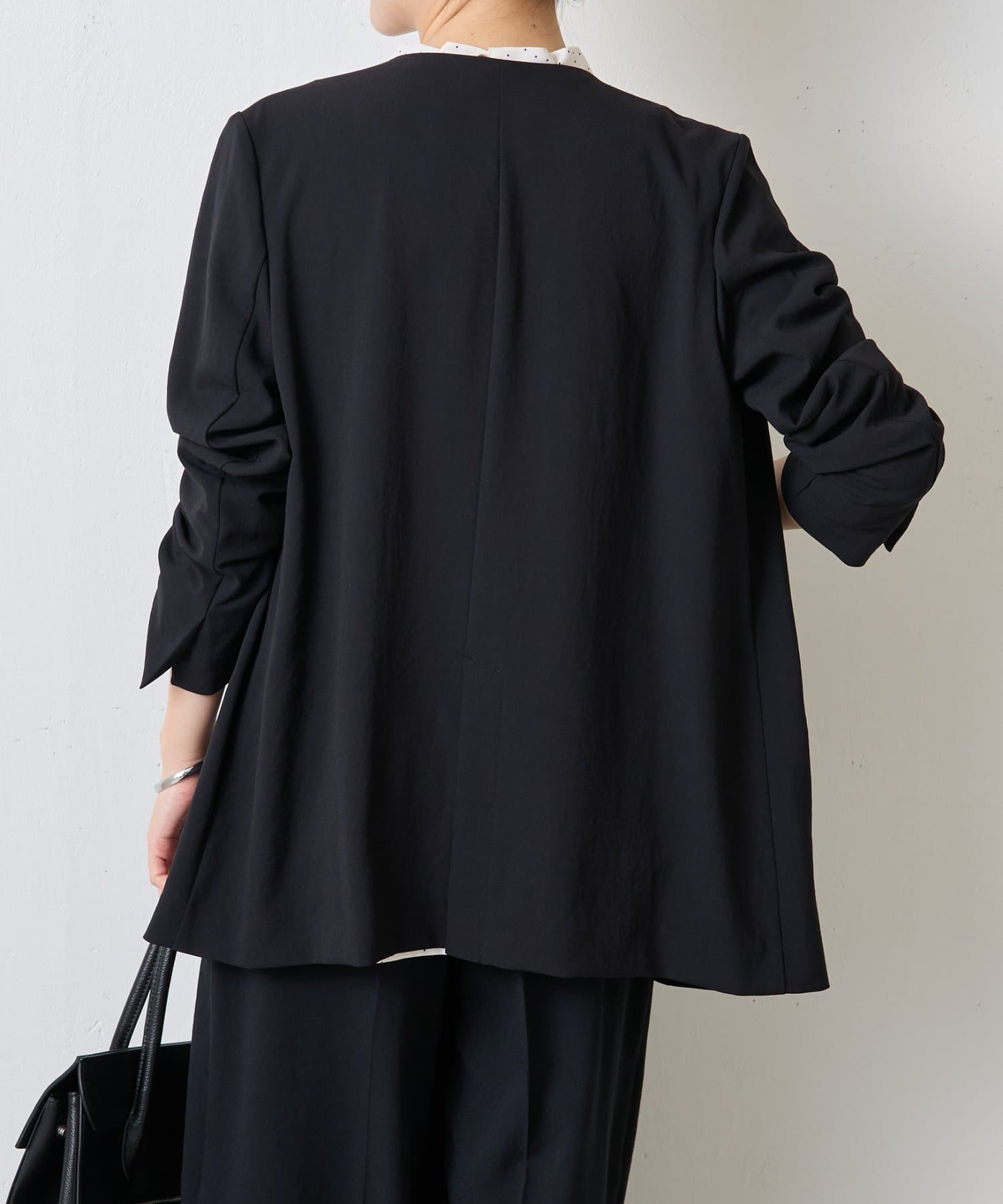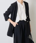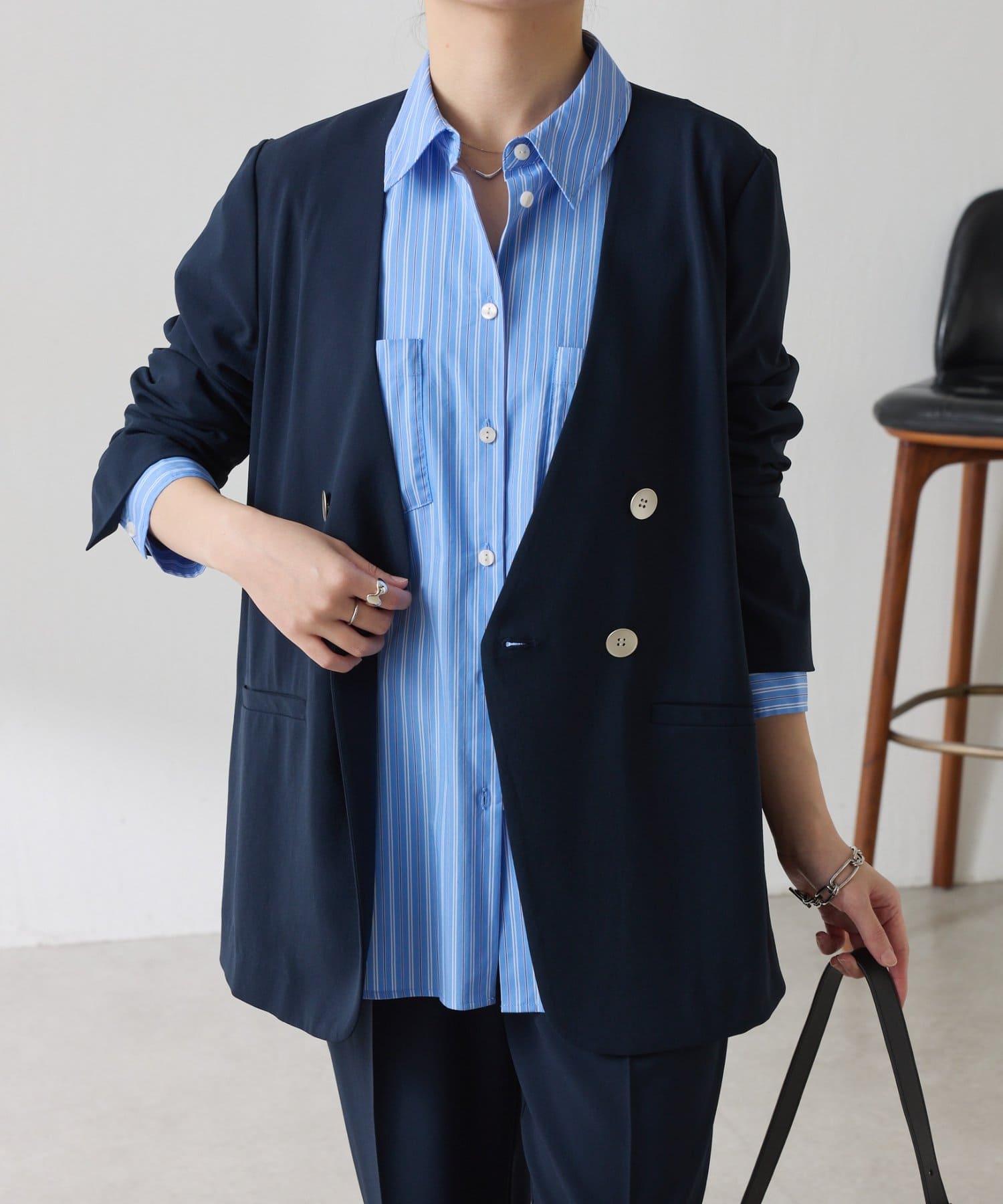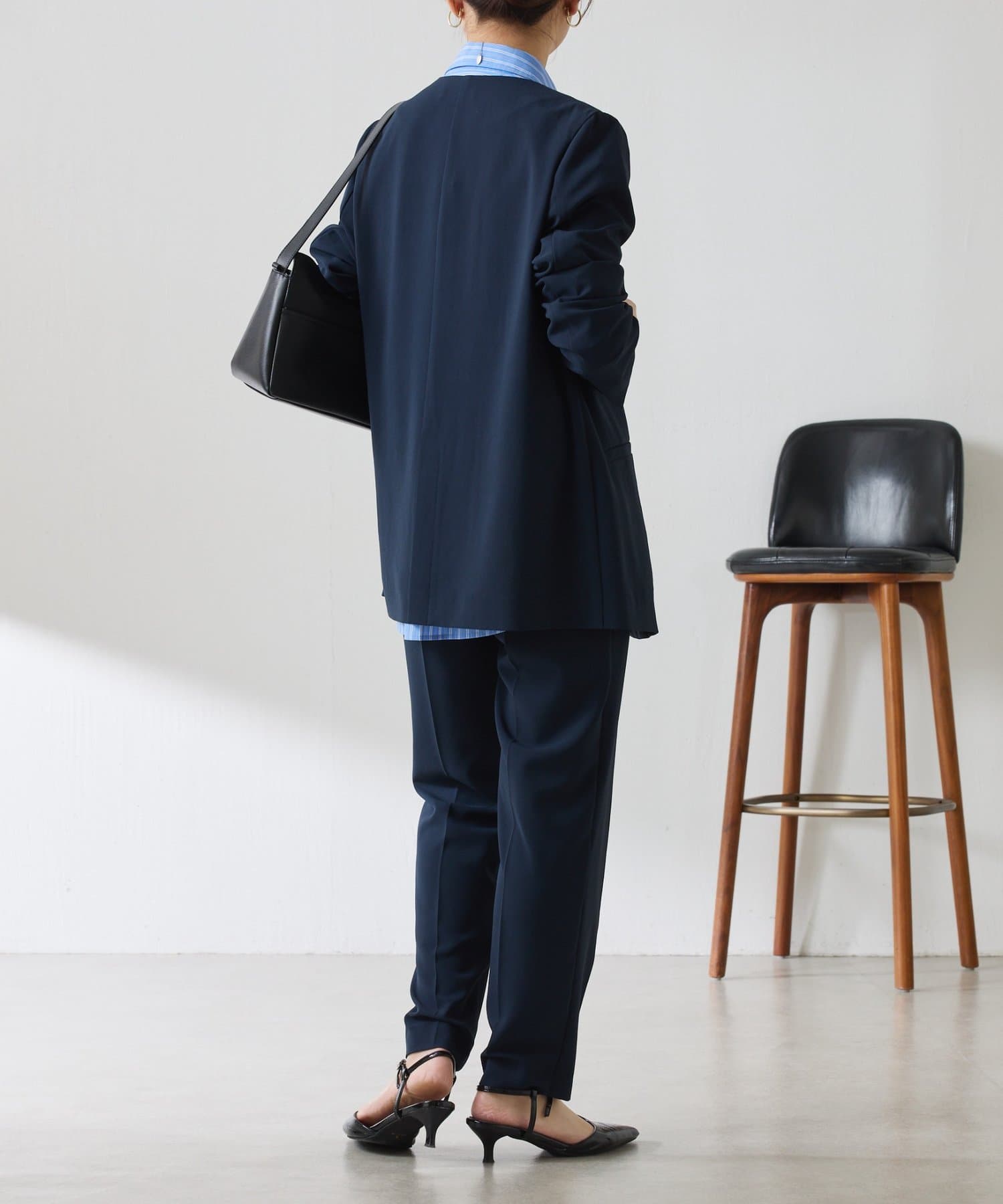 ・かっちりしすぎずカーディガン感覚で着れるノーカラージャケット。
