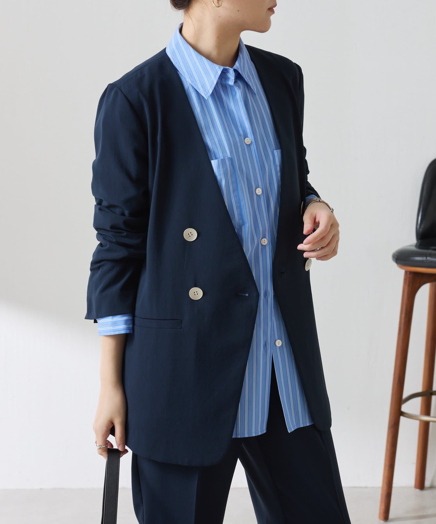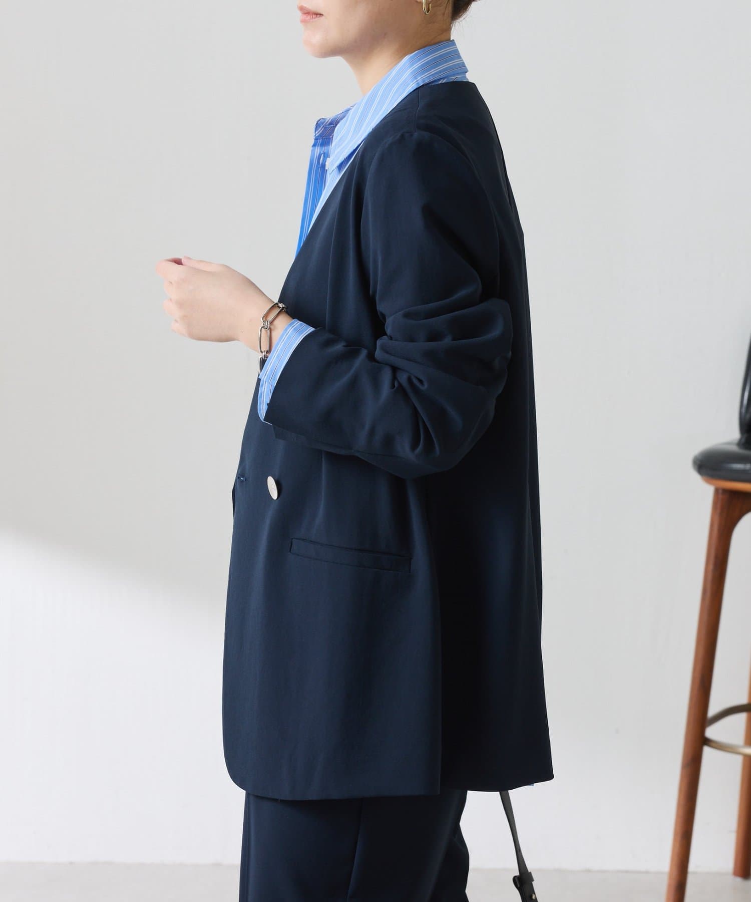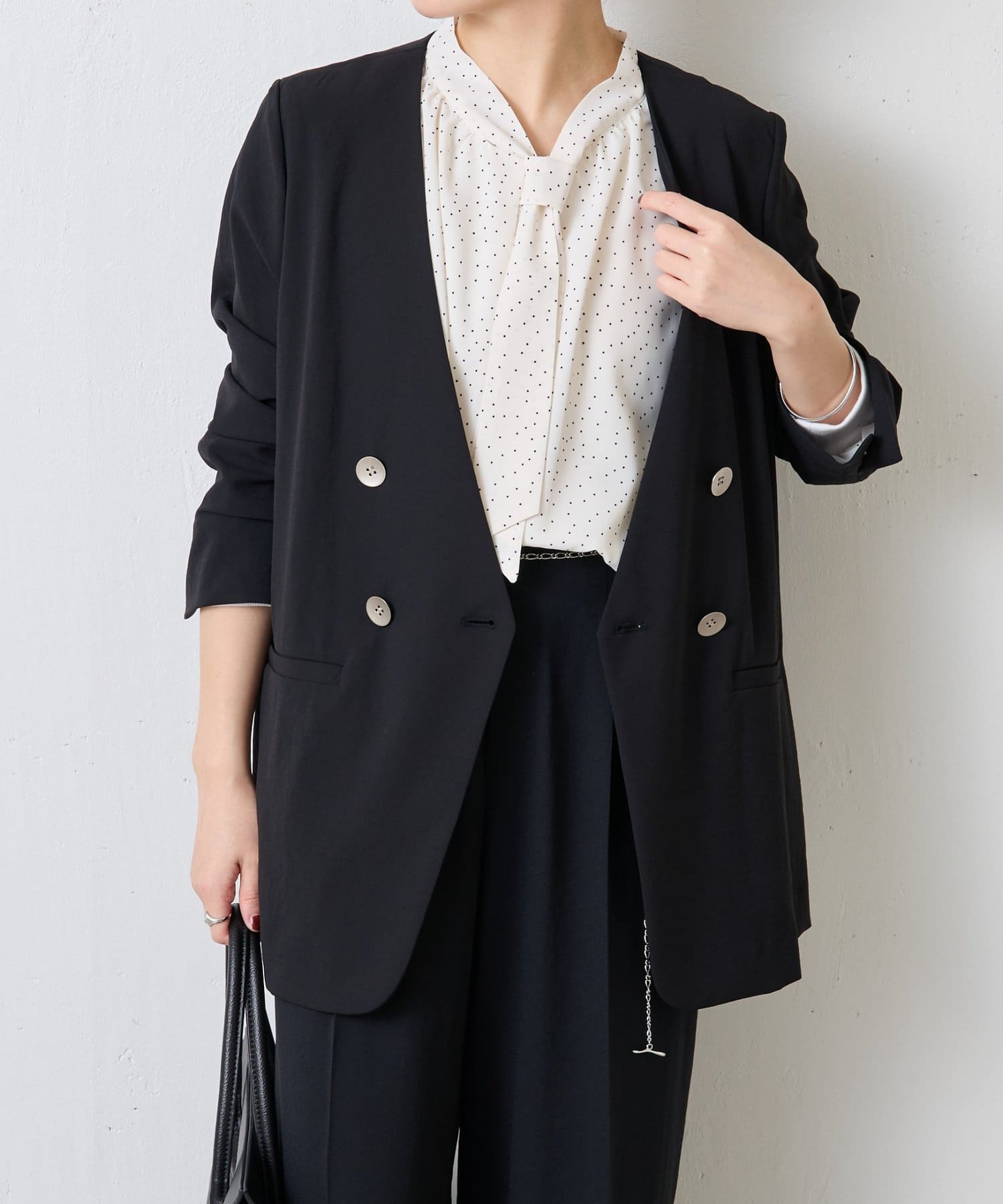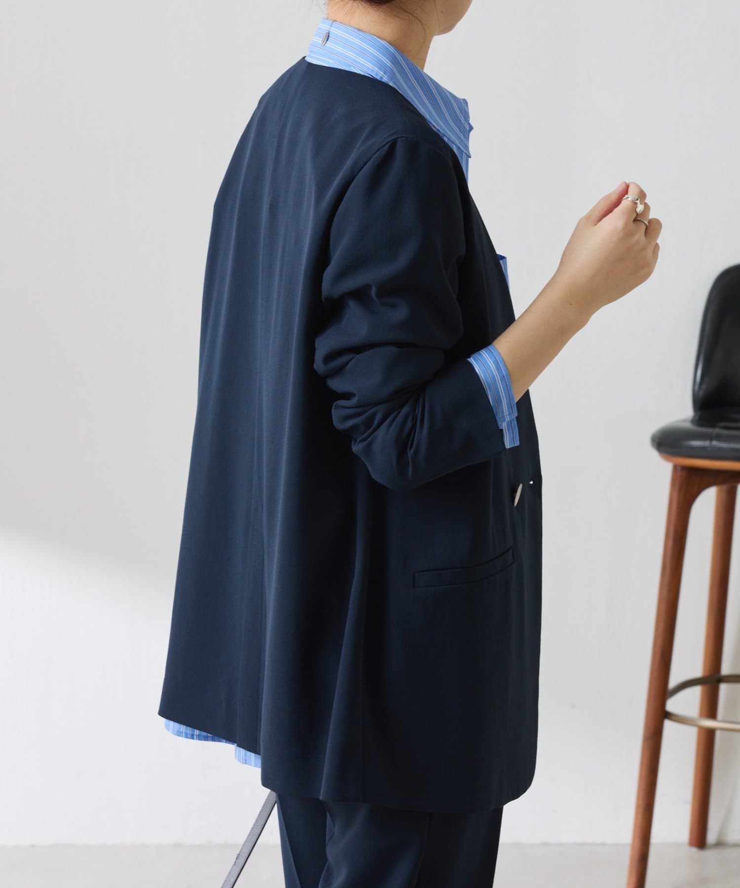 【新色登場/リバイバル】ジャージノーカラーダブルジャケット/セレモ二ー