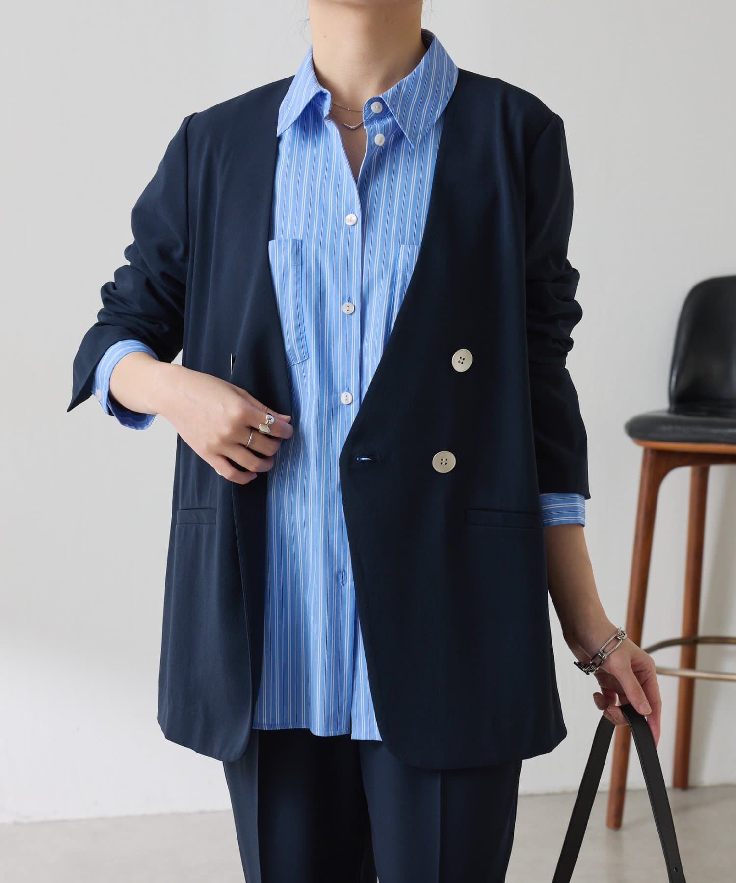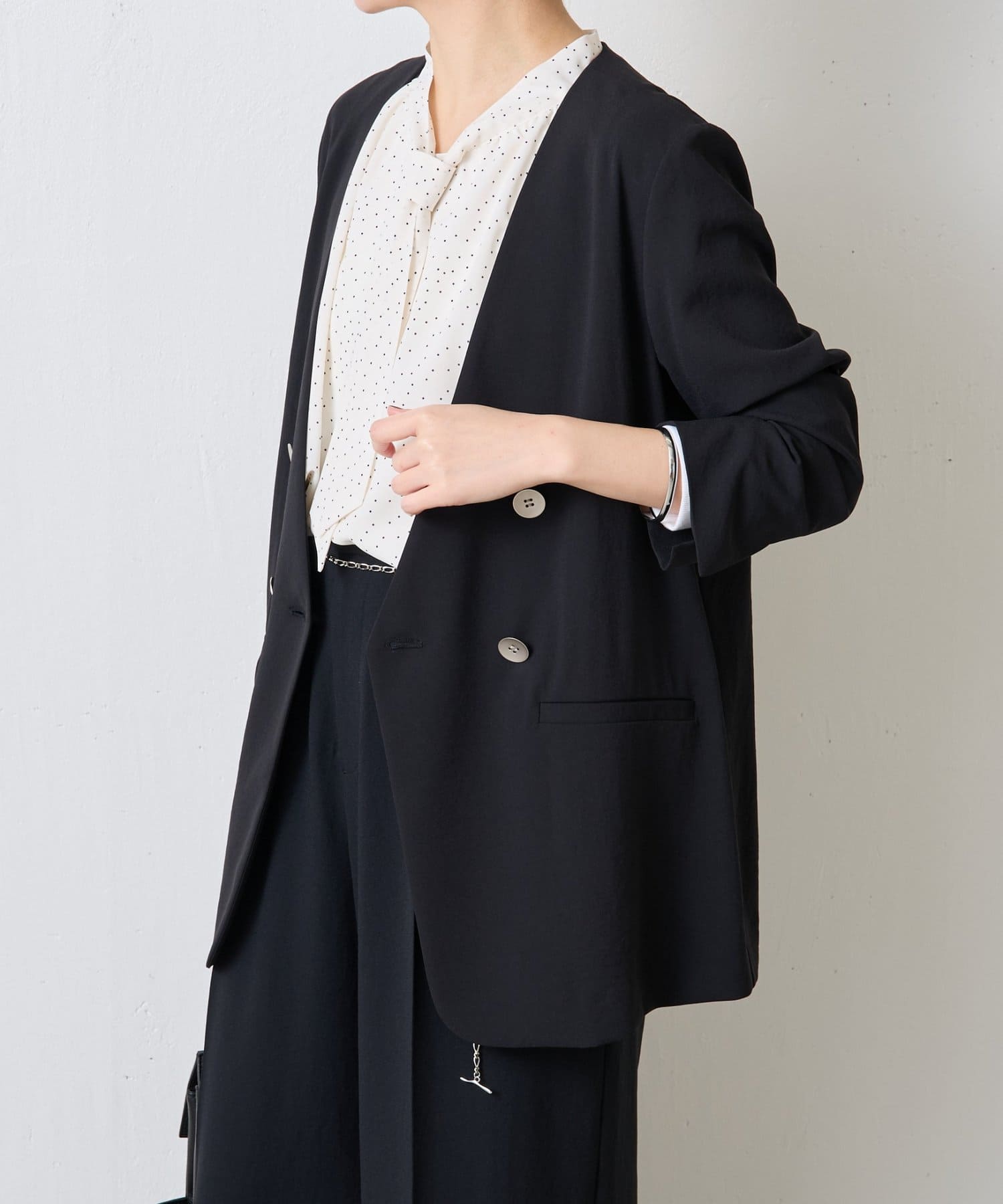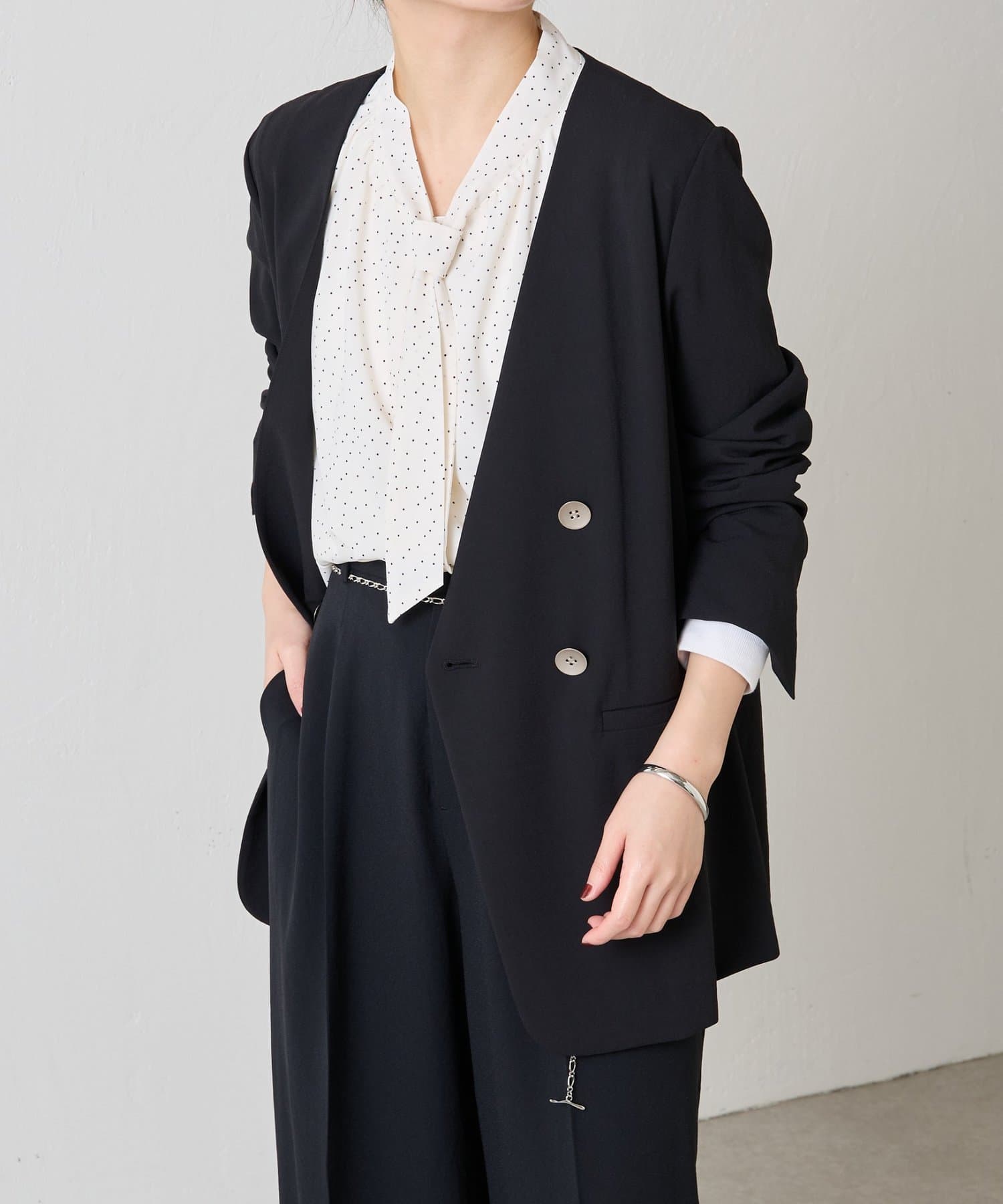 【新色登場/リバイバル】ジャージノーカラーダブルジャケット/セレモ二ー