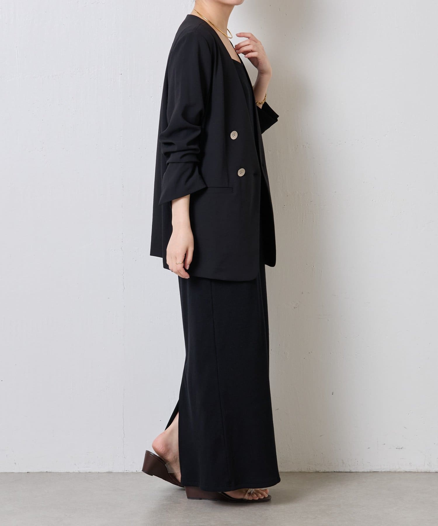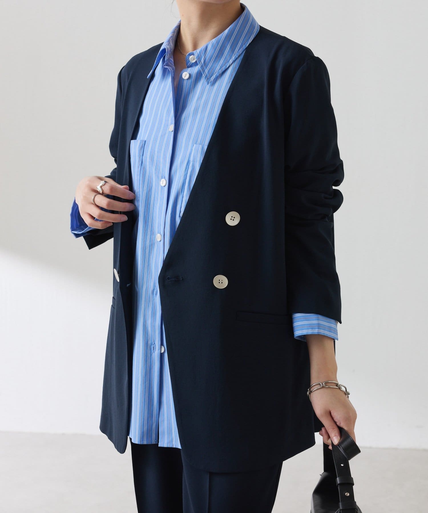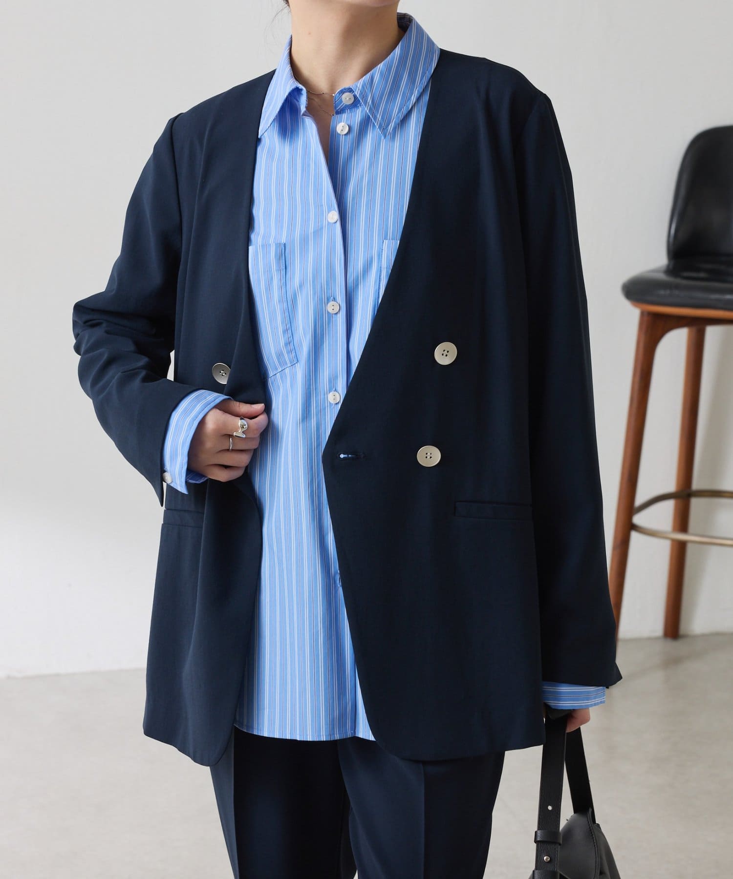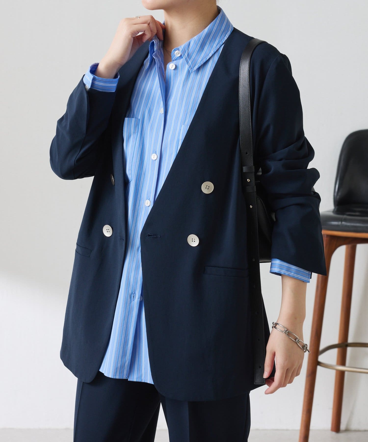 【新色登場/リバイバル】ジャージノーカラーダブルジャケット/セレモ二ー