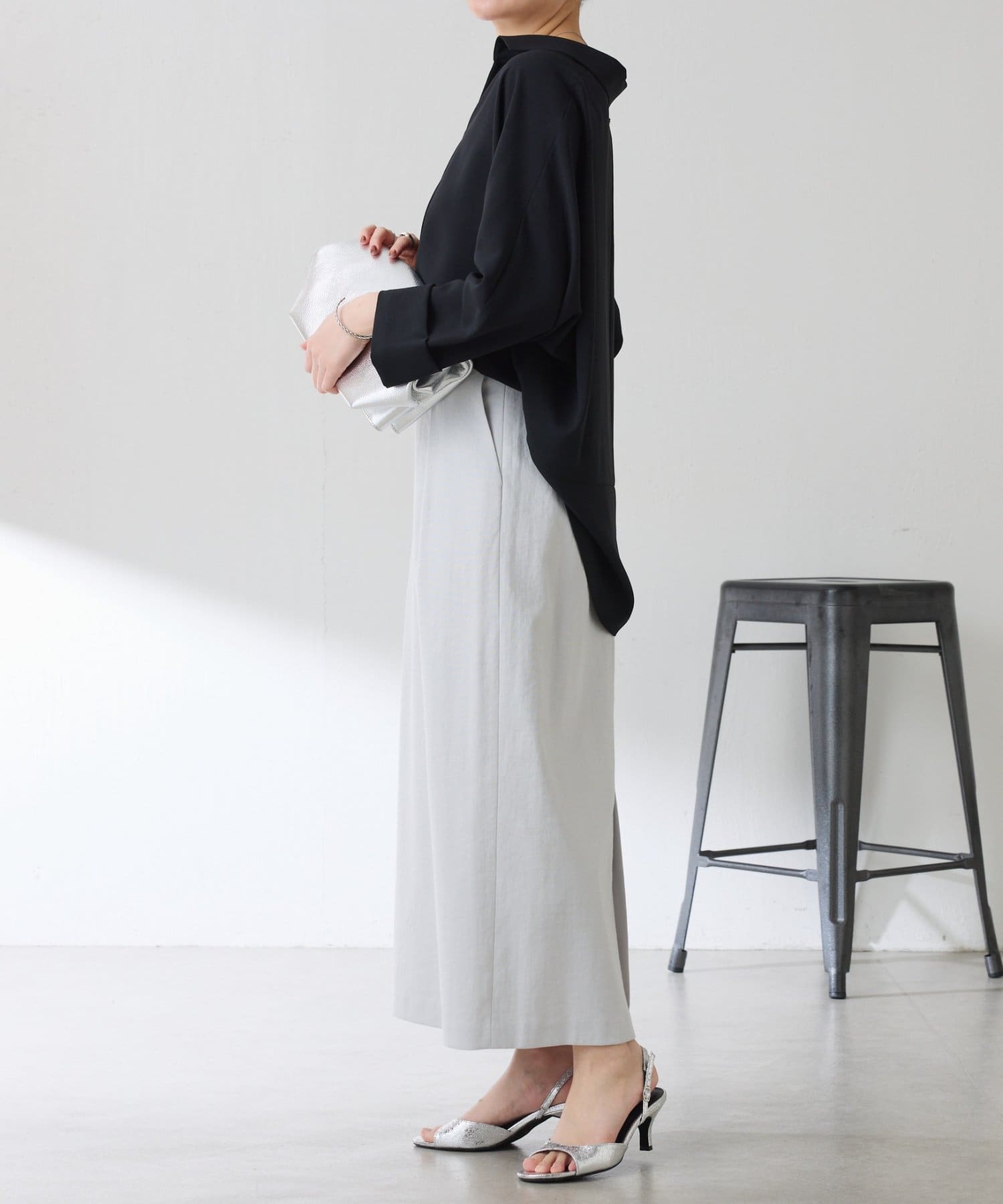 ライトグレー:同素材の《シェルタリングジレ CLZ1061307A0001》と合わせれば暑い時期にも嬉しい夏のキチンとコーデが完成します。