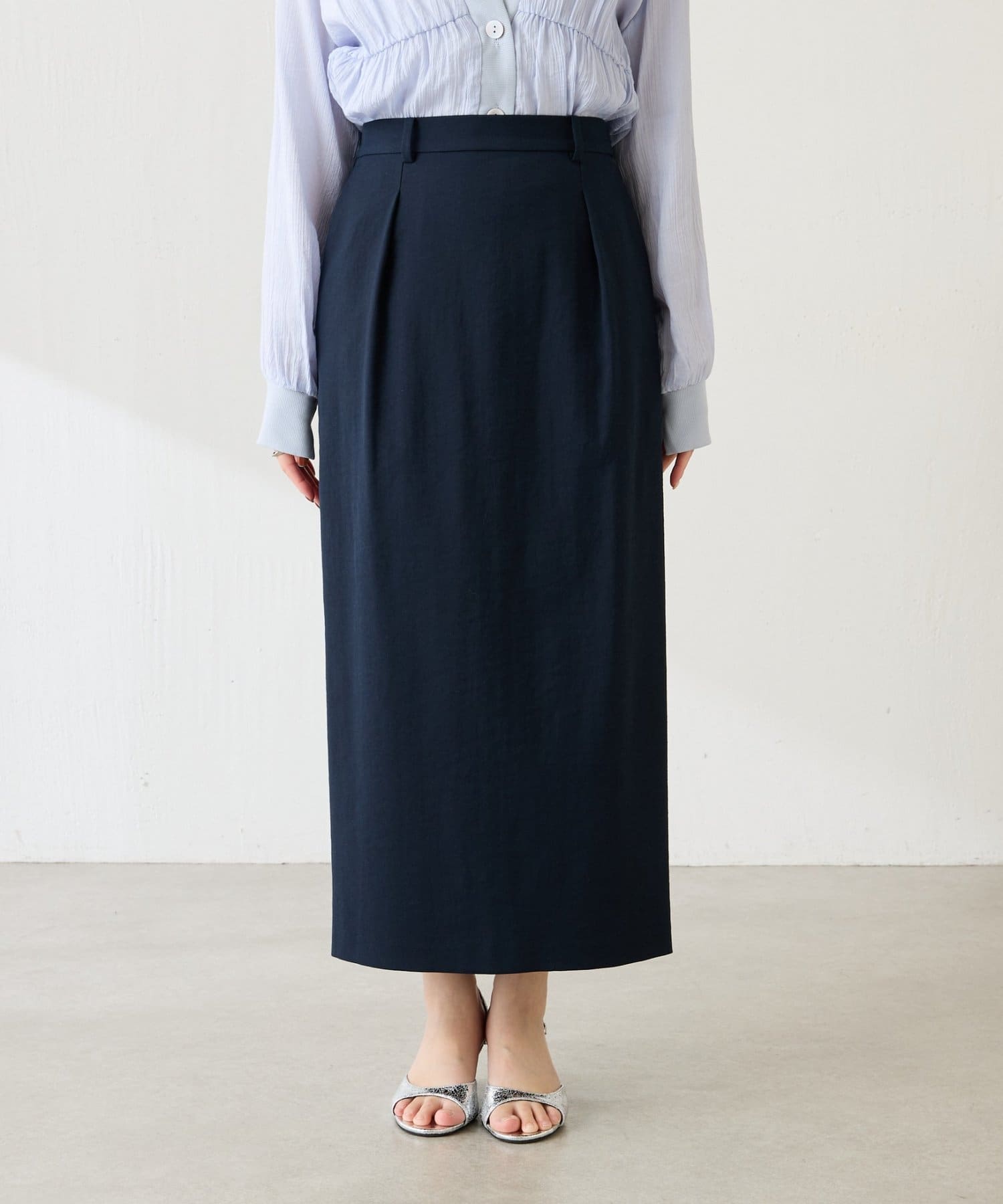 ・普段使いからフォーマルなシーンまでシーンレスで活躍するシンプルなデザインのタックスカート。