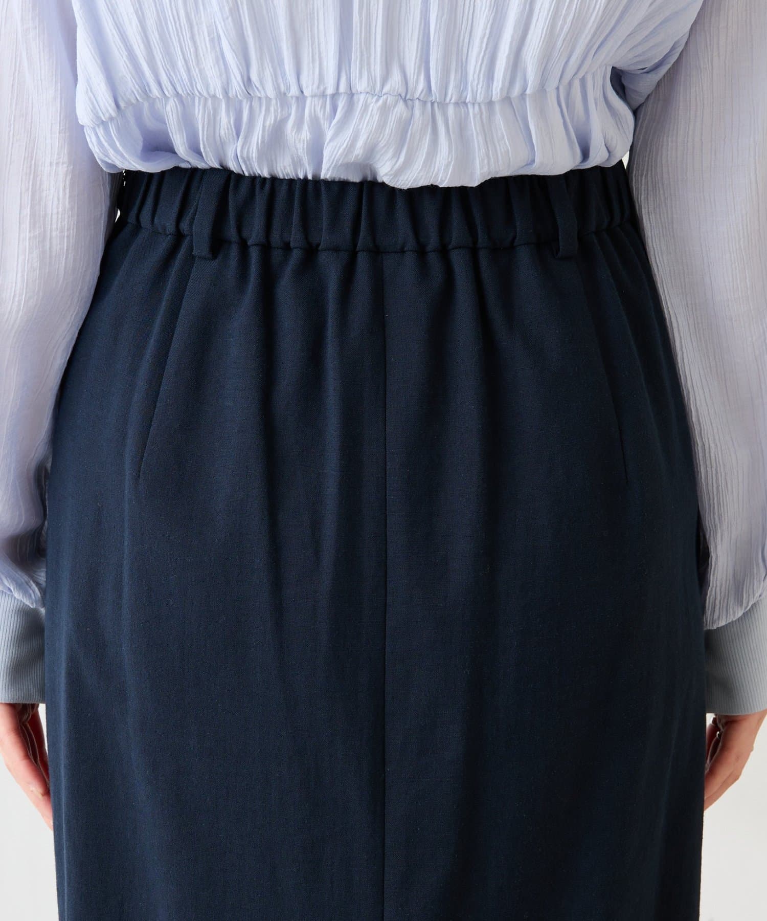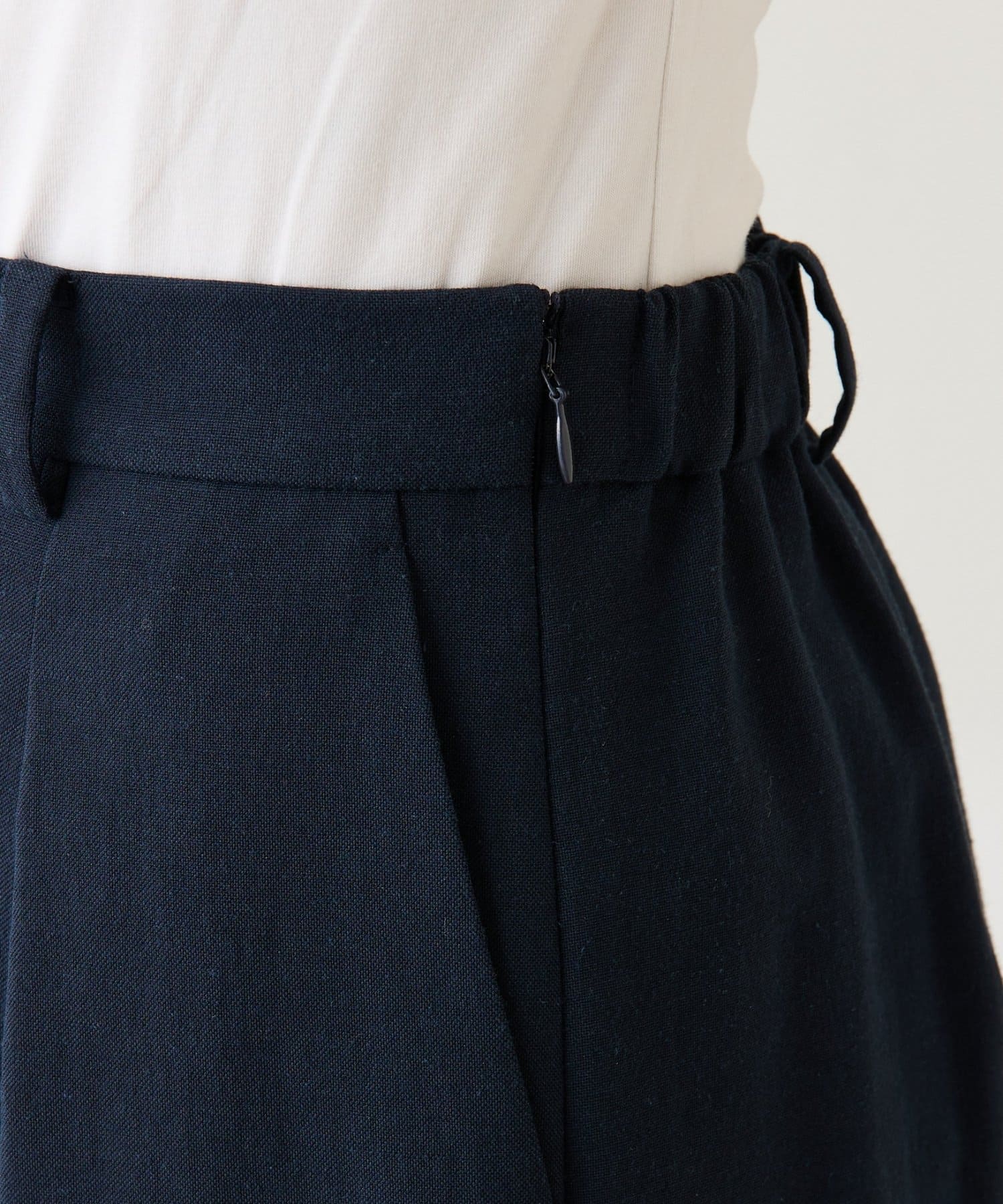 ・ウエストの後ろはゴムで楽チンな履き心地。ベルトループもついているのでベルトでメリハリをつけたり小柄の方にもおすすめです。