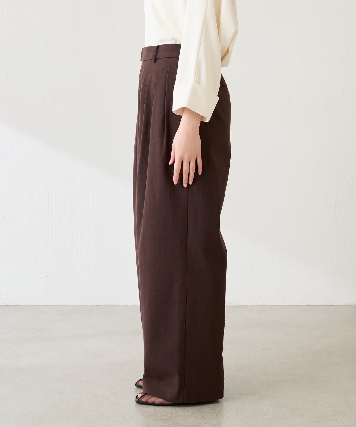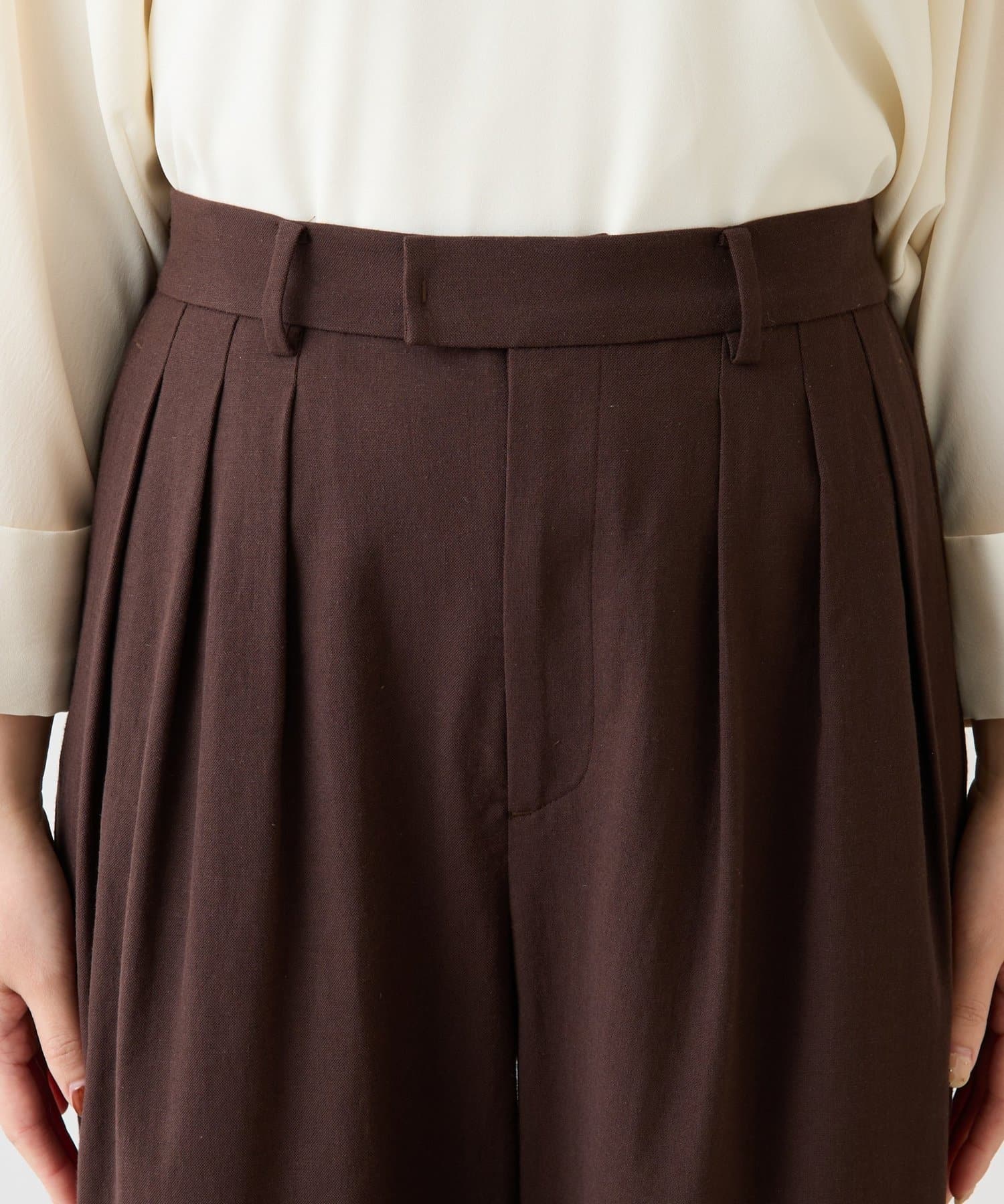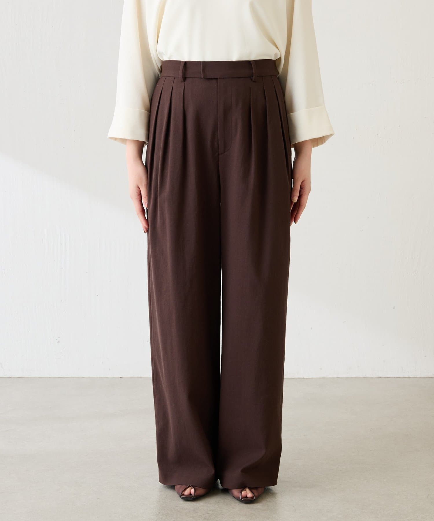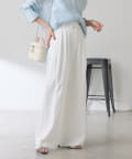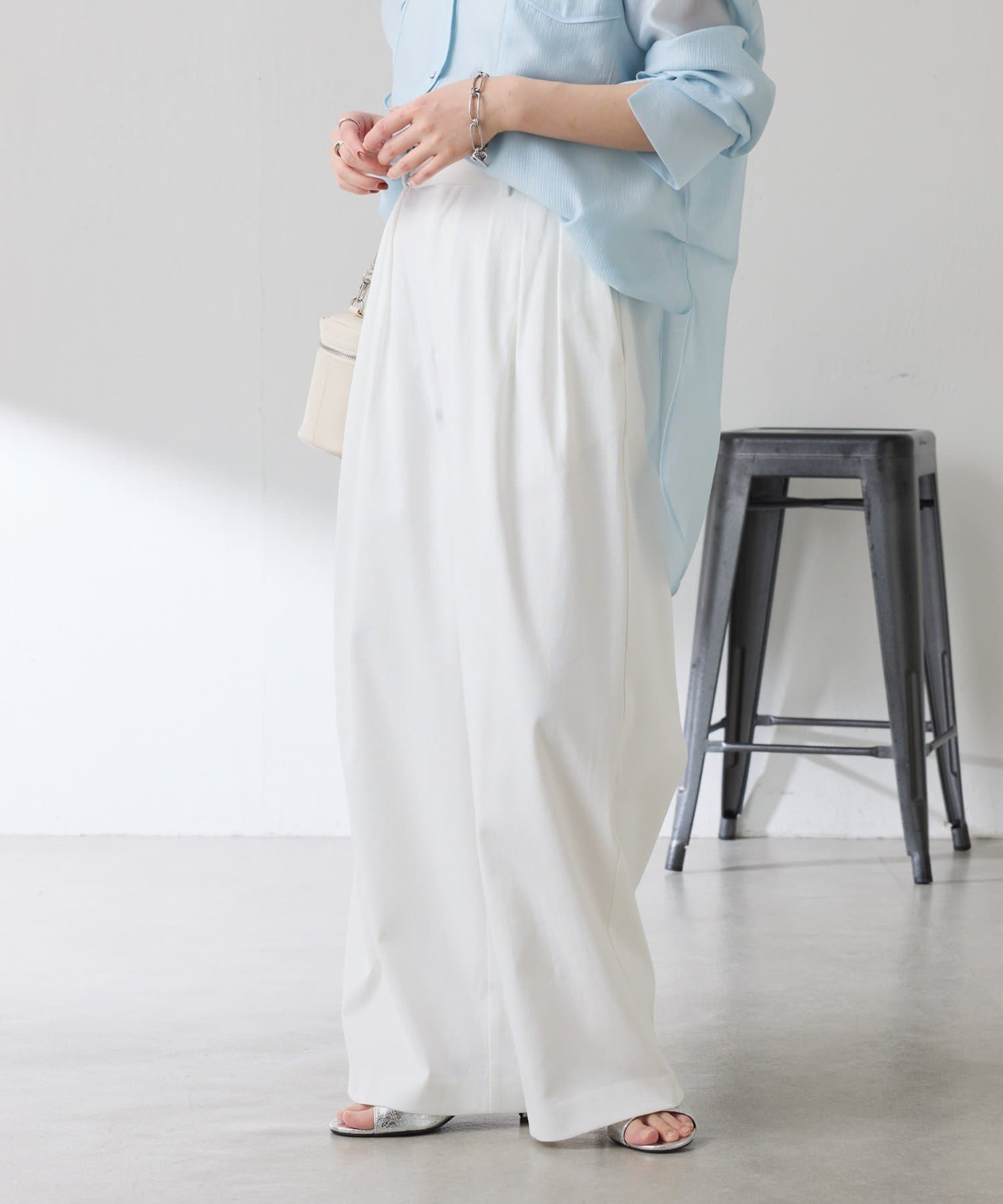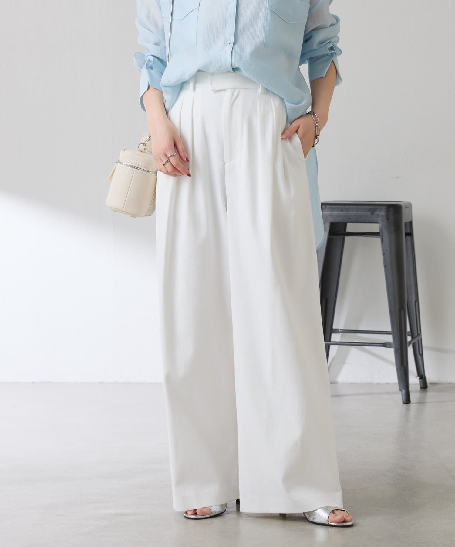 ・フロントに施した3タックがウエスト周りをすっきり見せてくれるワイドシルエットのパンツ。