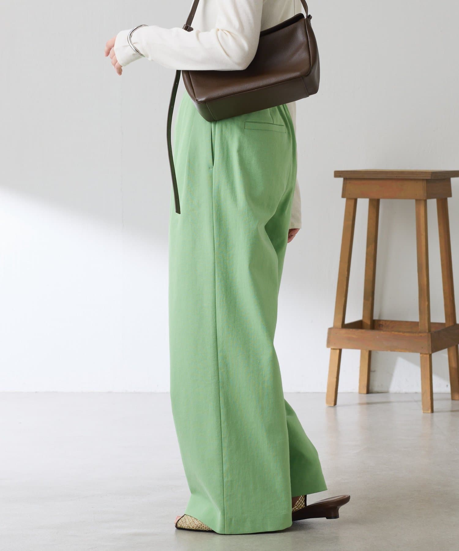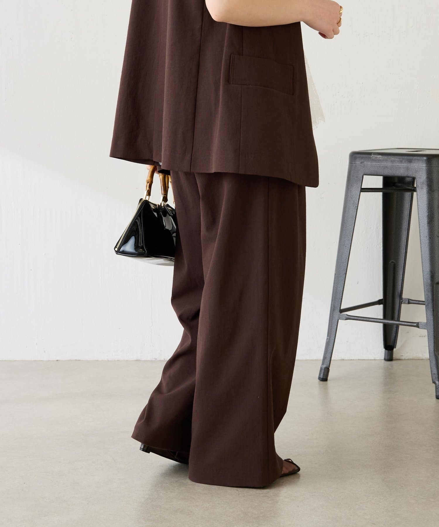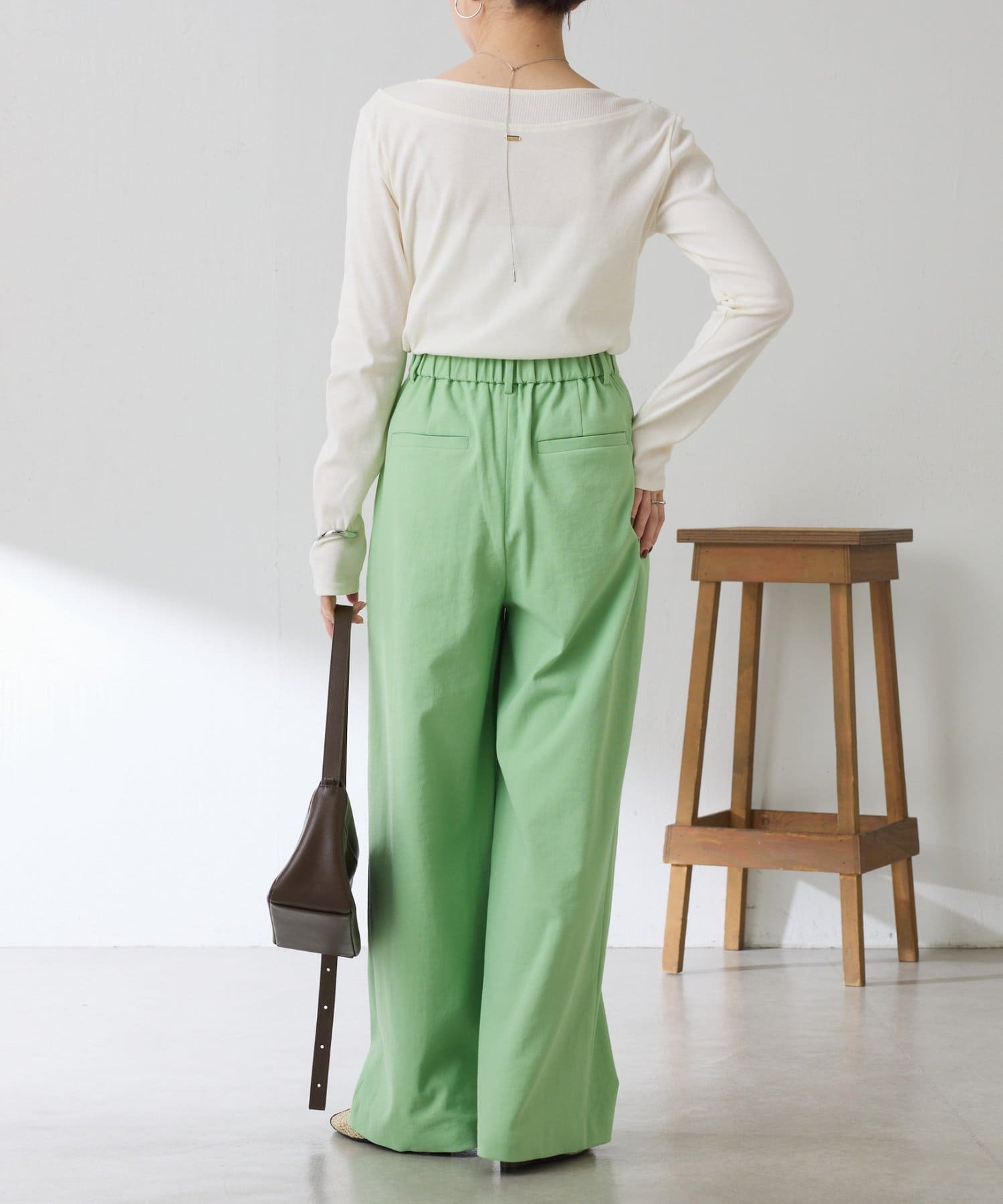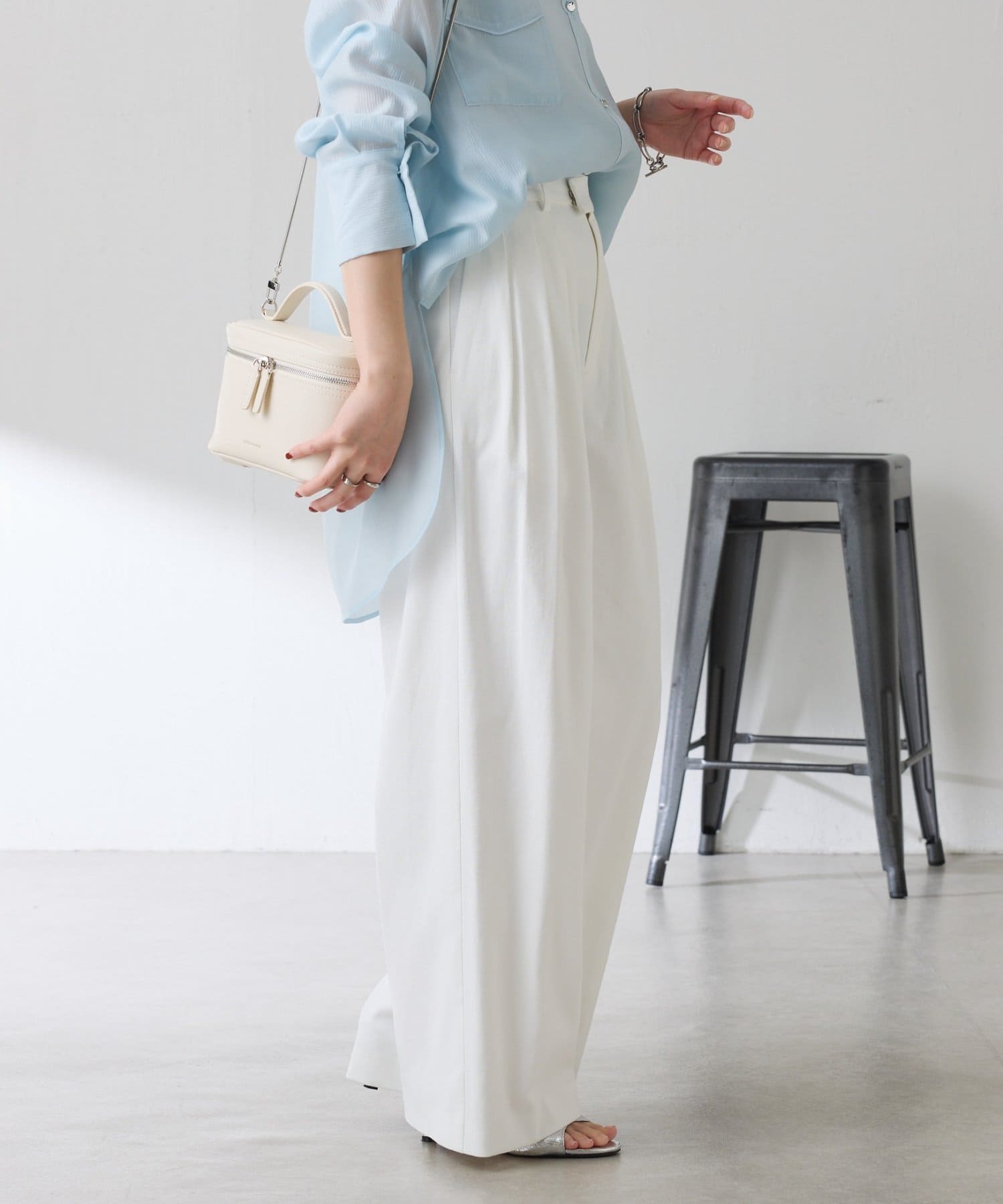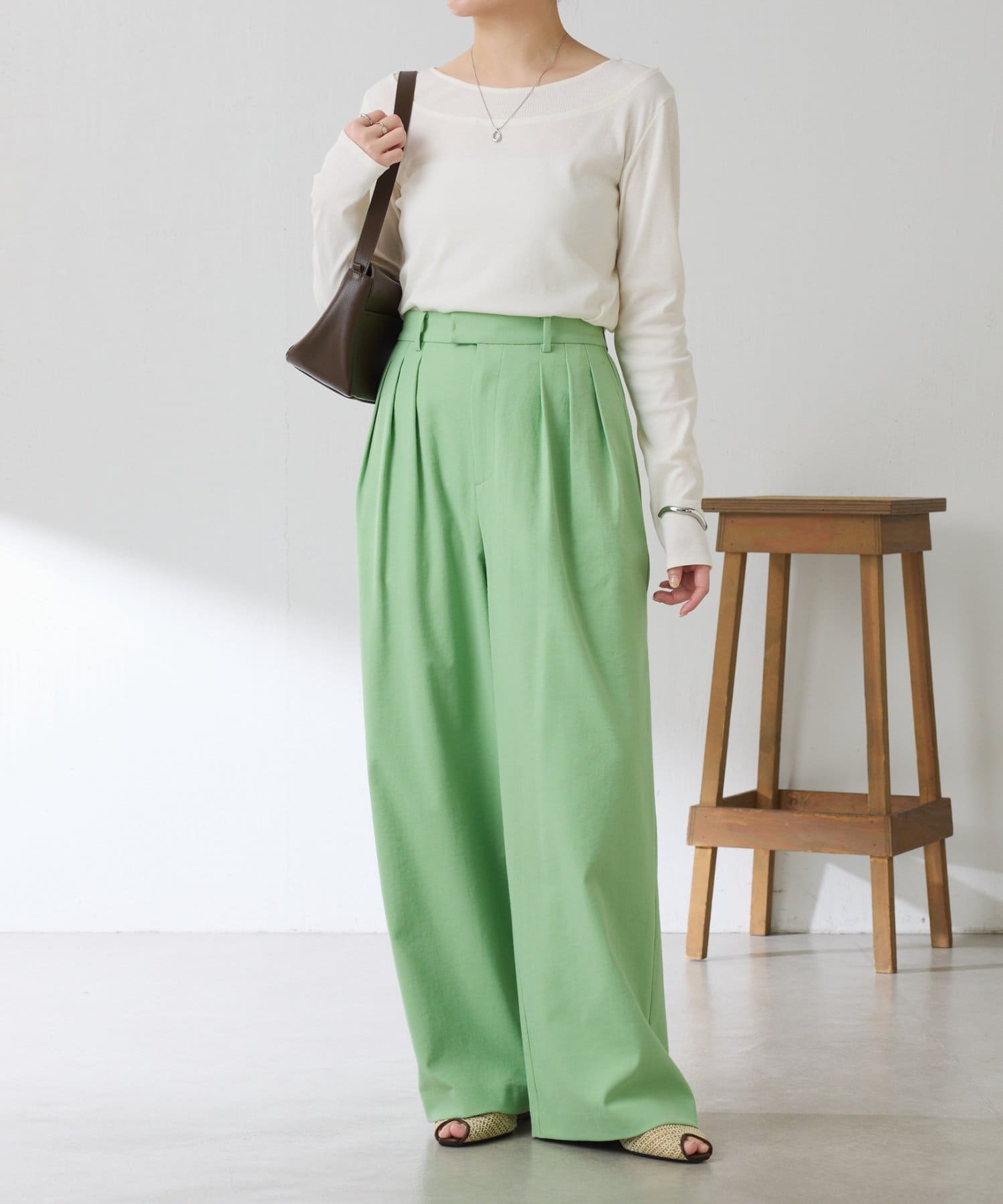 ・フロントに施した3タックがウエスト周りをすっきり見せてくれるワイドシルエットのパンツ。