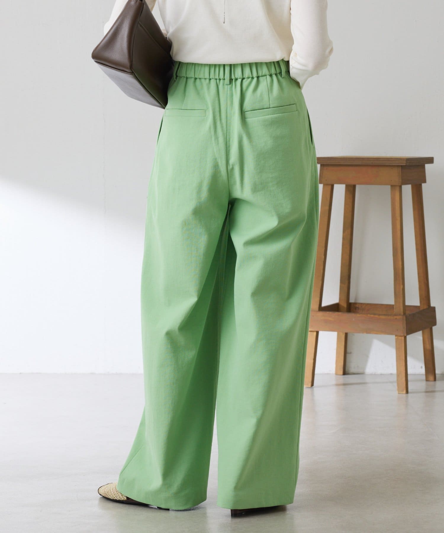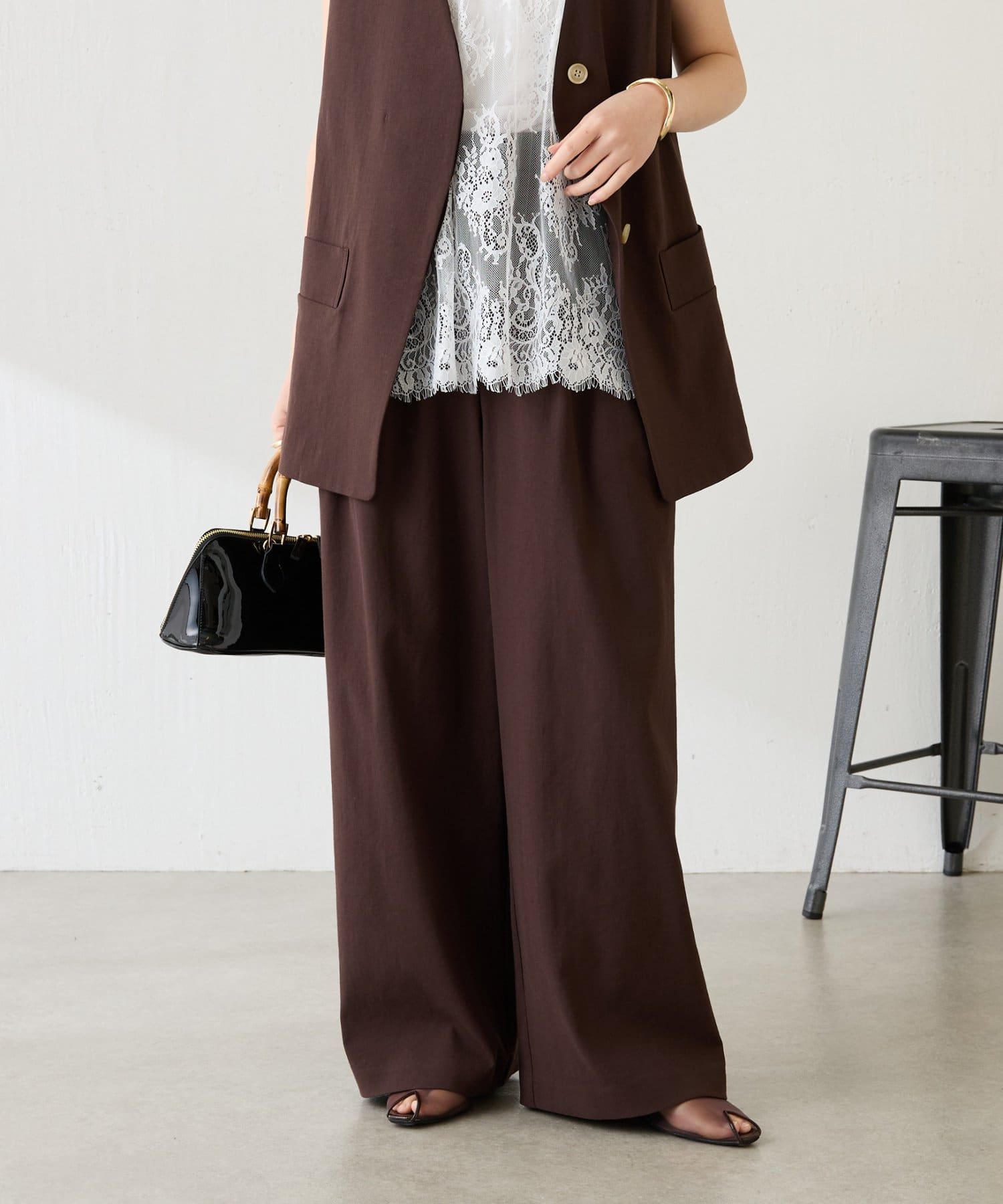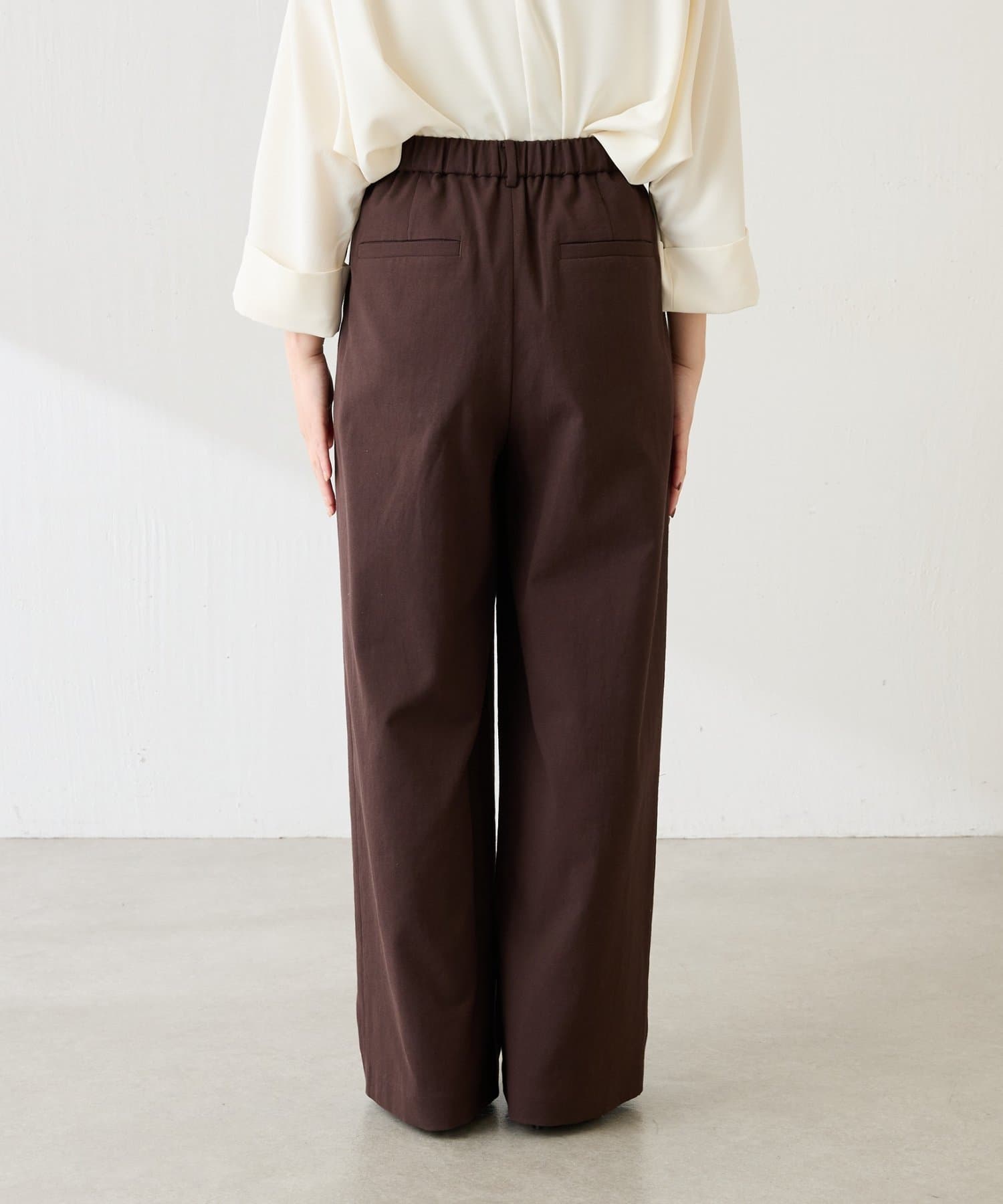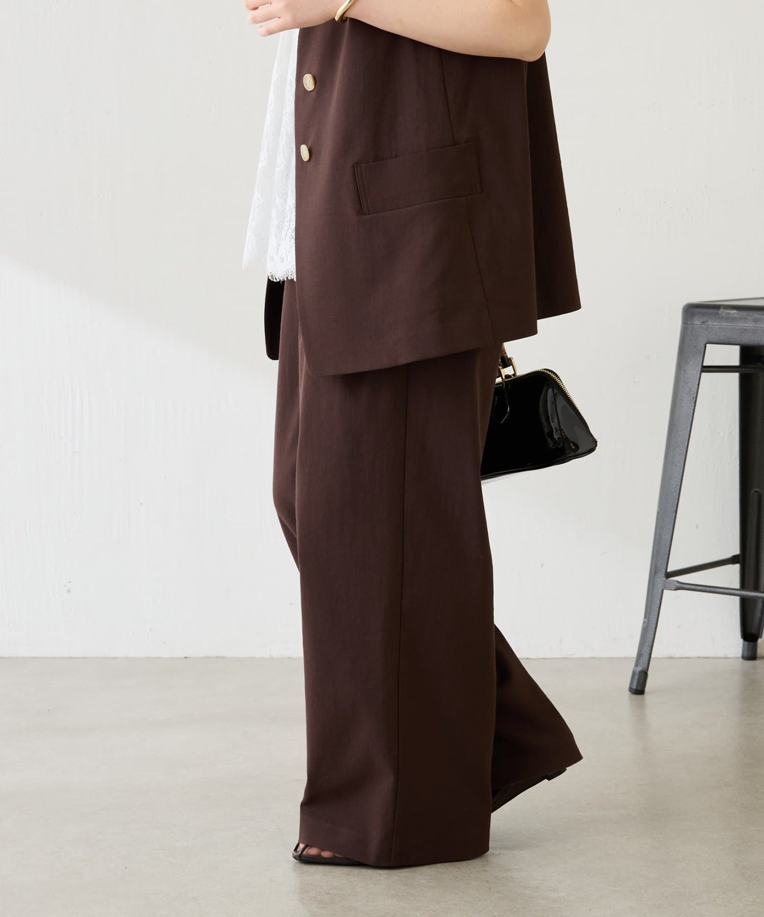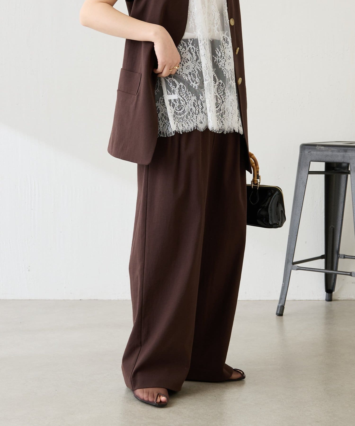 ・フロントに施した3タックがウエスト周りをすっきり見せてくれるワイドシルエットのパンツ。