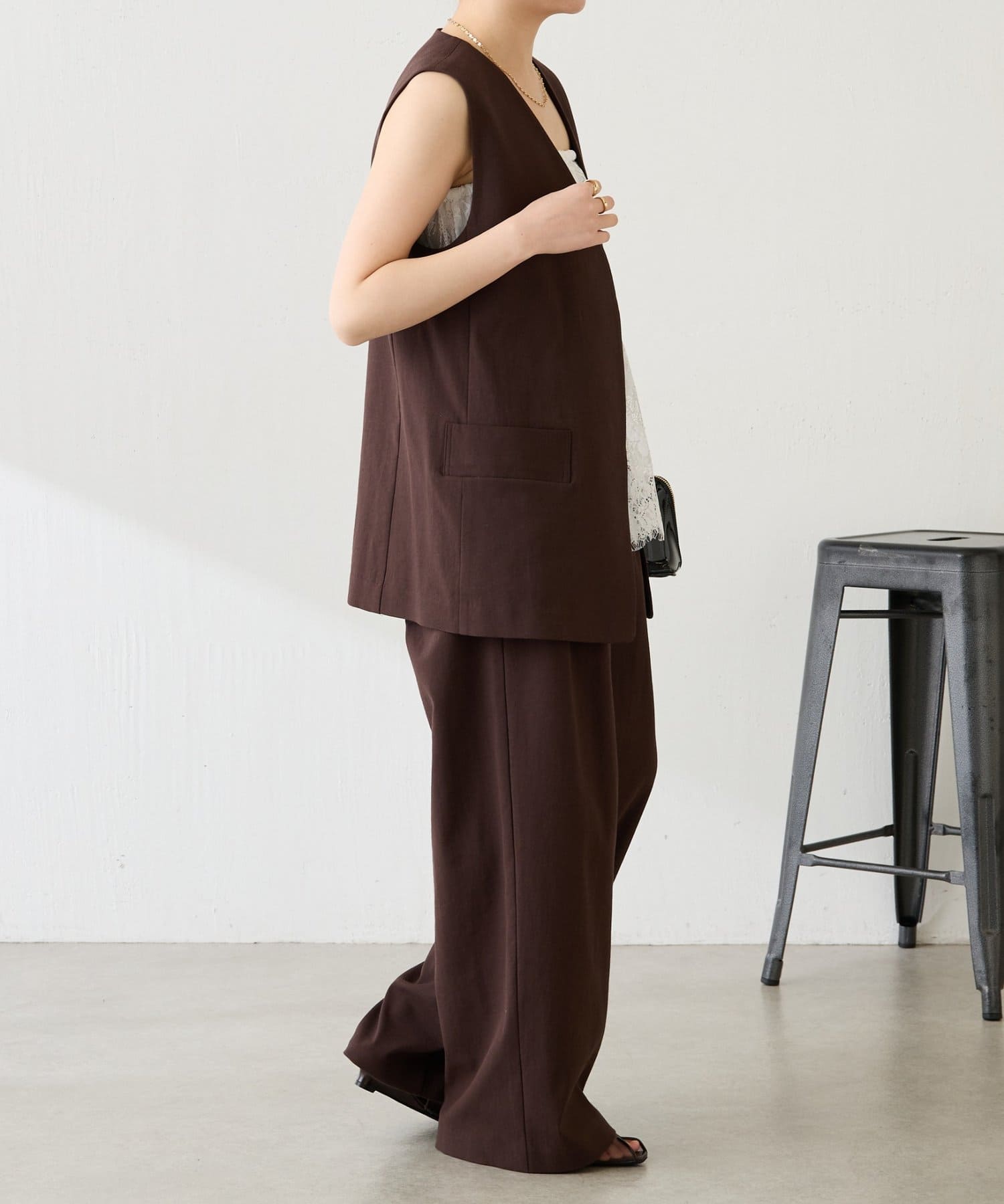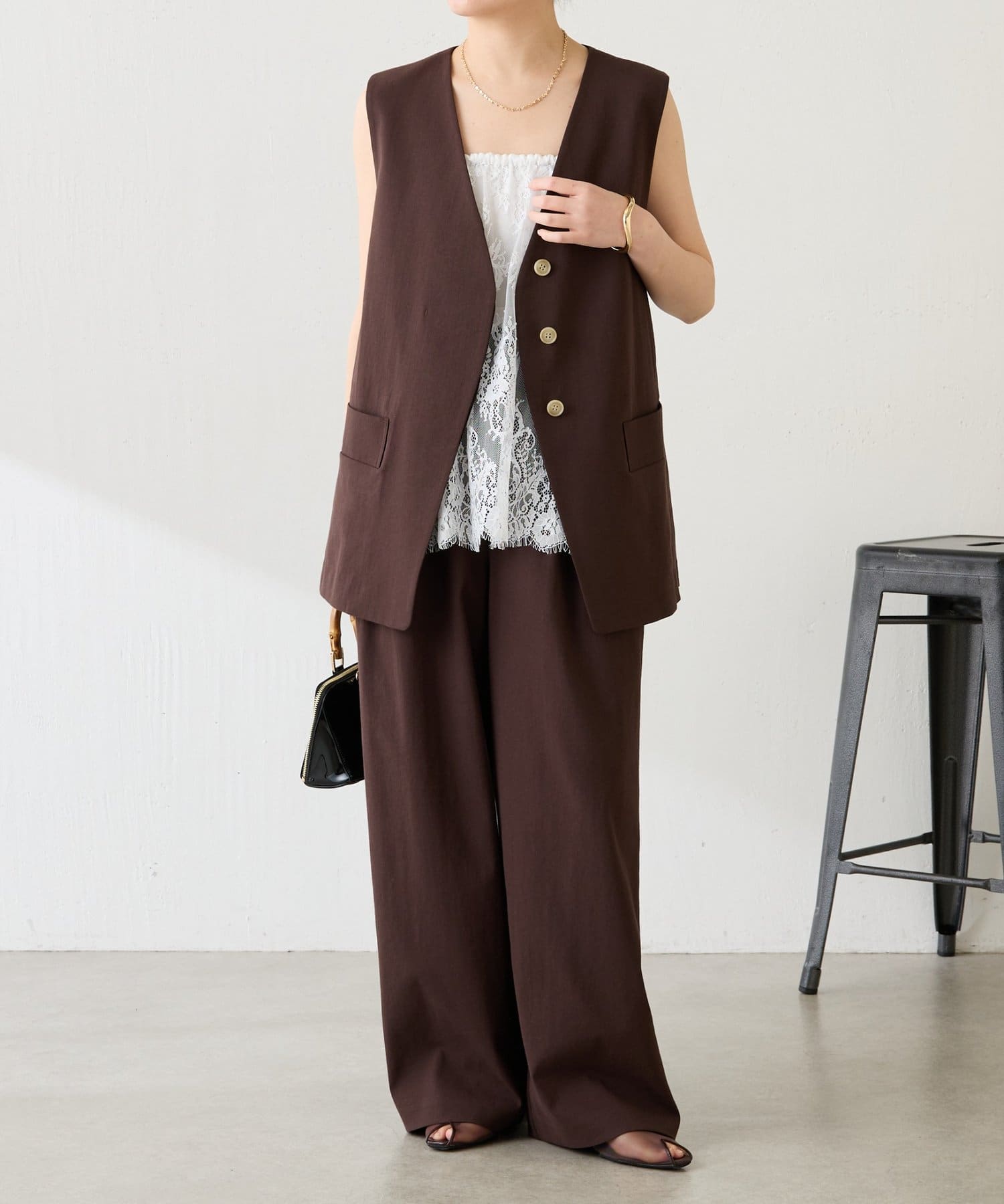 ブラウン:同素材の《シェルタリングジレ  CLZ1061307A0001》を合わせれば暑い時期に嬉しい夏のきちんとコーデが完成します。