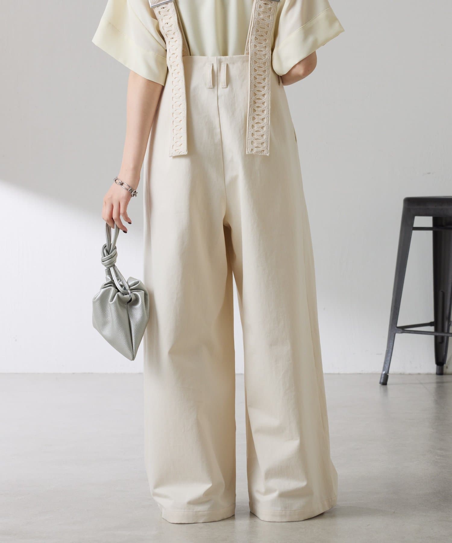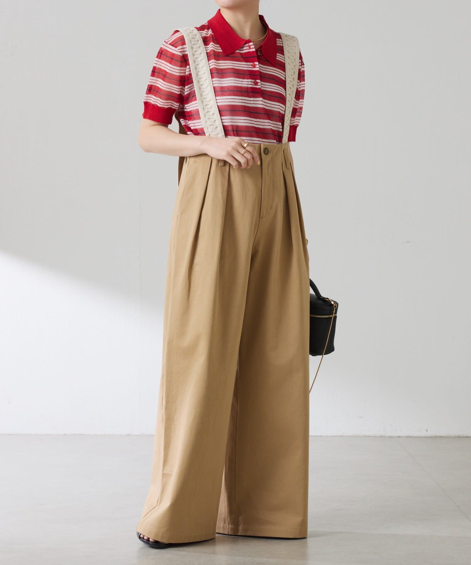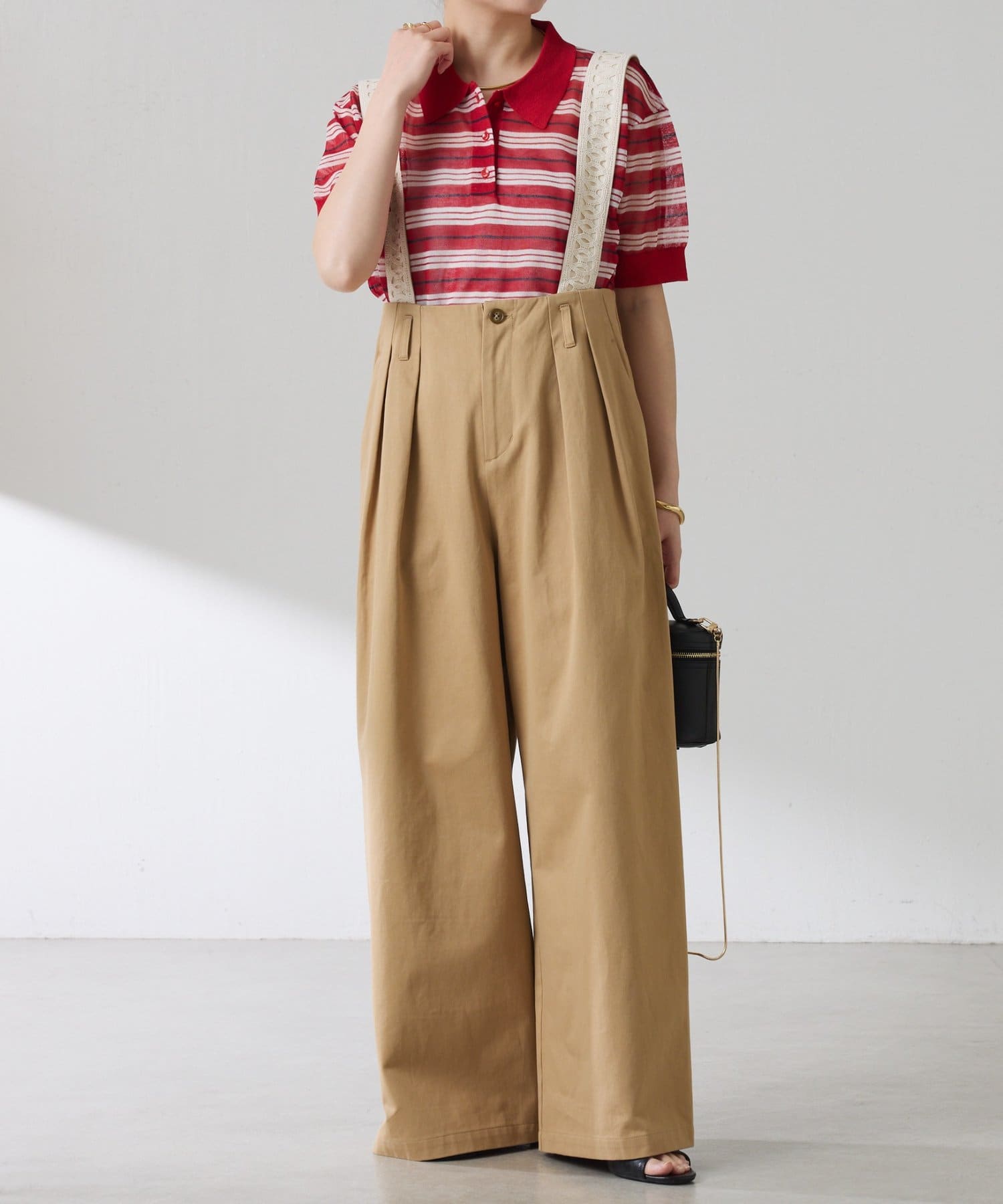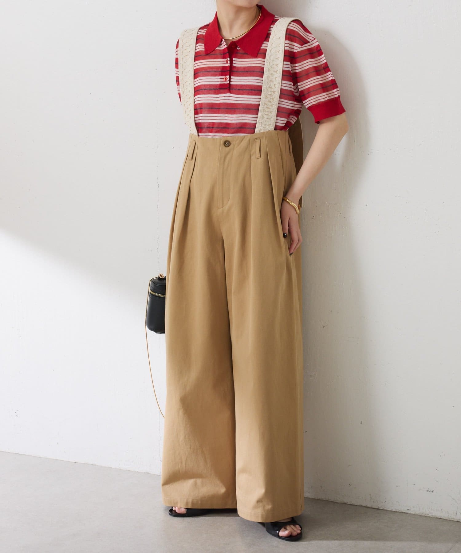 ・サスペンダーはパンツについており、肩にかけない時はそのまま垂らすと動きのあるスタイリングが完成◎