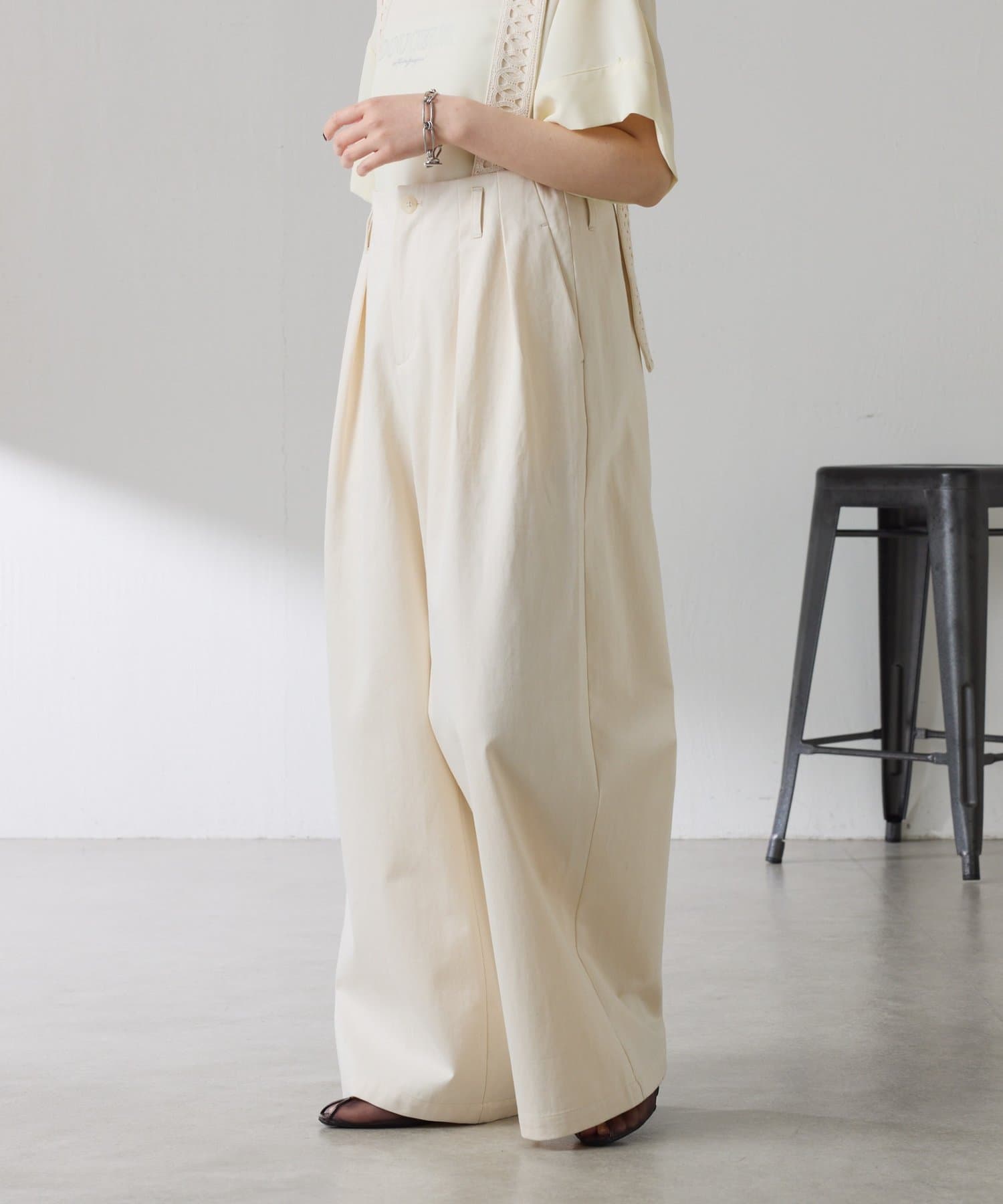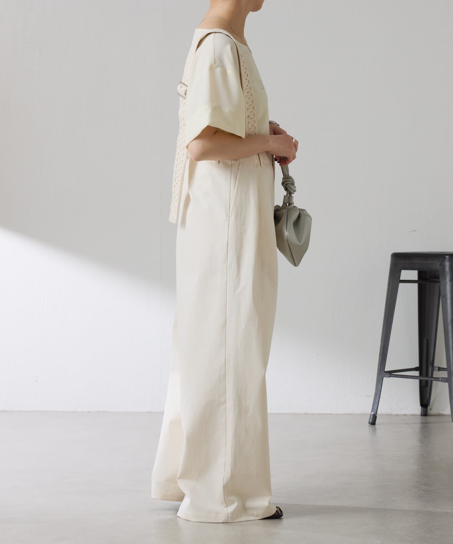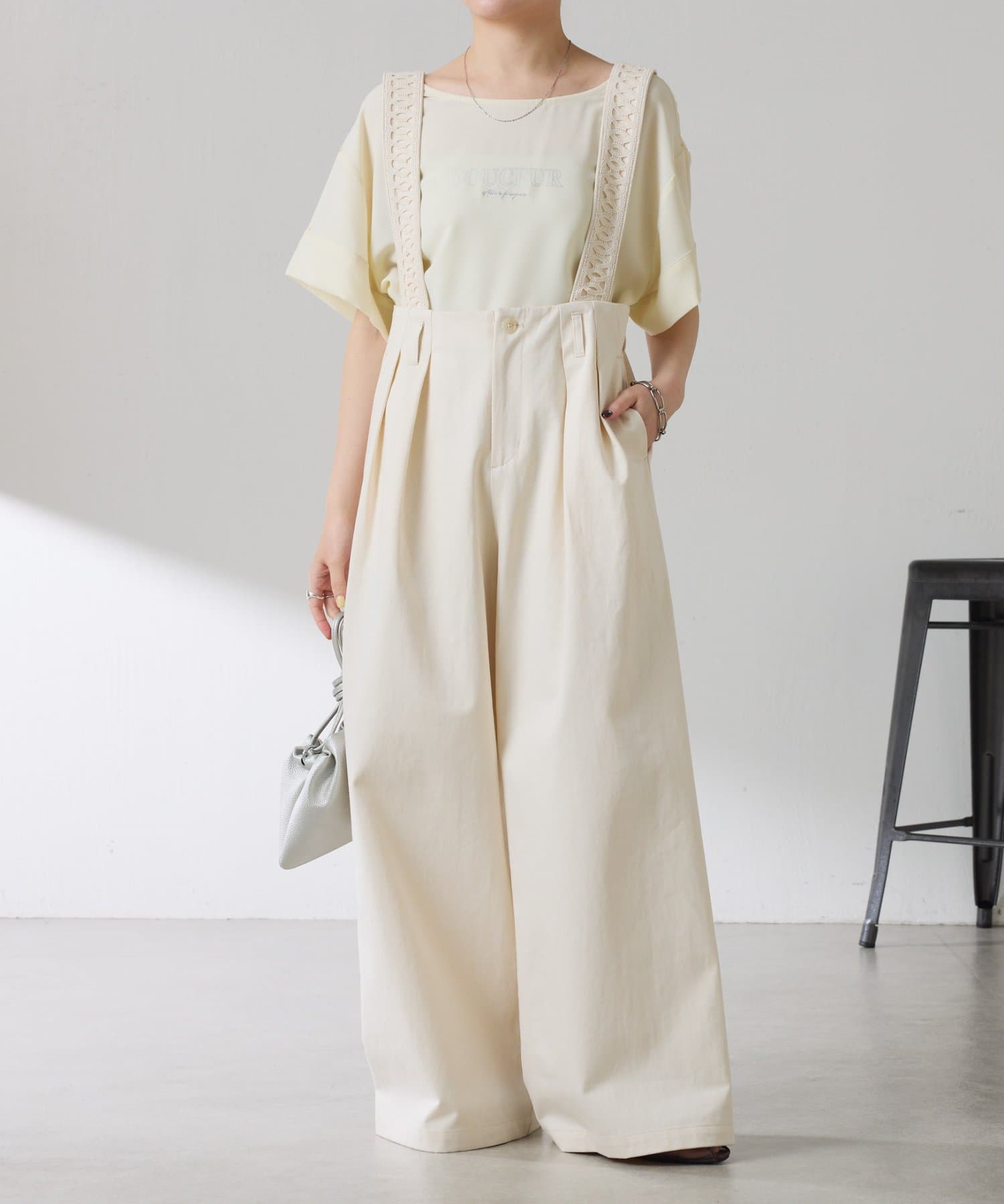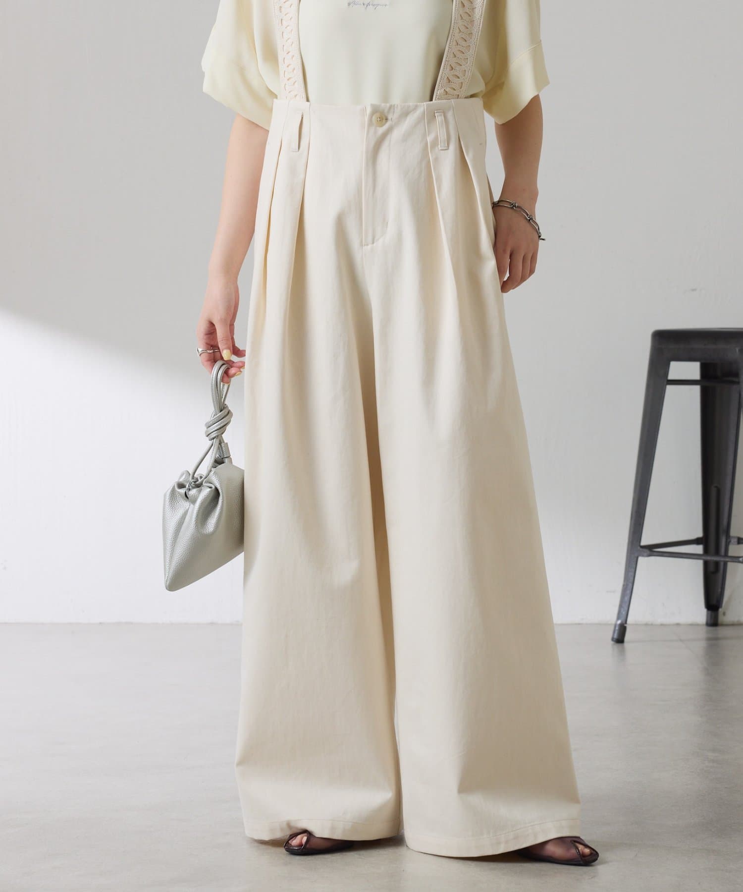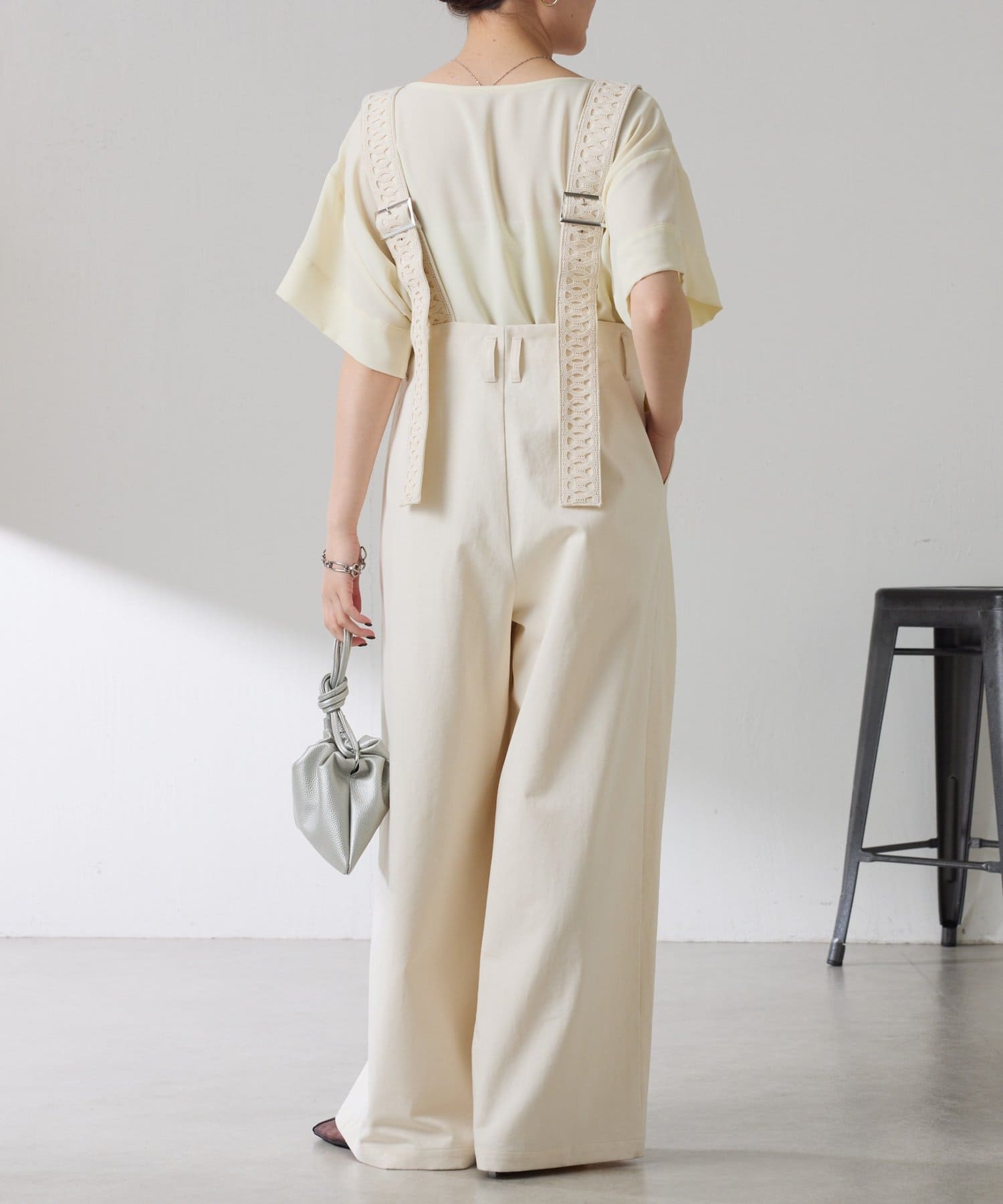 ・サスペンダーはパンツについており、肩にかけない時はそのまま垂らすと動きのあるスタイリングが完成◎