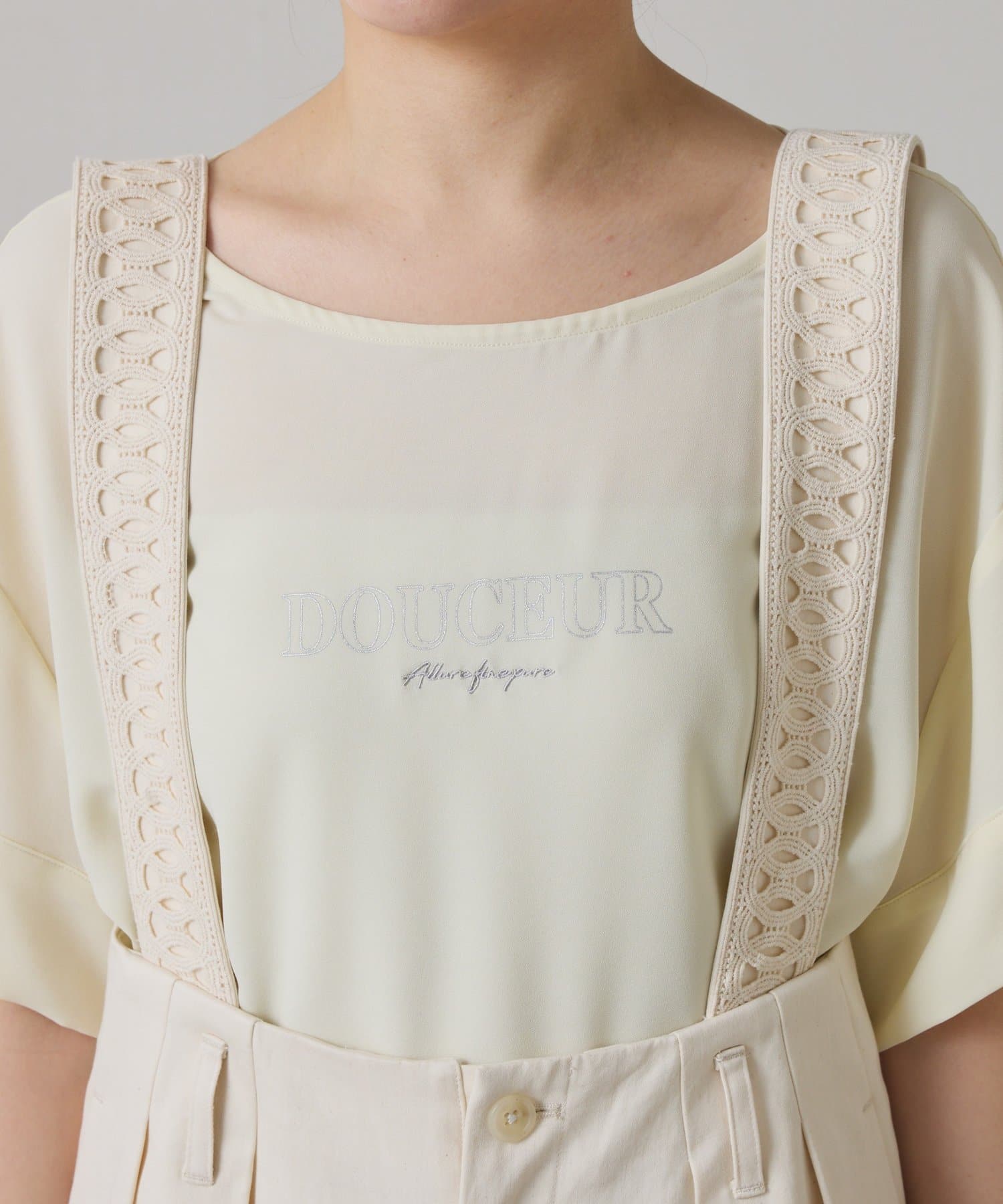 ・サスペンダーのレーステープが女性らしさをプラスしてくれます◎