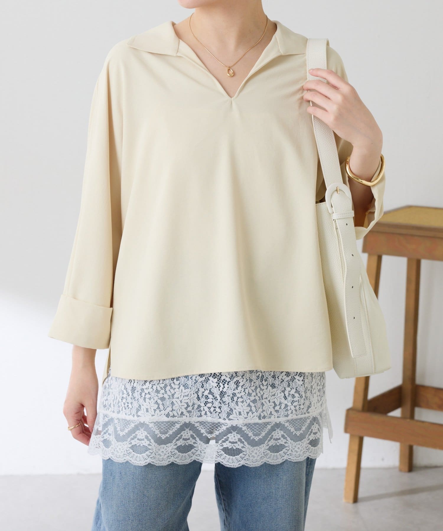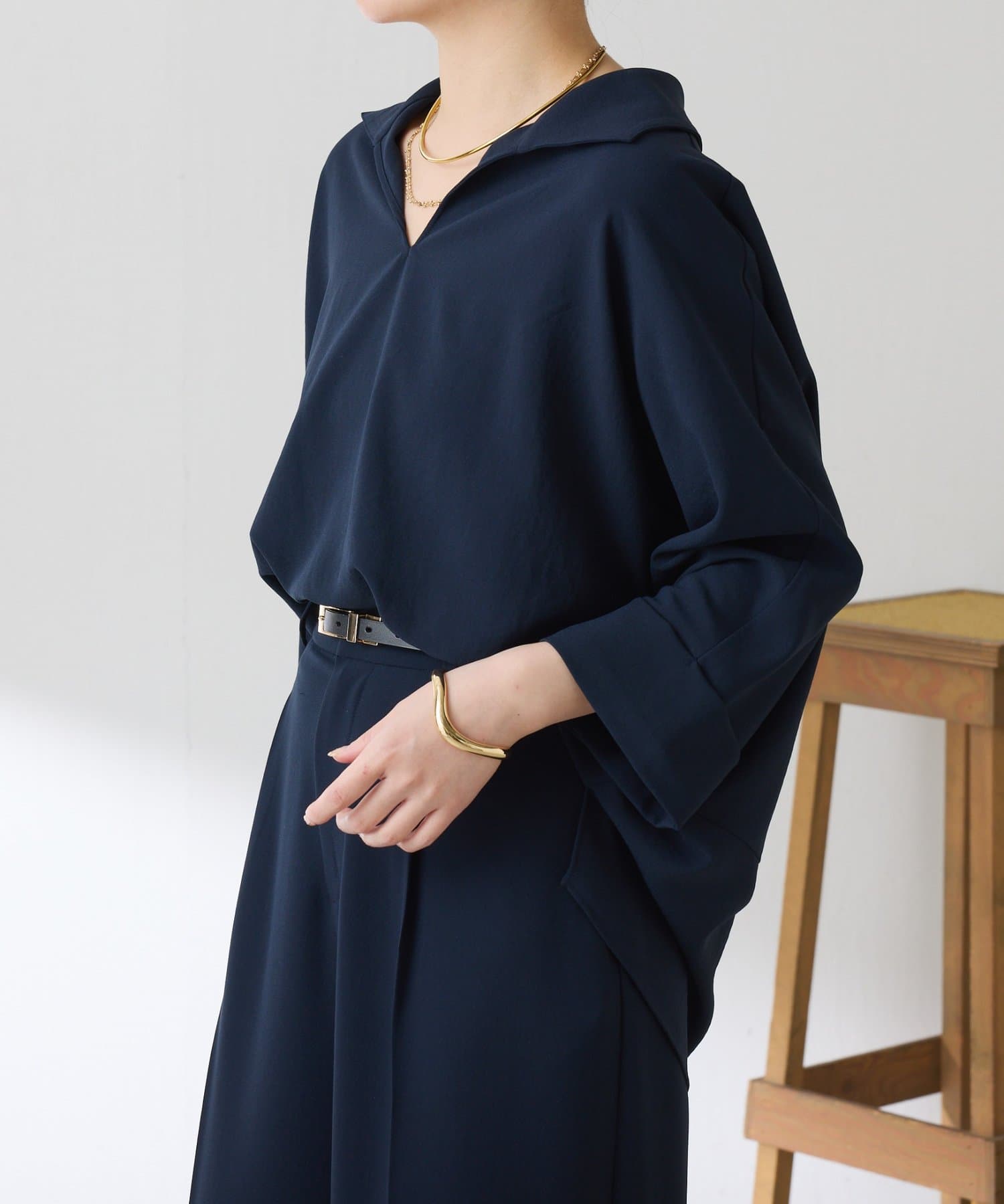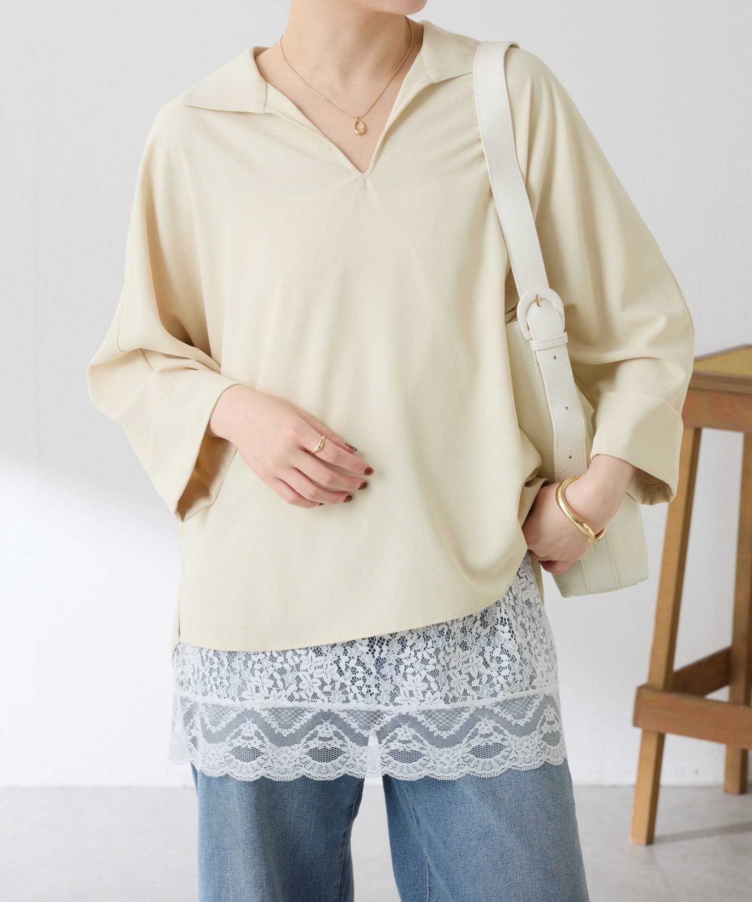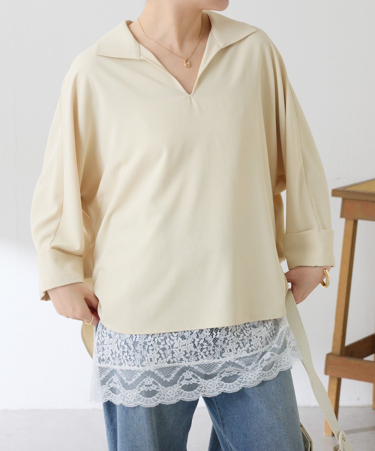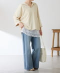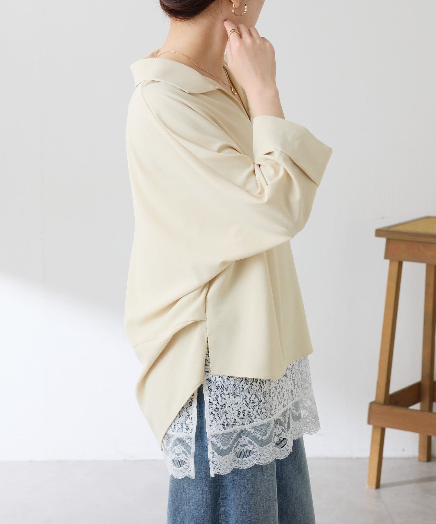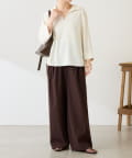 ・7分袖で肘まで隠れる長めの袖丈と、ゆるっと着られるサイズ感は体型を選ばずに着用可能◎