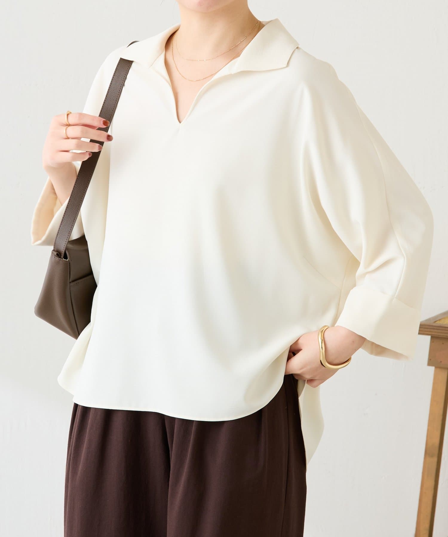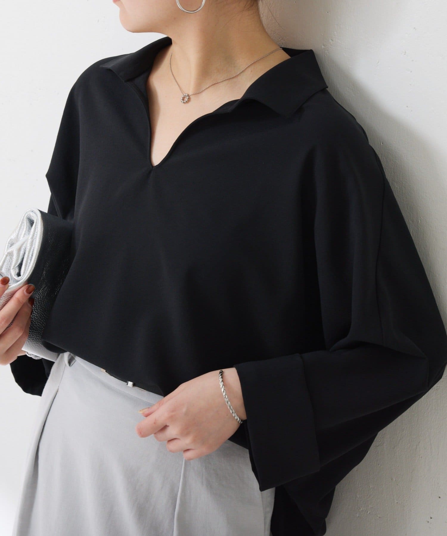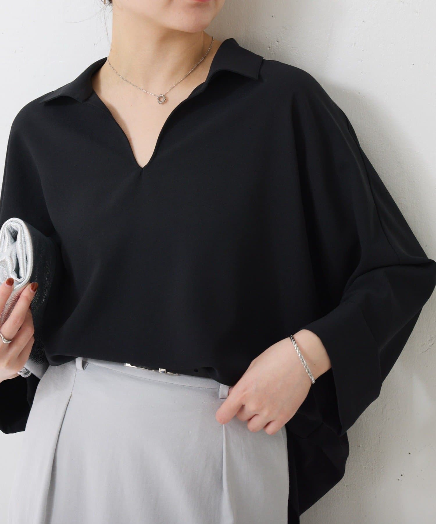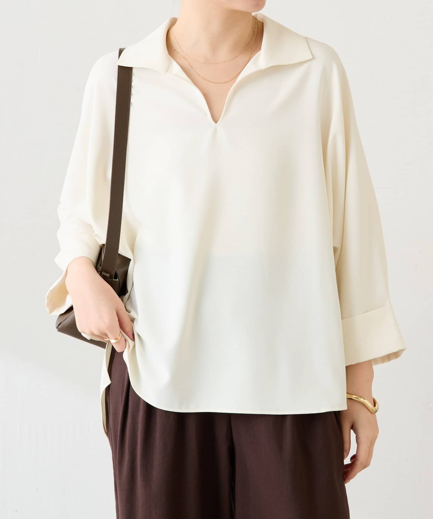 ・抜け感のあるオープンカラーのスキッパーデザインが着痩せが叶います◎