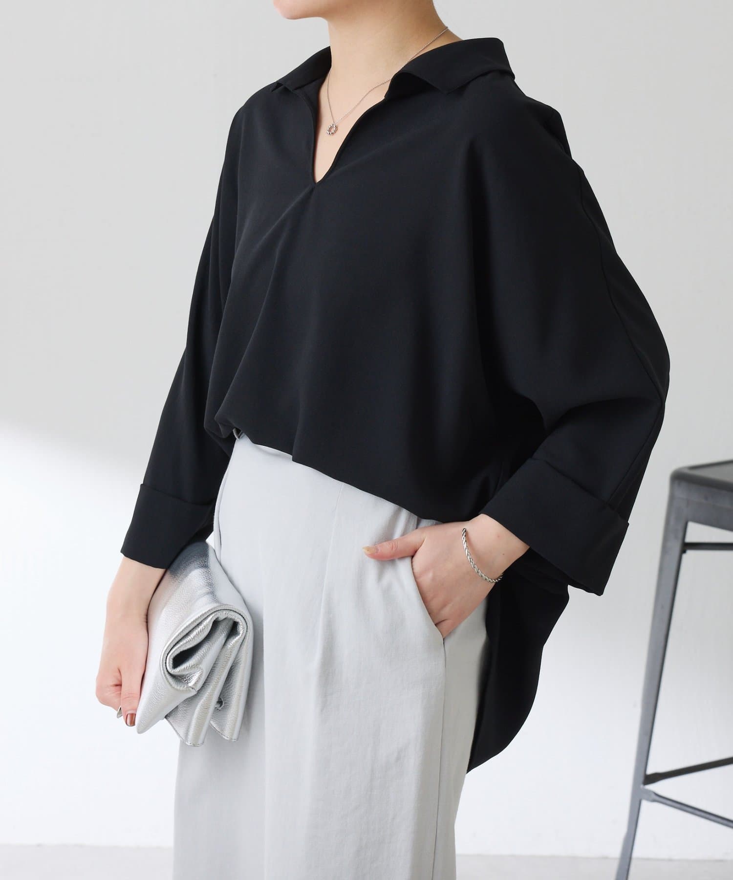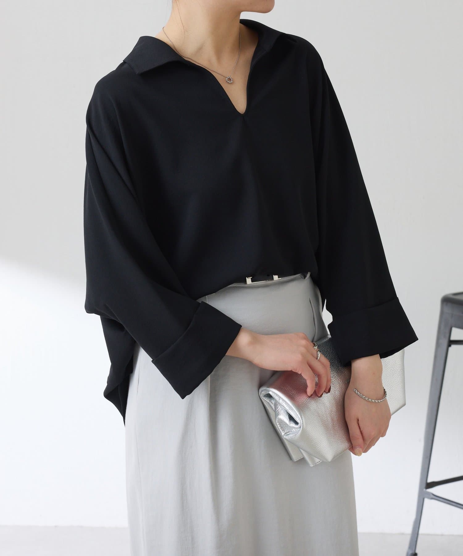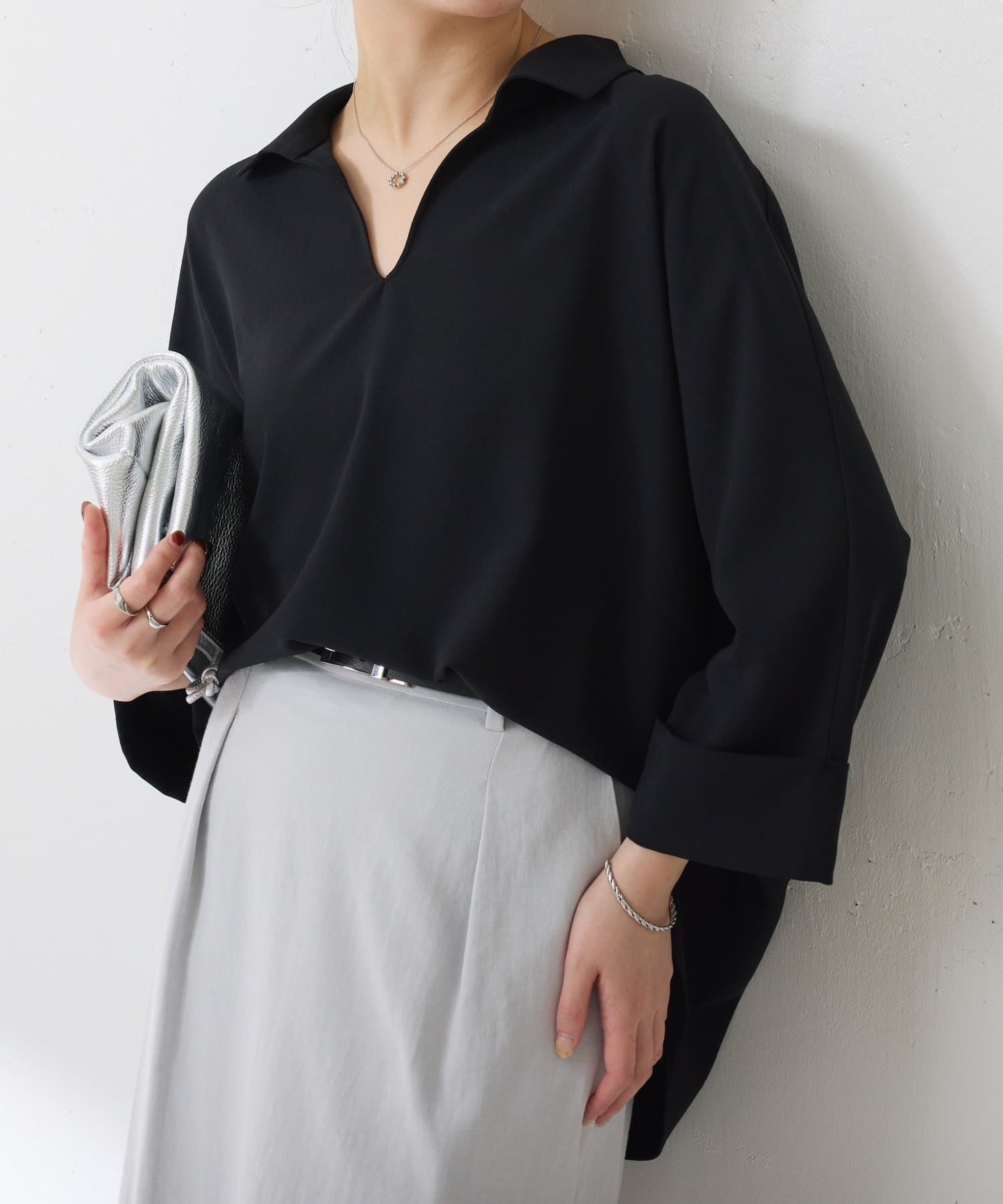 ・抜け感のあるオープンカラーのスキッパーデザインが着痩せが叶います◎