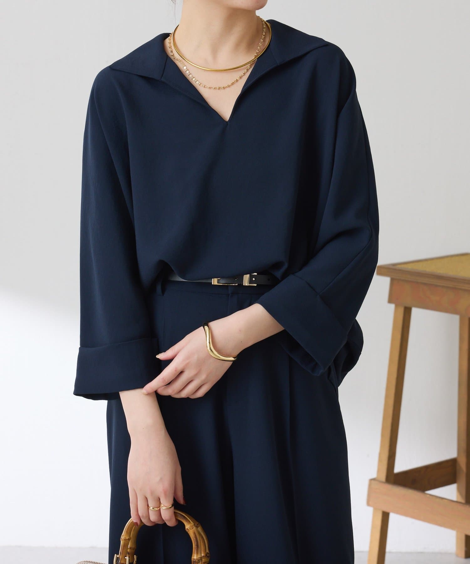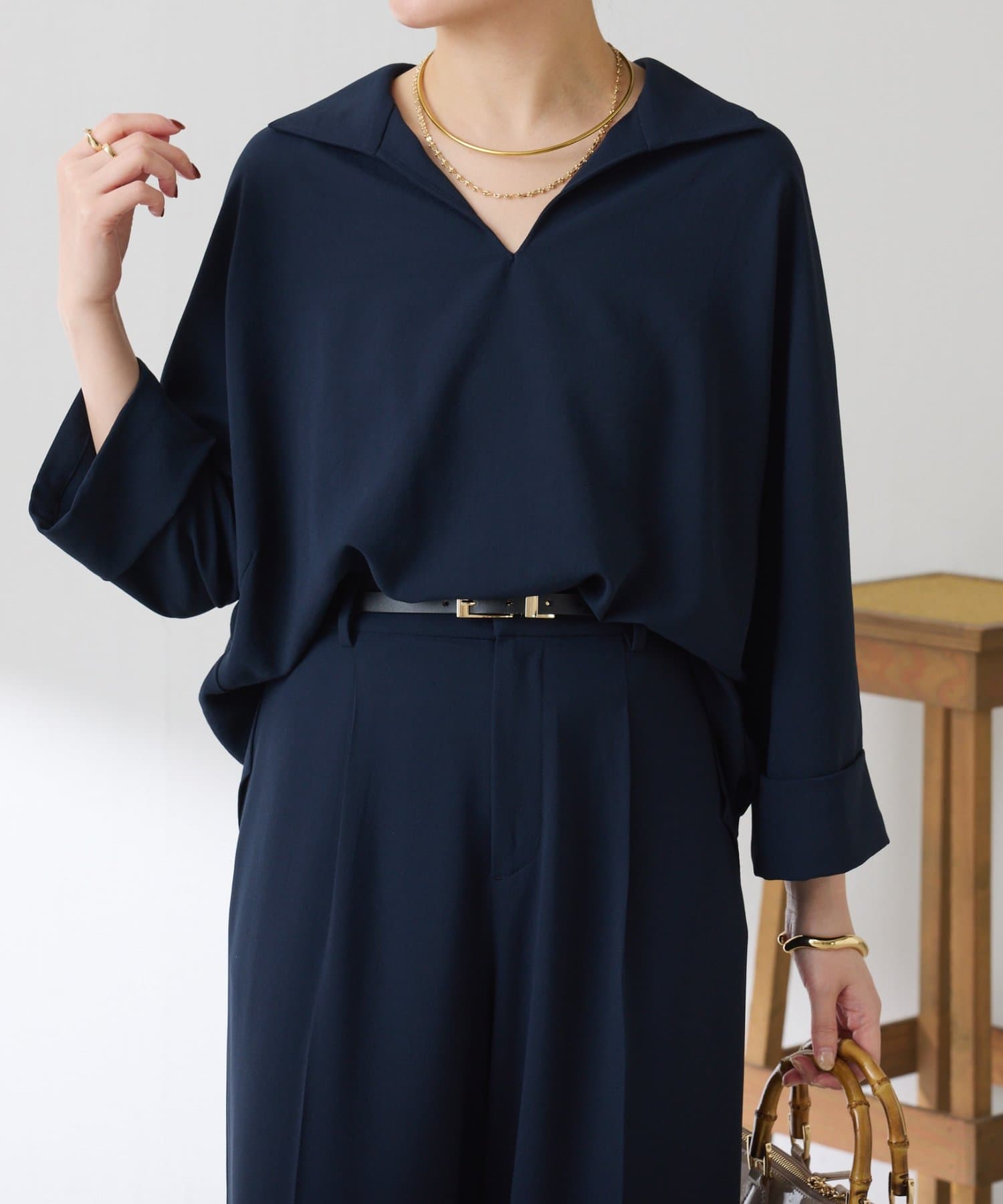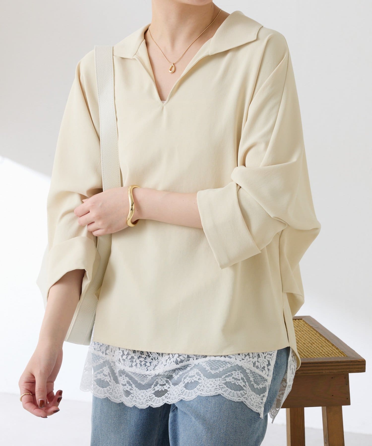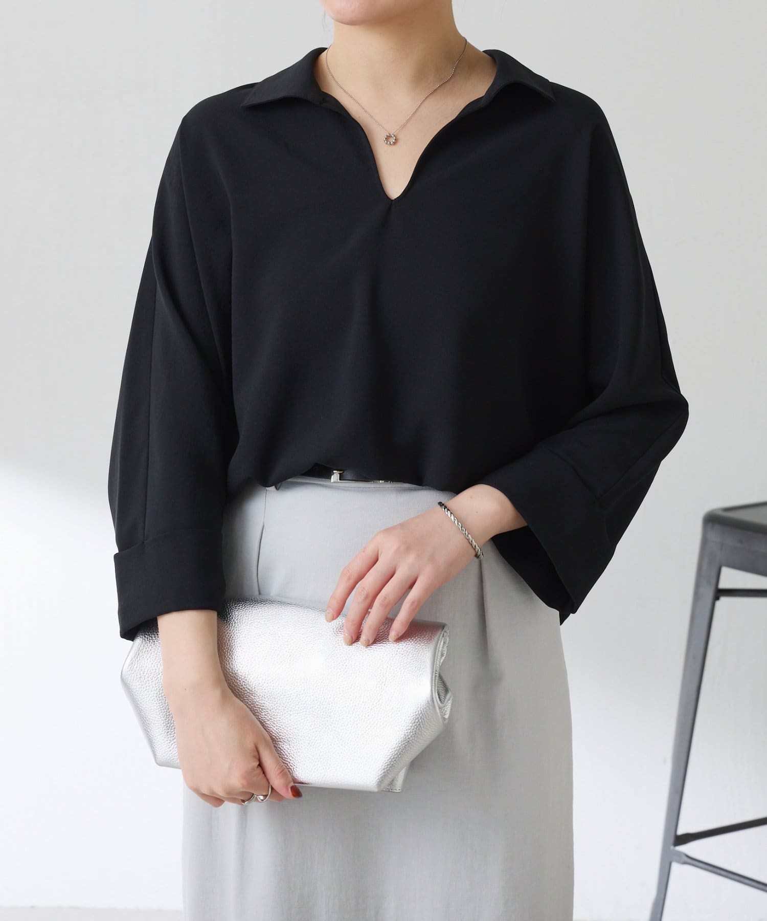 ・抜け感のあるオープンカラーのスキッパーデザインが着痩せが叶います◎