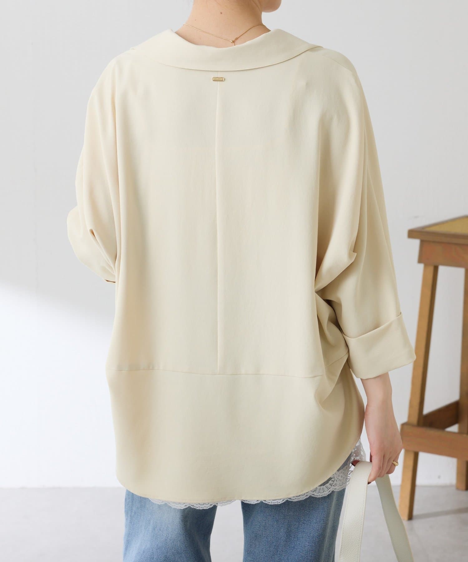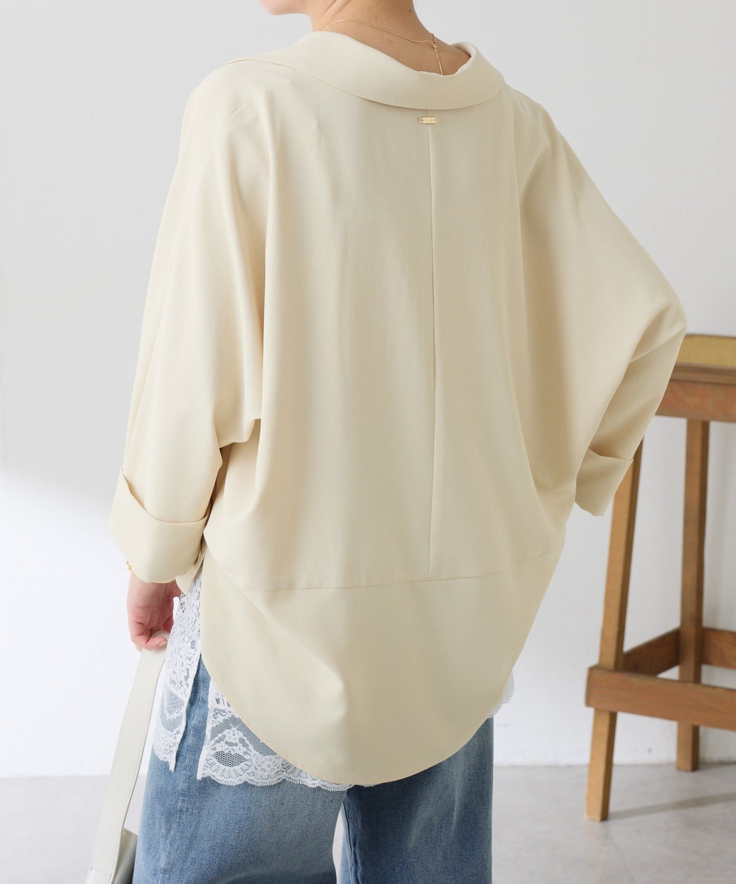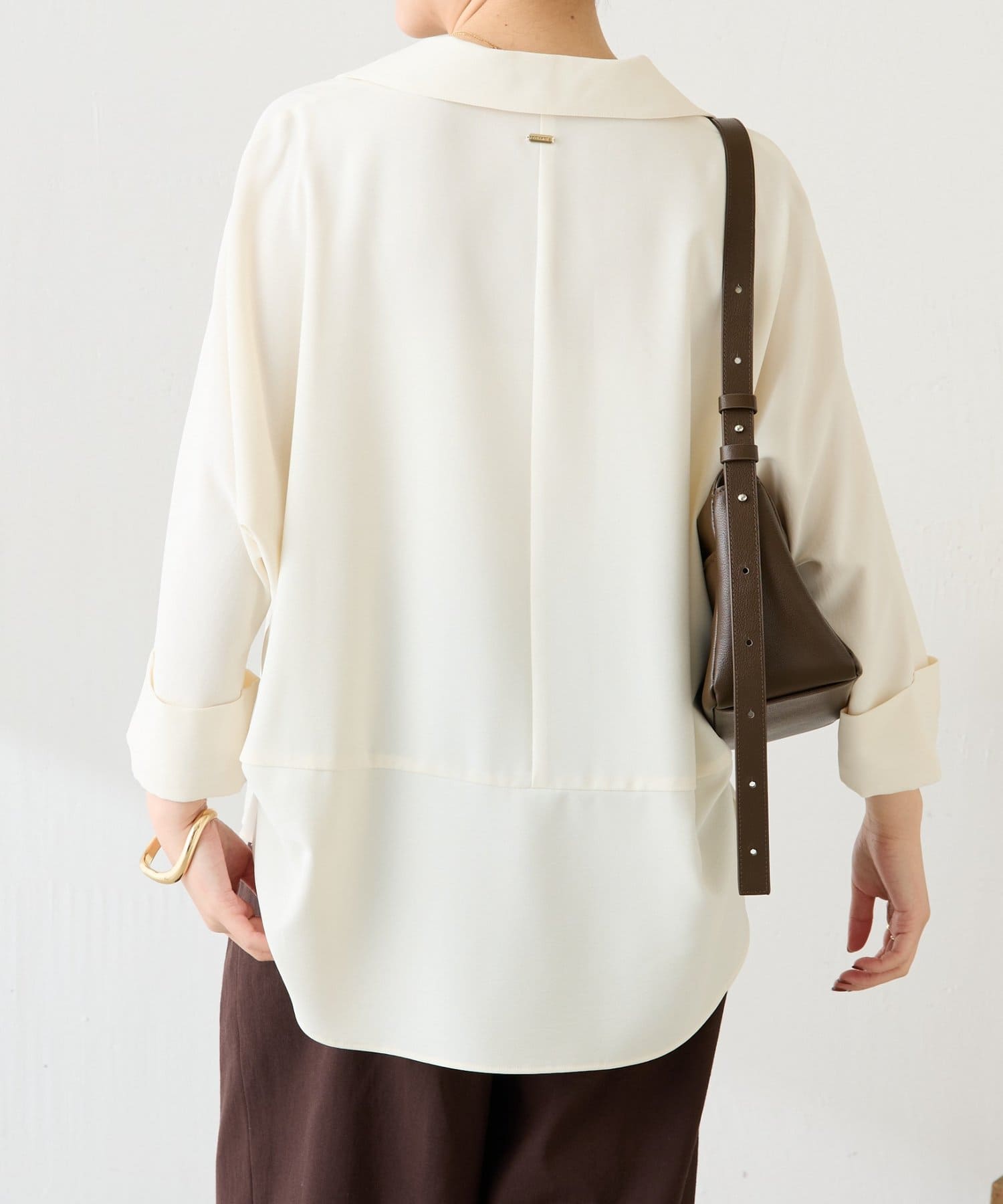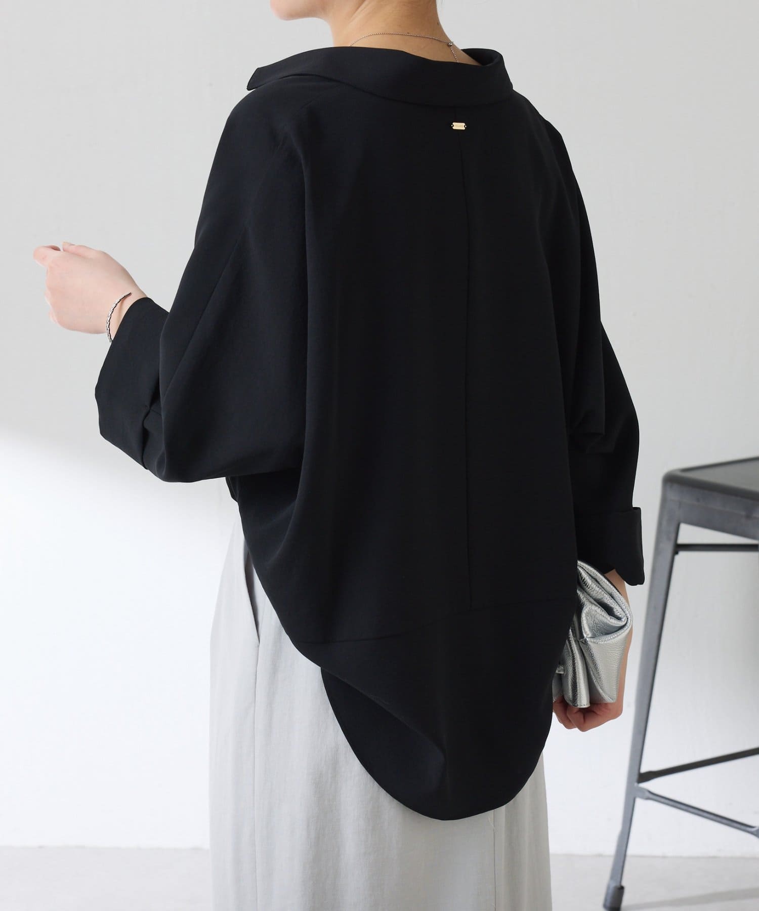 ・裾はヘムラインにしていて、後ろ部分は腰回りが隠れる着丈なのでおしゃれに体型カバーも叶います。