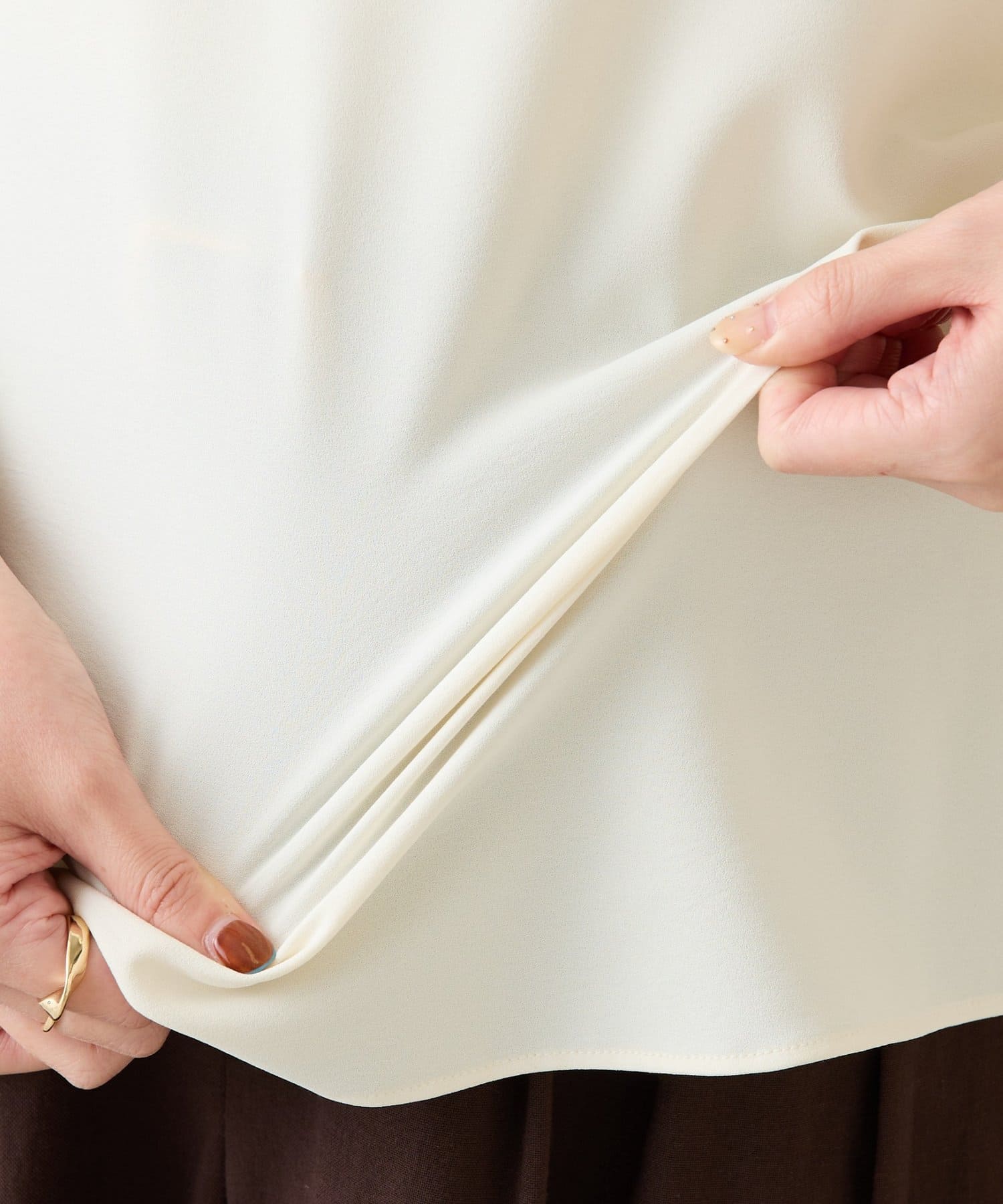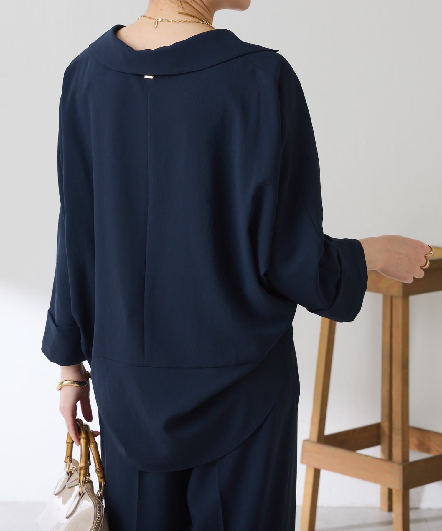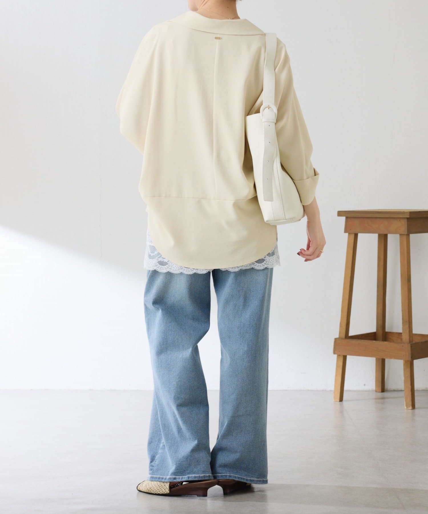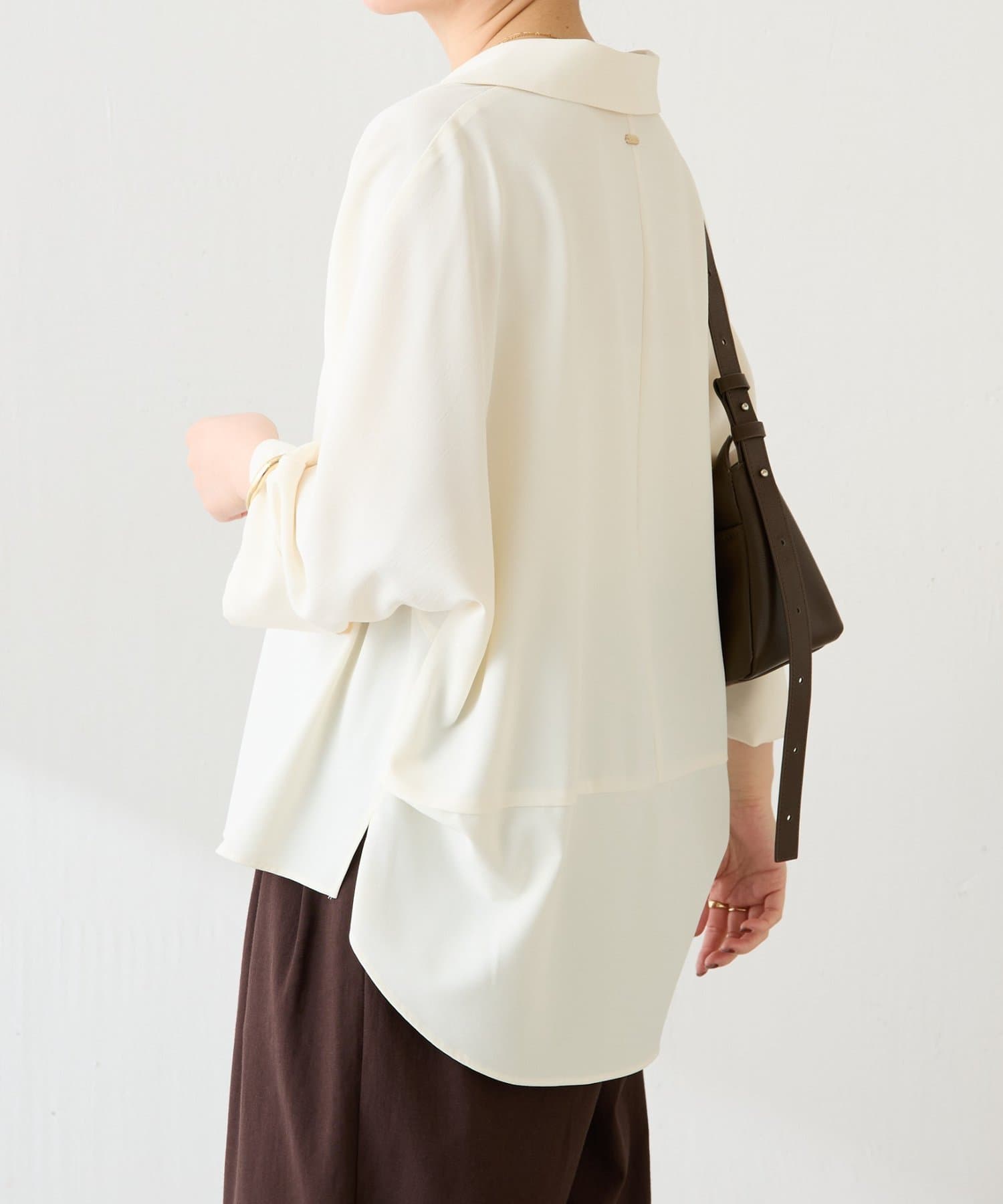 ・裾はヘムラインにしていて、後ろ部分は腰回りが隠れる着丈なのでおしゃれに体型カバーも叶います。