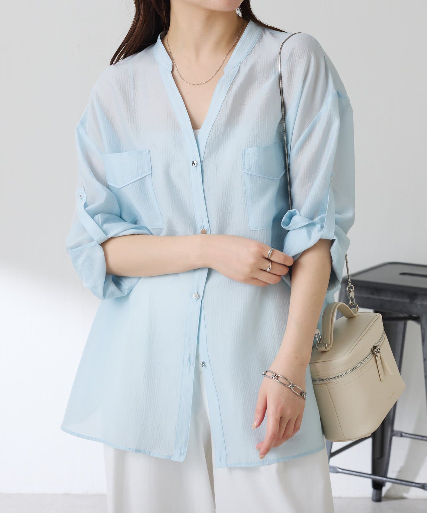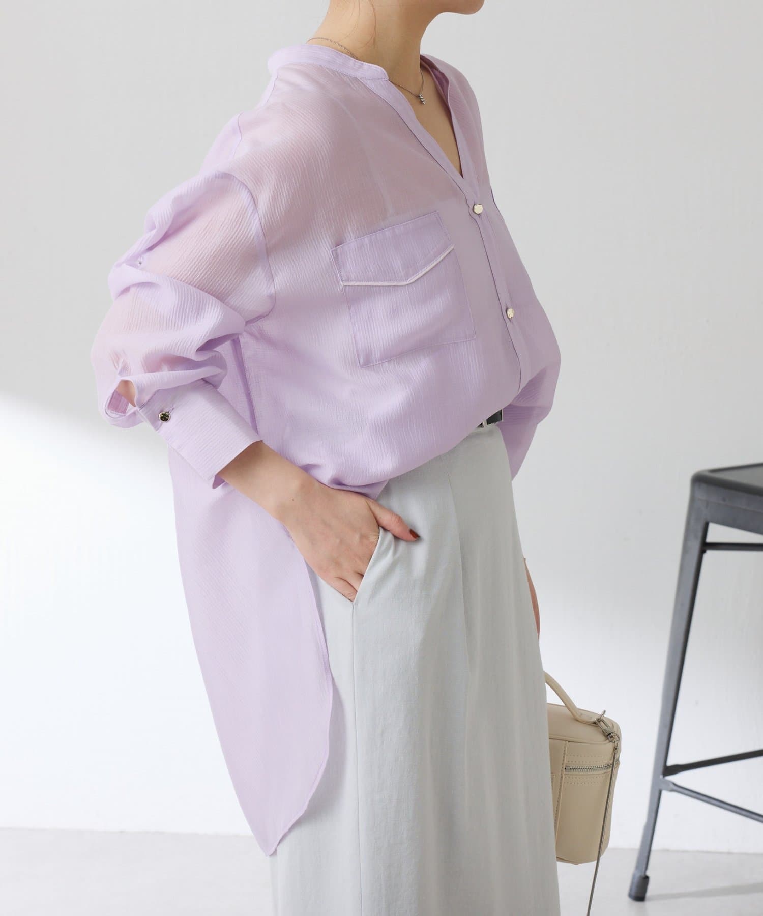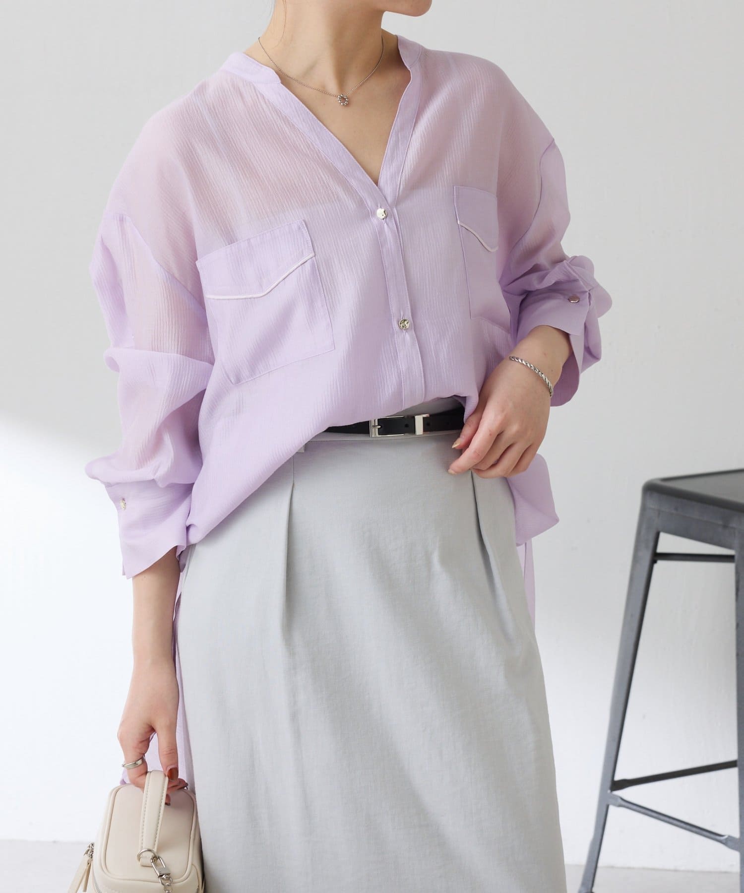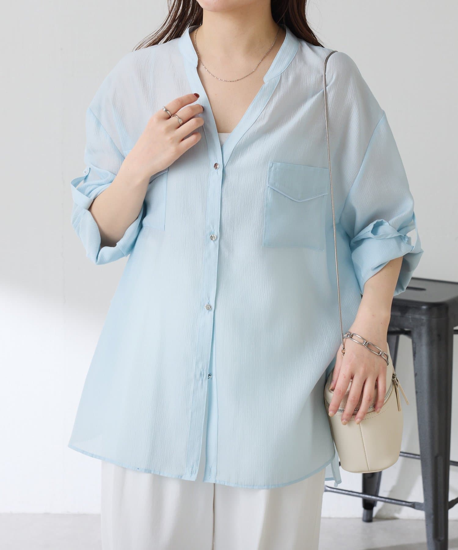TOP > COLLAGE GALLARDAGALANTE > レディース > トップス > シャツ/ブラウス(ボタン) > 【丈を変えられる】ヴィンテージライクシアーシャツ
