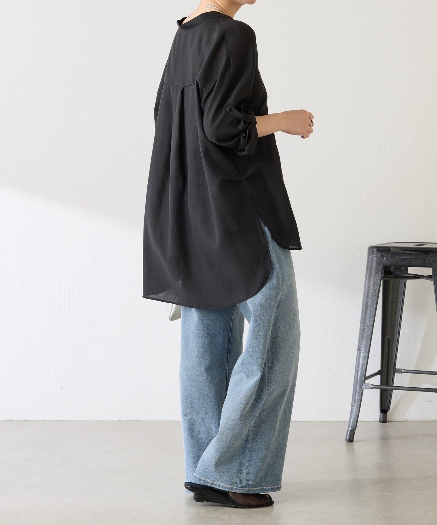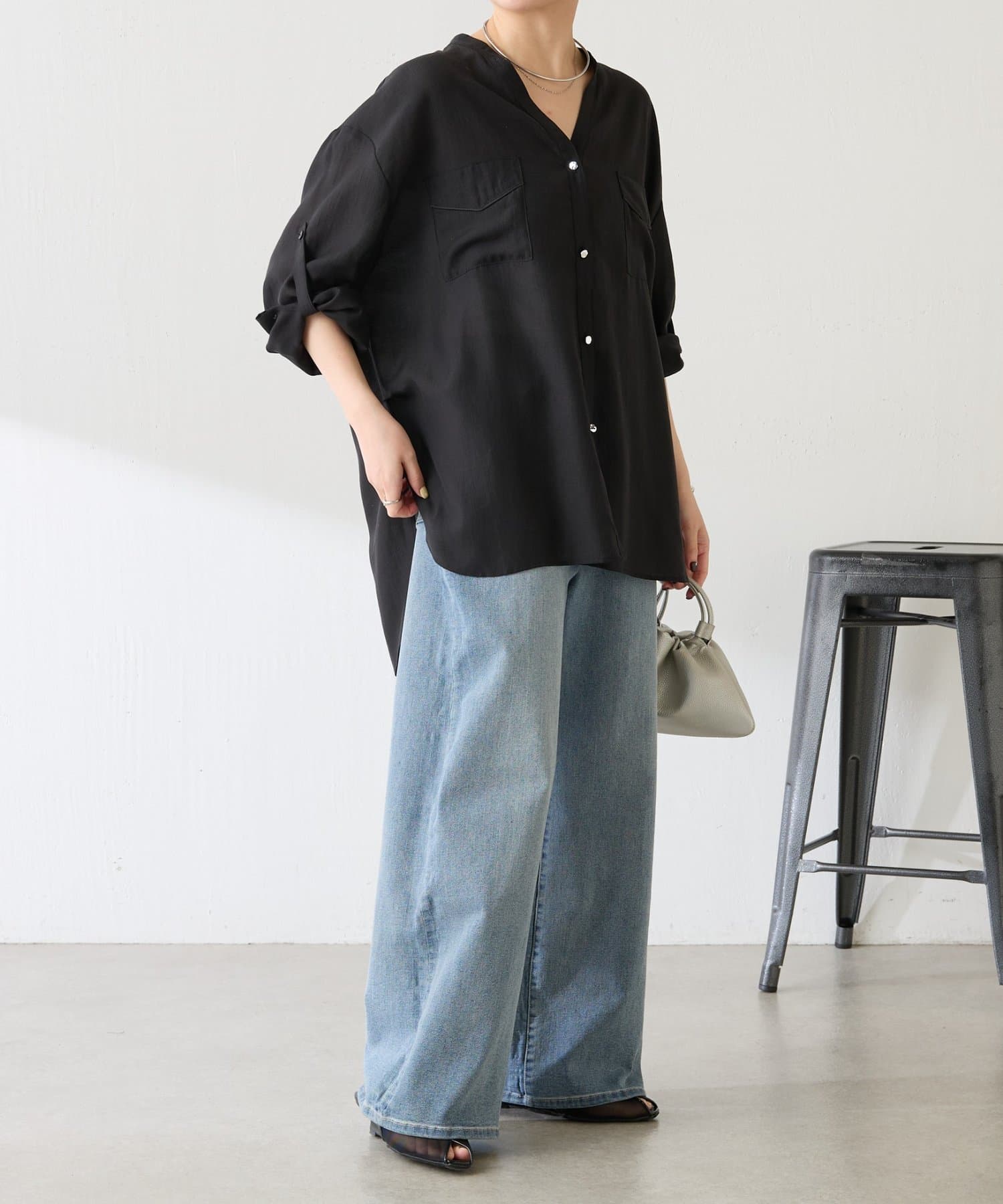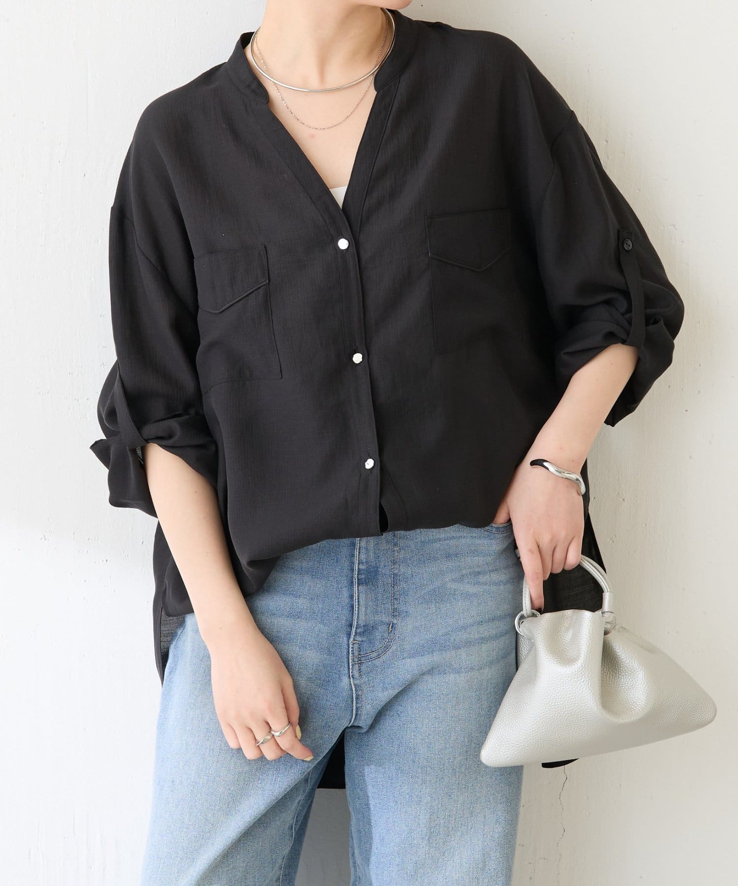 スラックスやタイトスカートと合わせて通勤にもおすすめです。スキッパーネックなのでジャケットともバランス良く決まりやすいです。