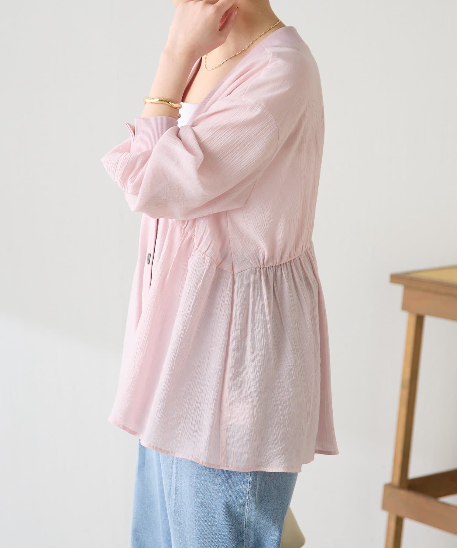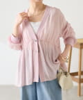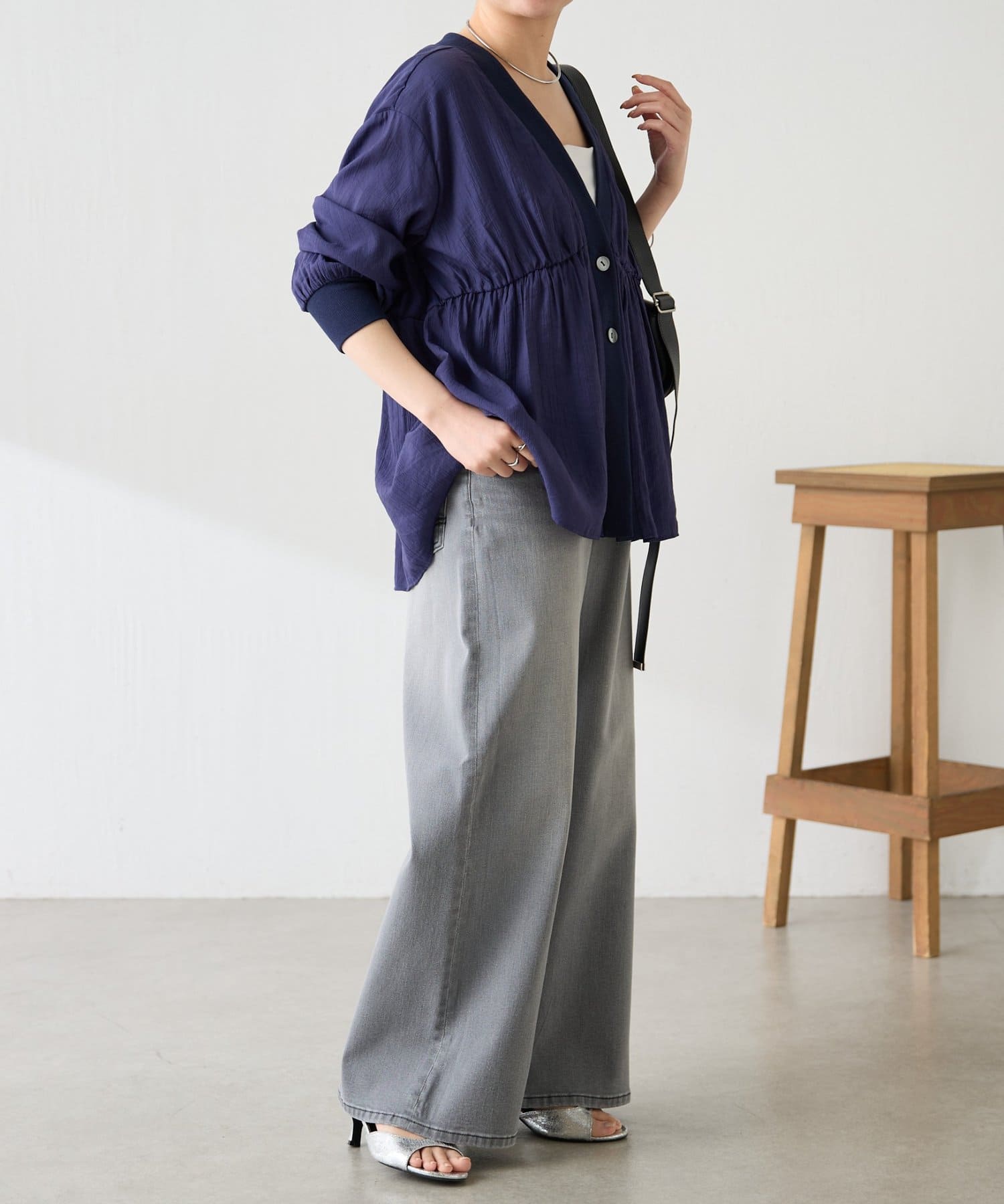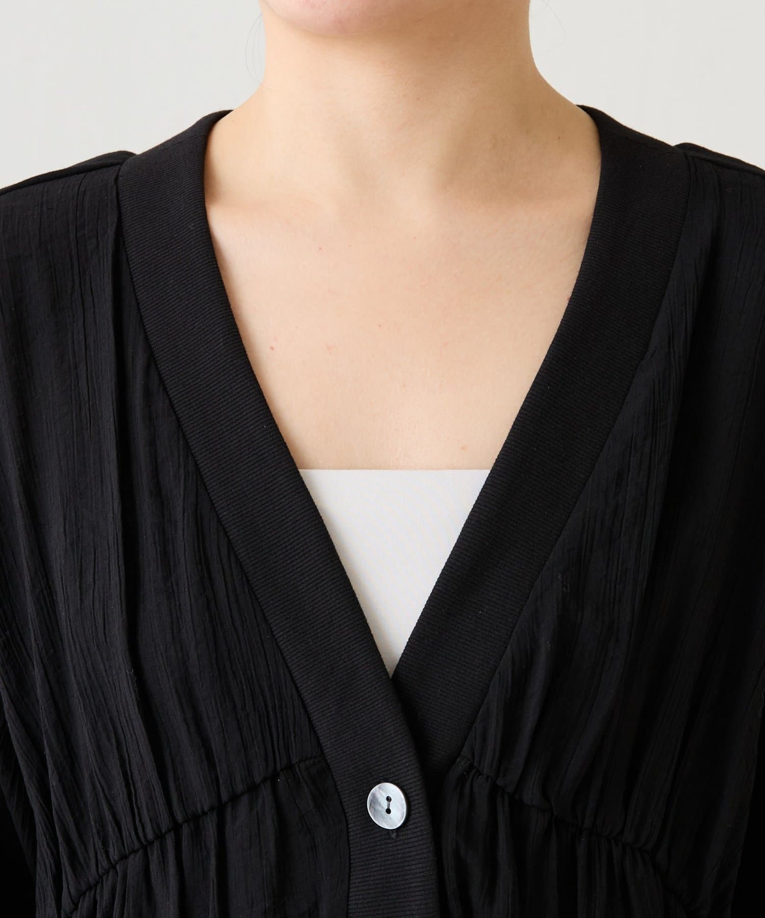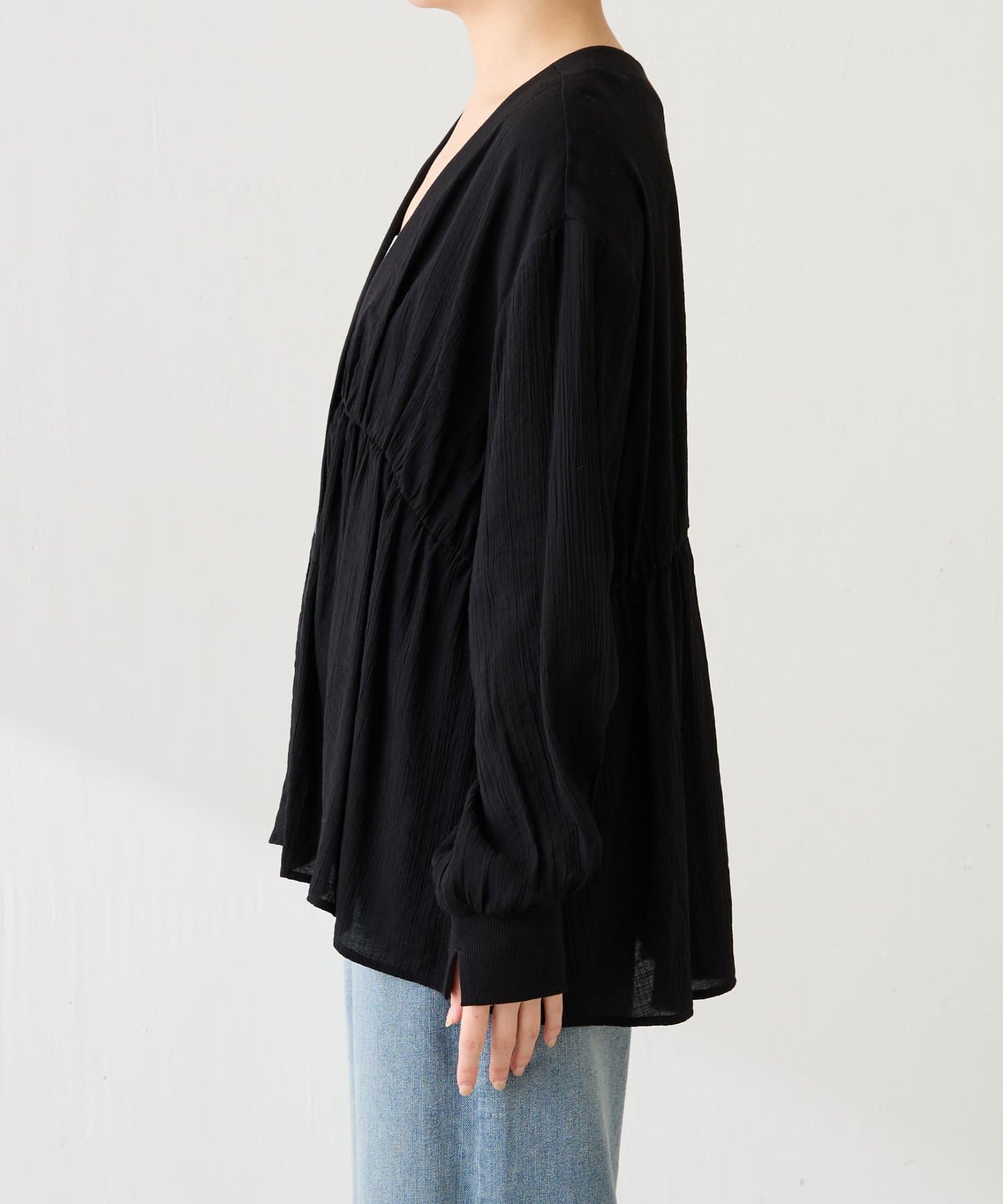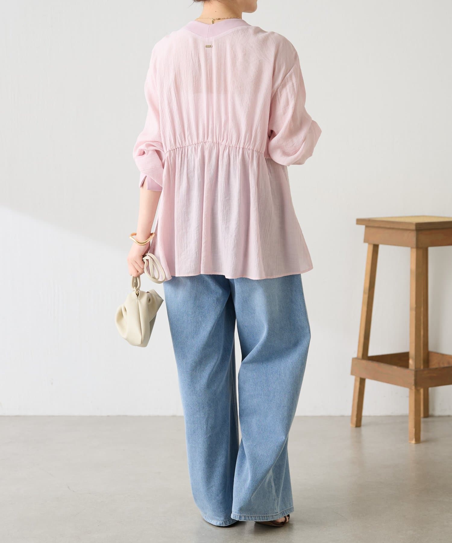 【軽量/体型カバー】ギャザー切替シアーシャツカーディガン