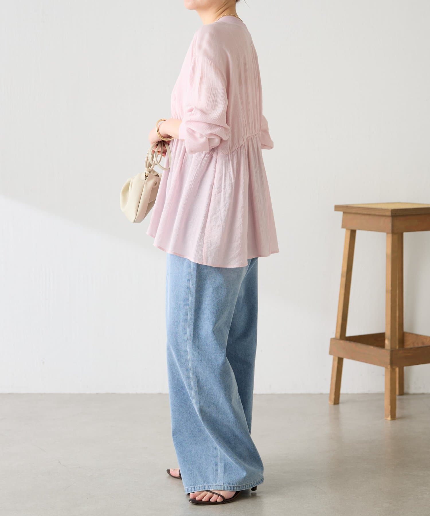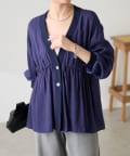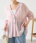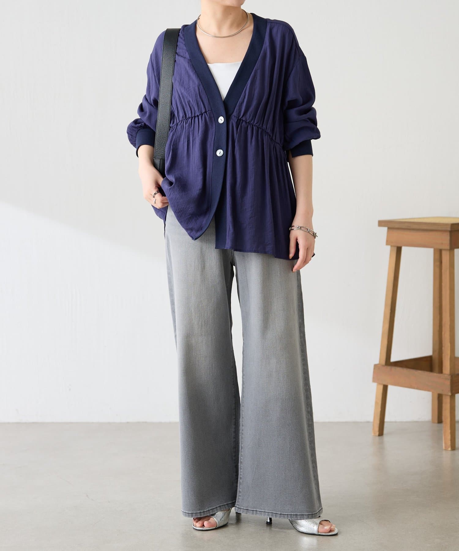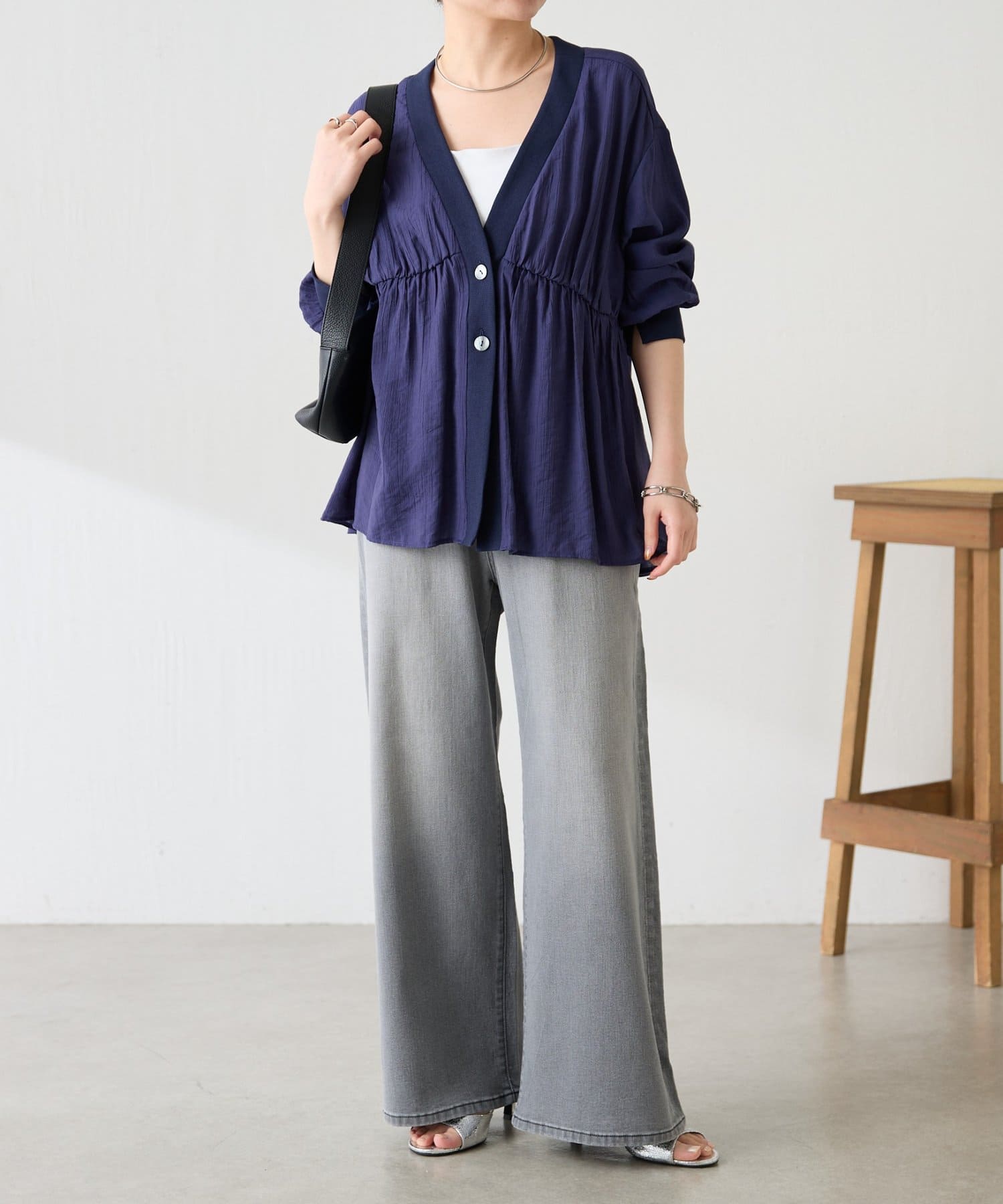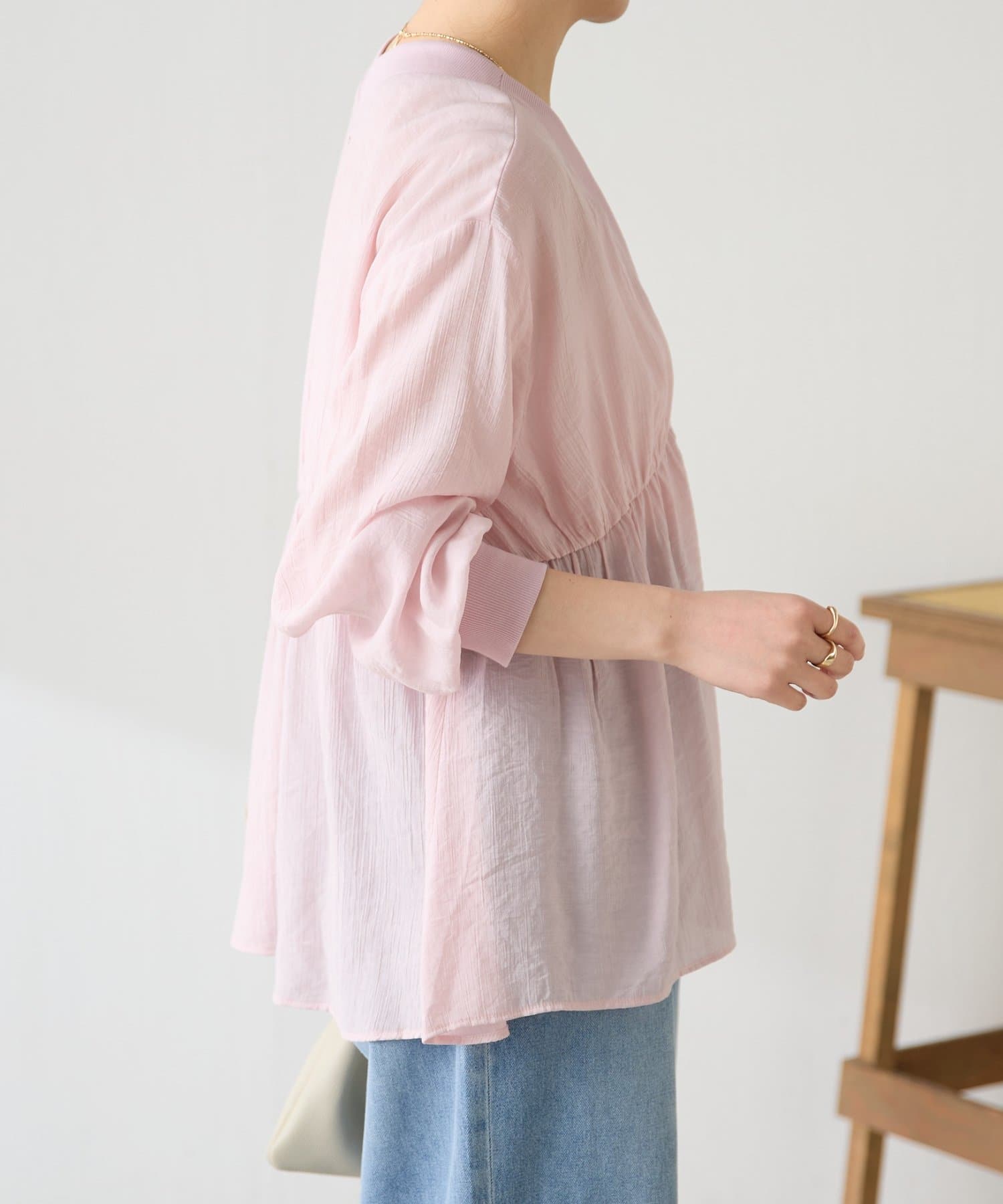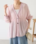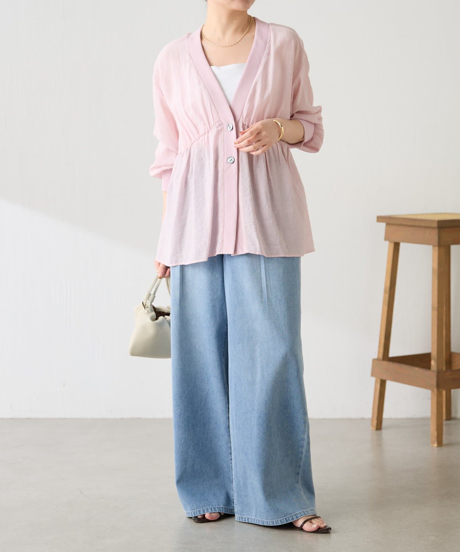 【軽量/体型カバー】ギャザー切替シアーシャツカーディガン