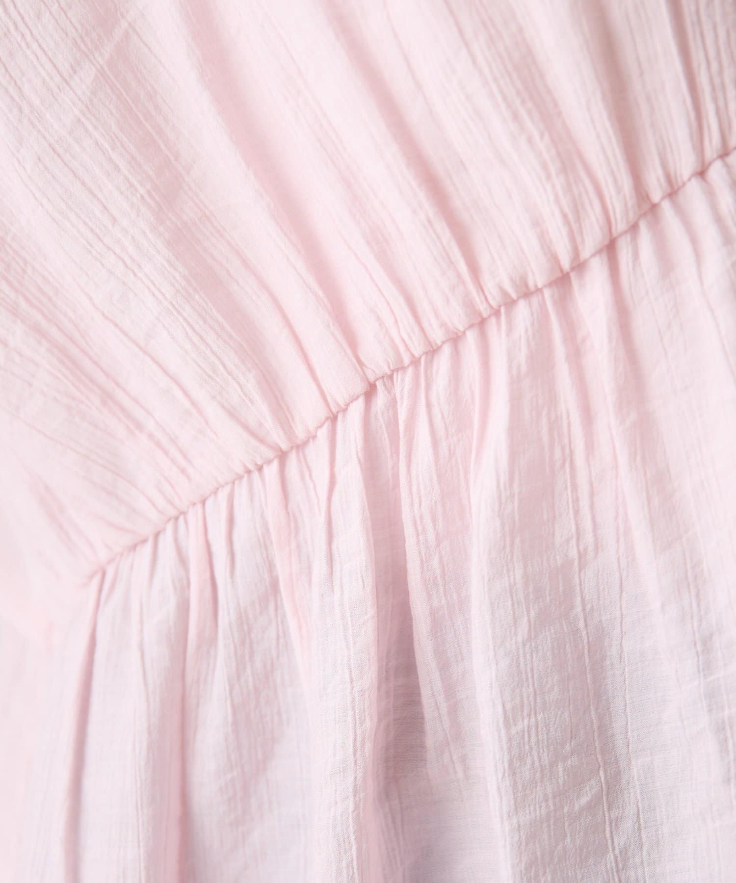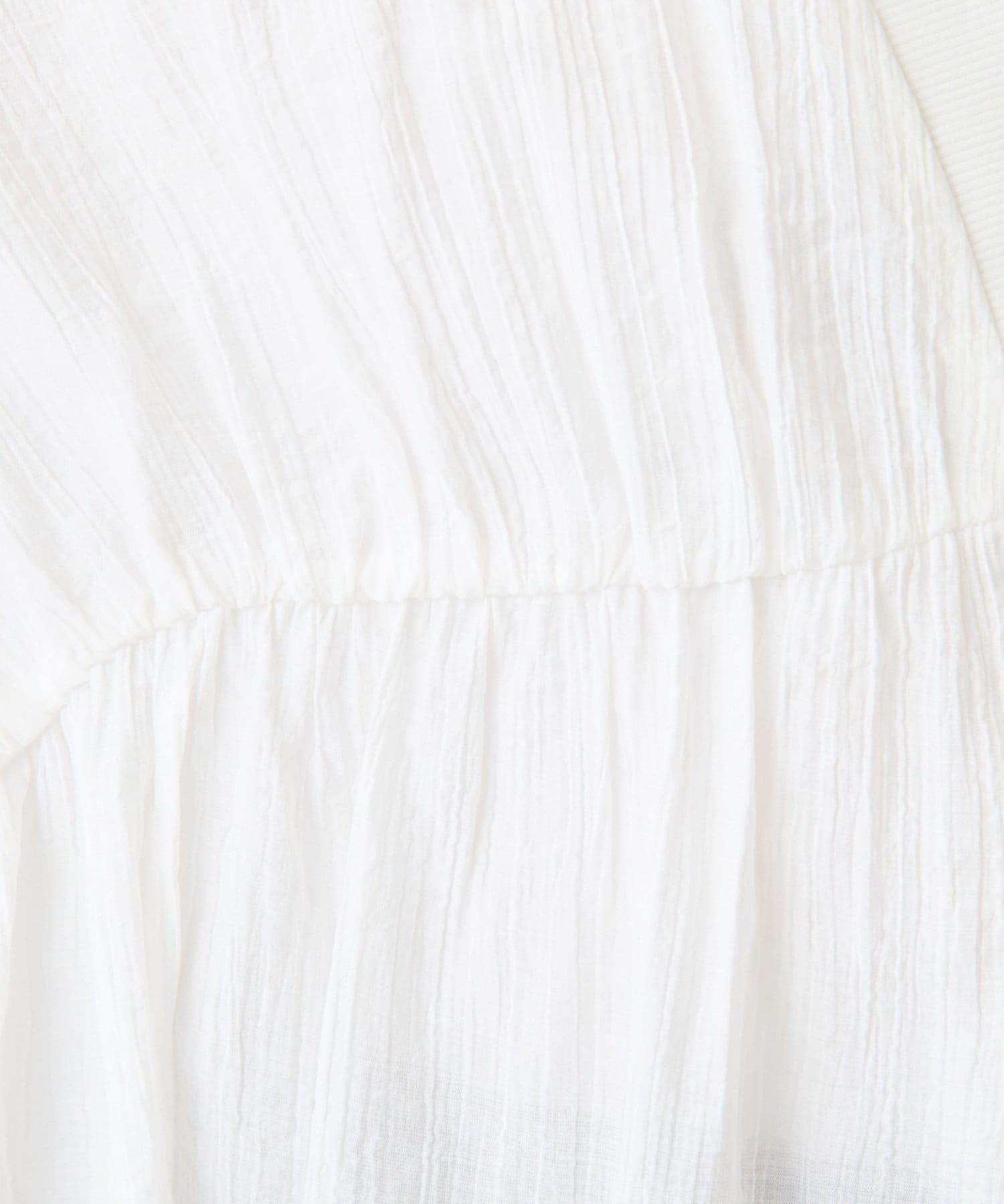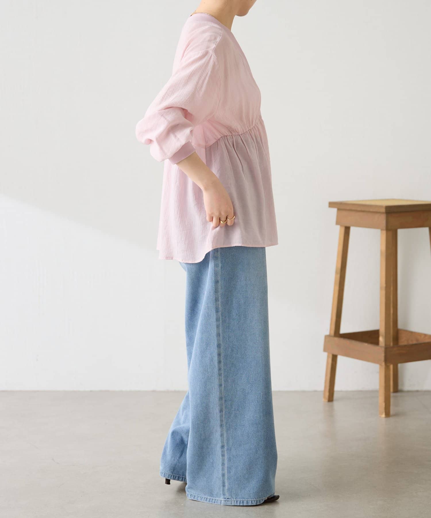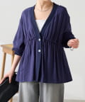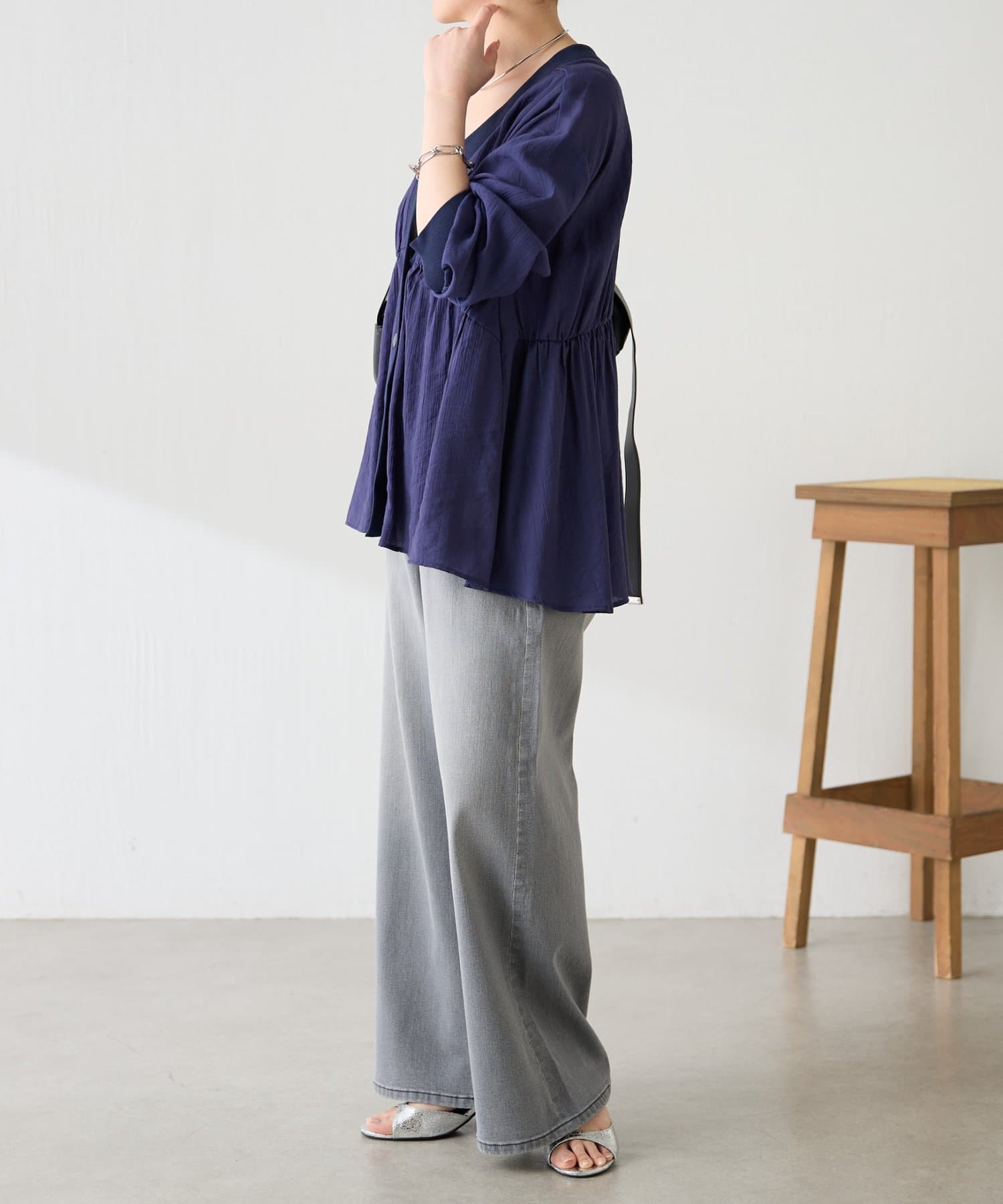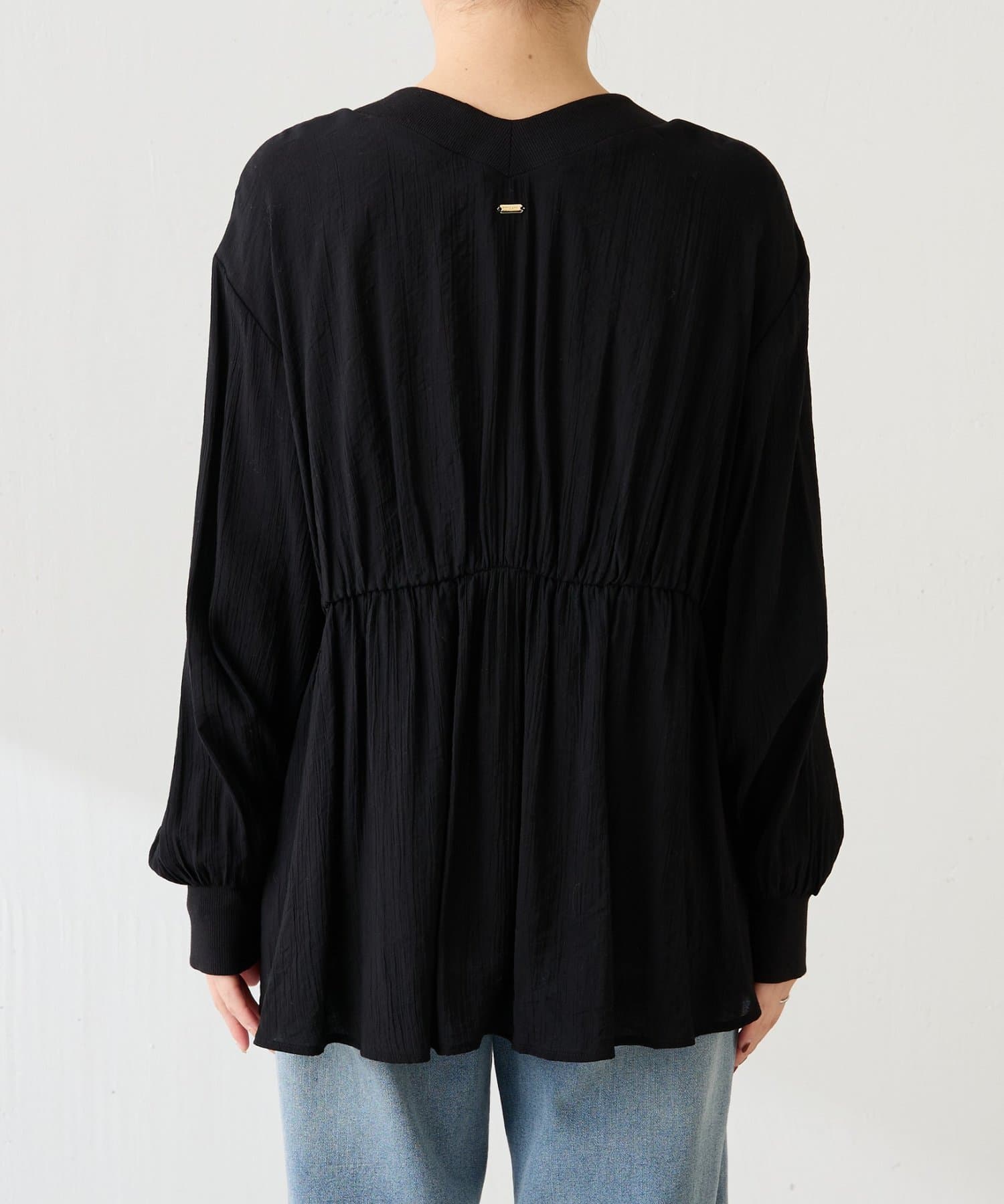 【軽量/体型カバー】ギャザー切替シアーシャツカーディガン