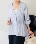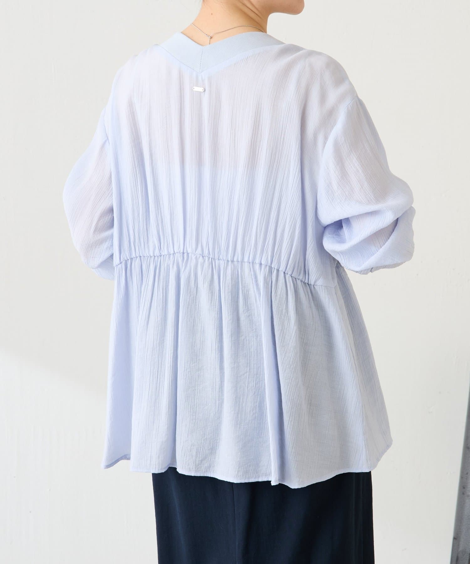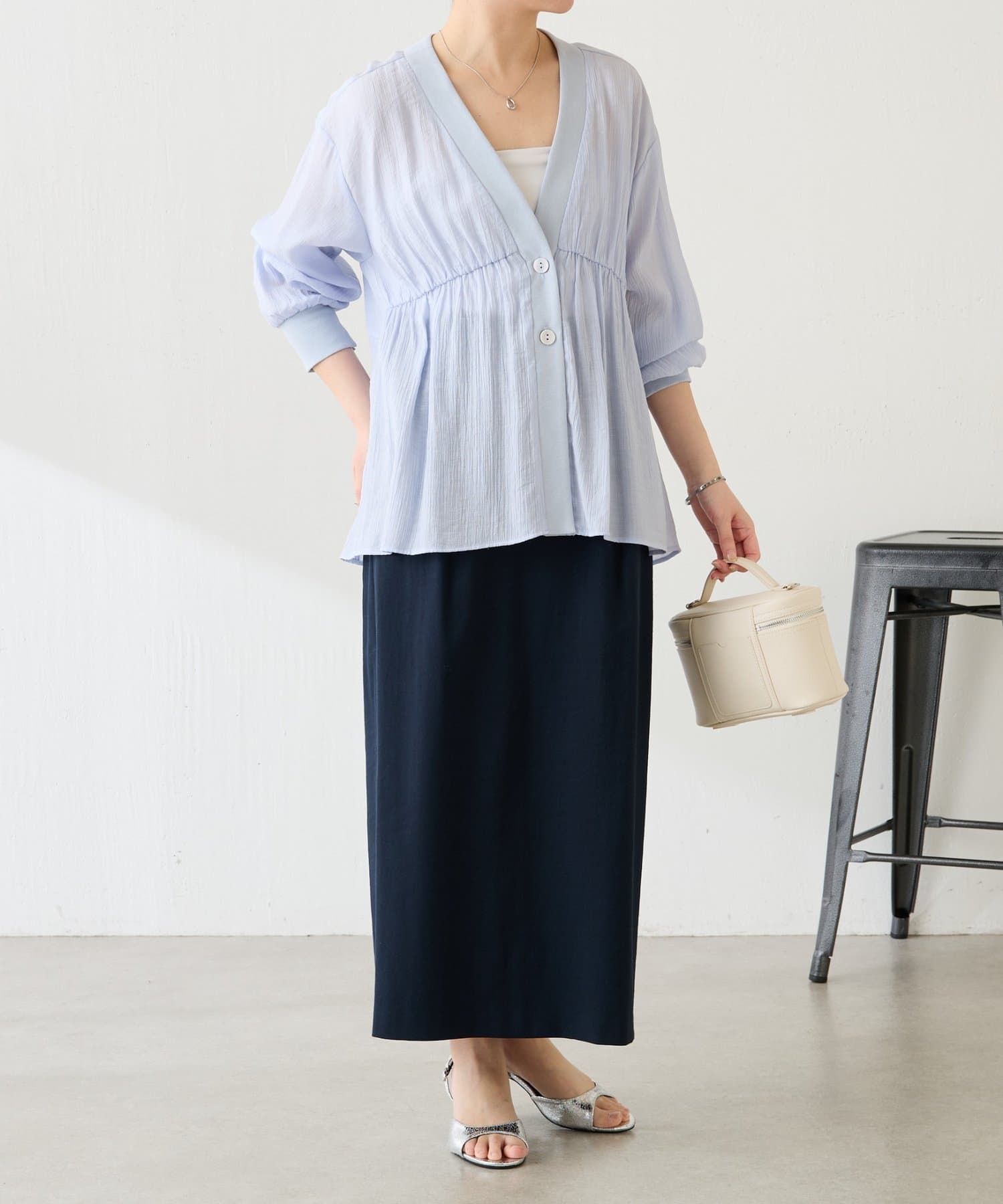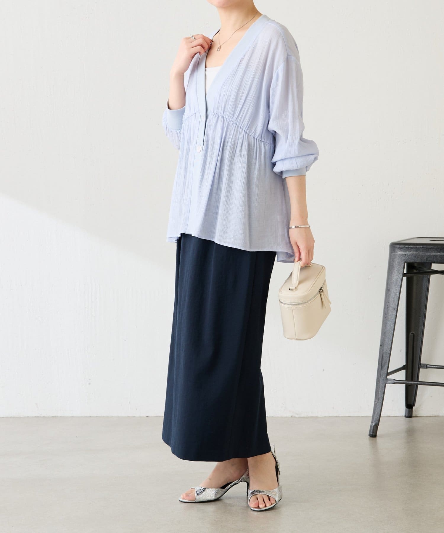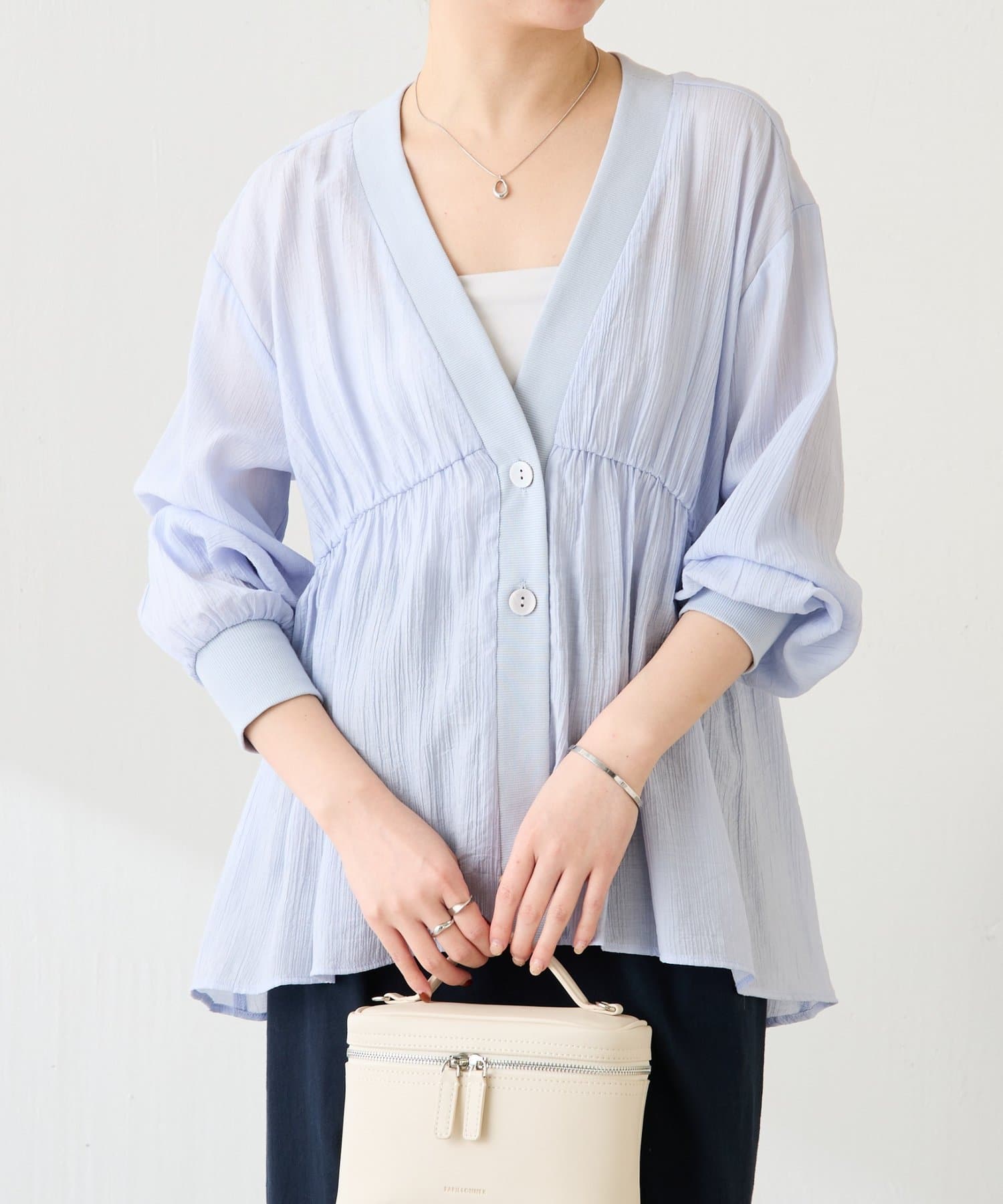 【軽量/体型カバー】ギャザー切替シアーシャツカーディガン