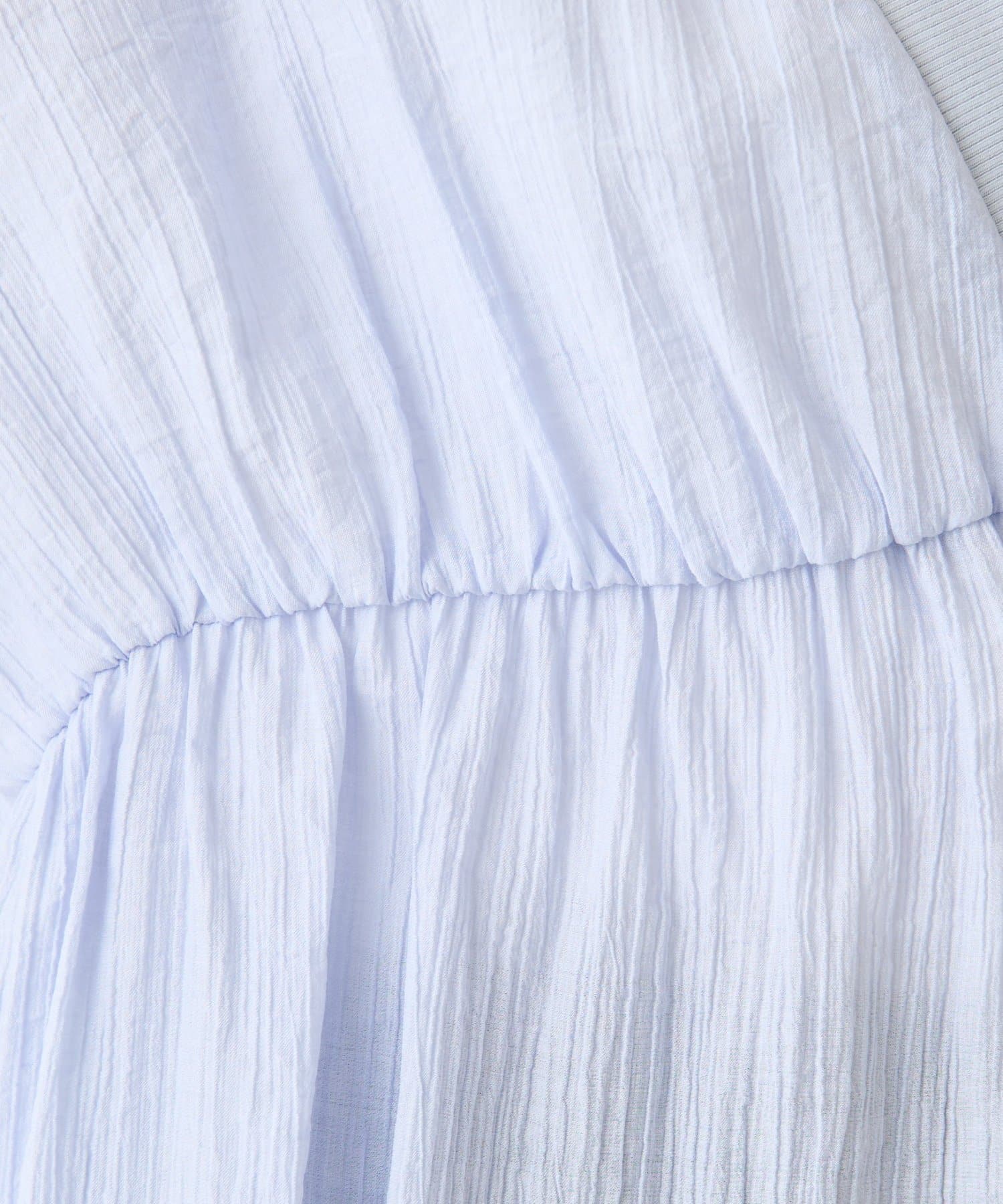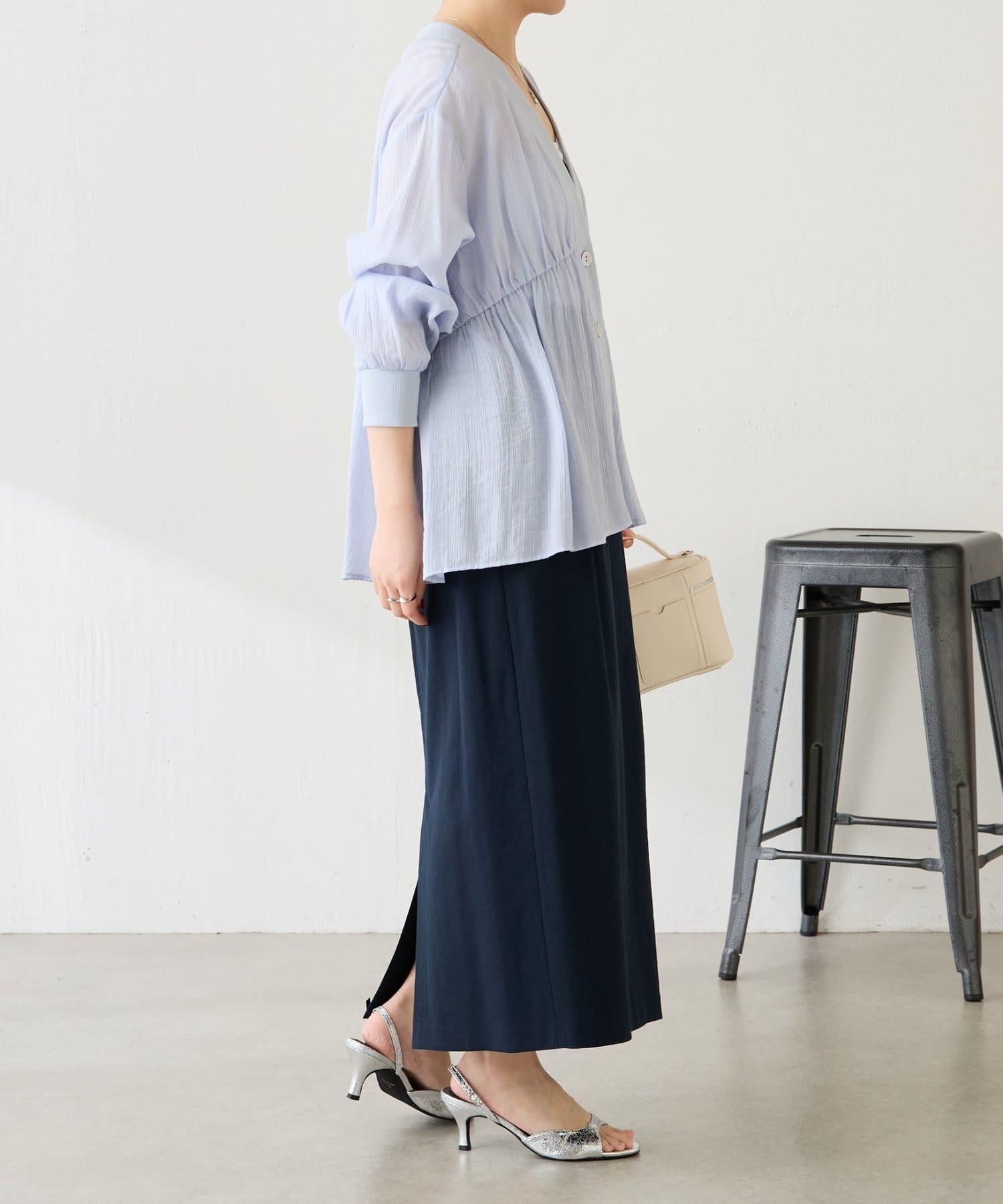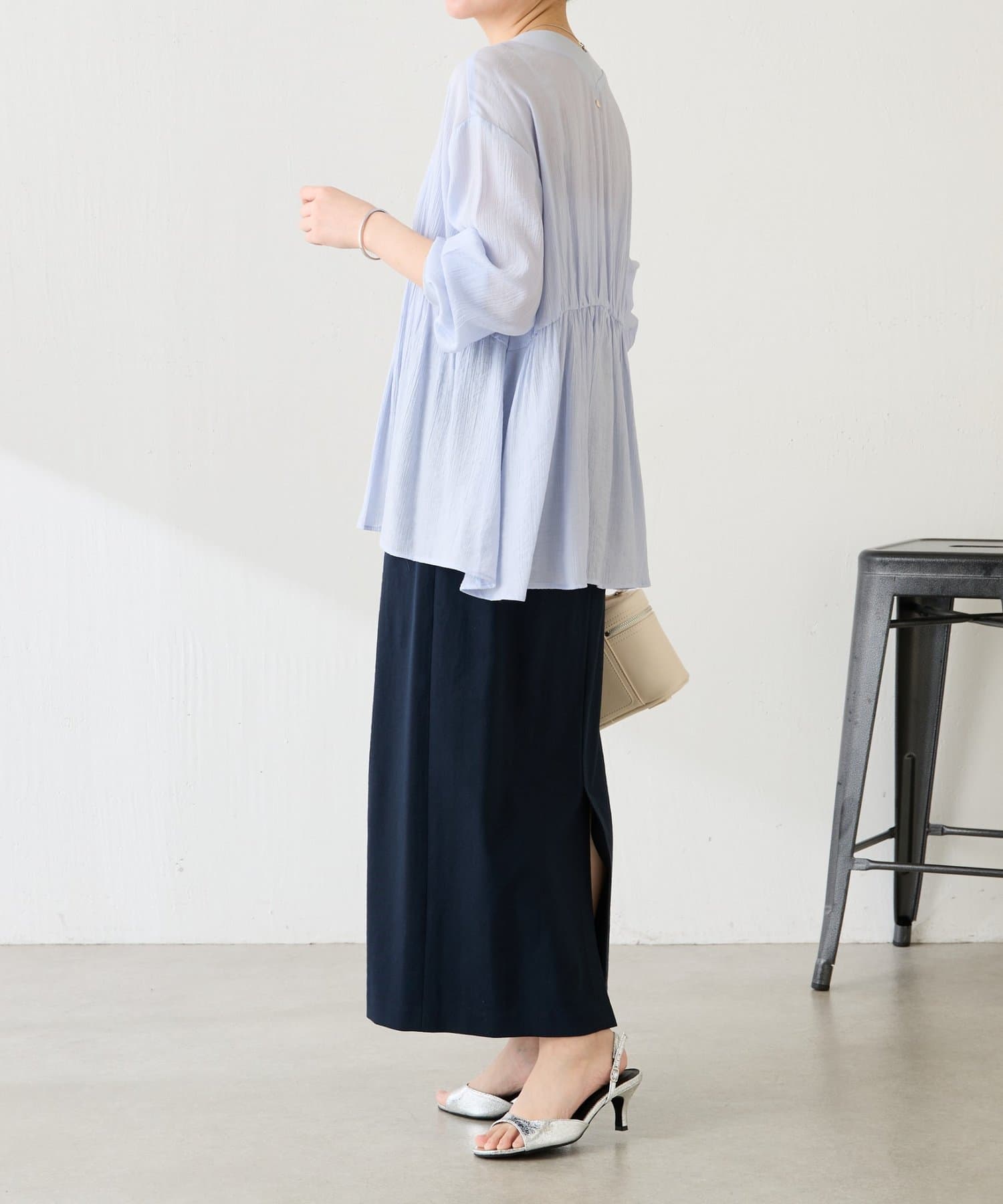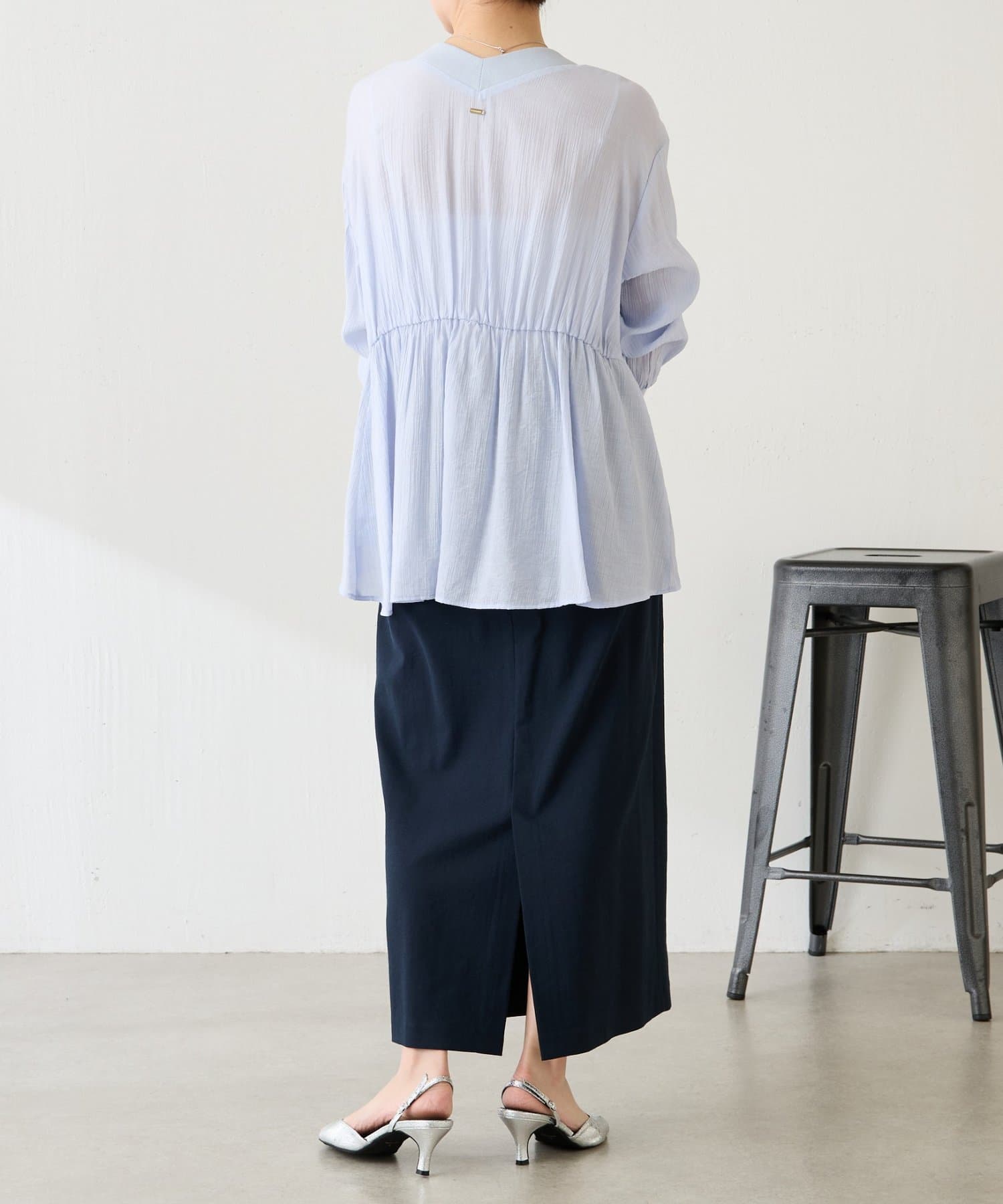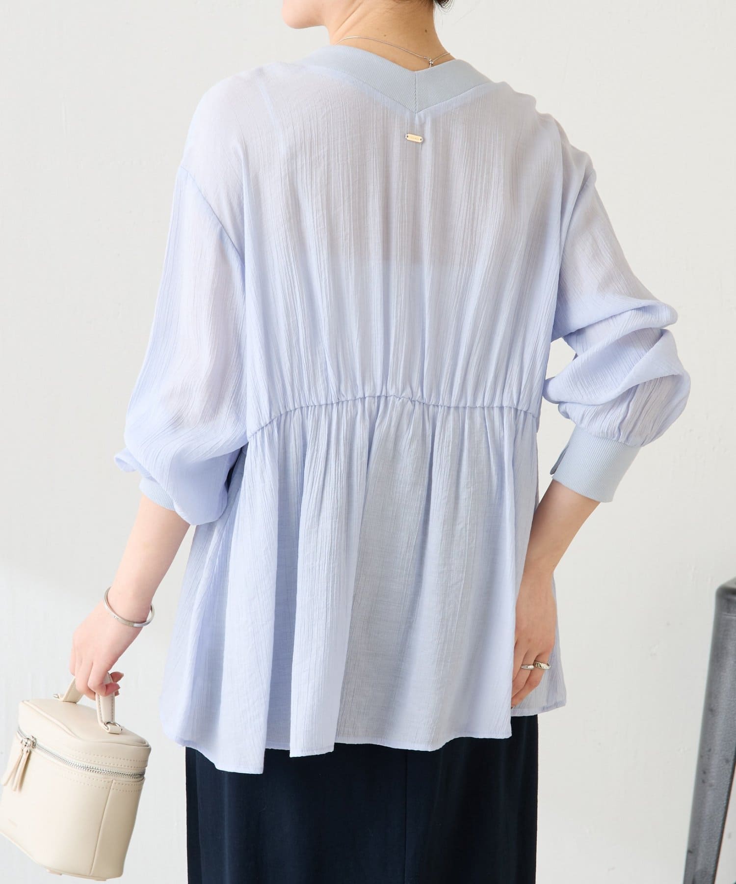 【軽量/体型カバー】ギャザー切替シアーシャツカーディガン