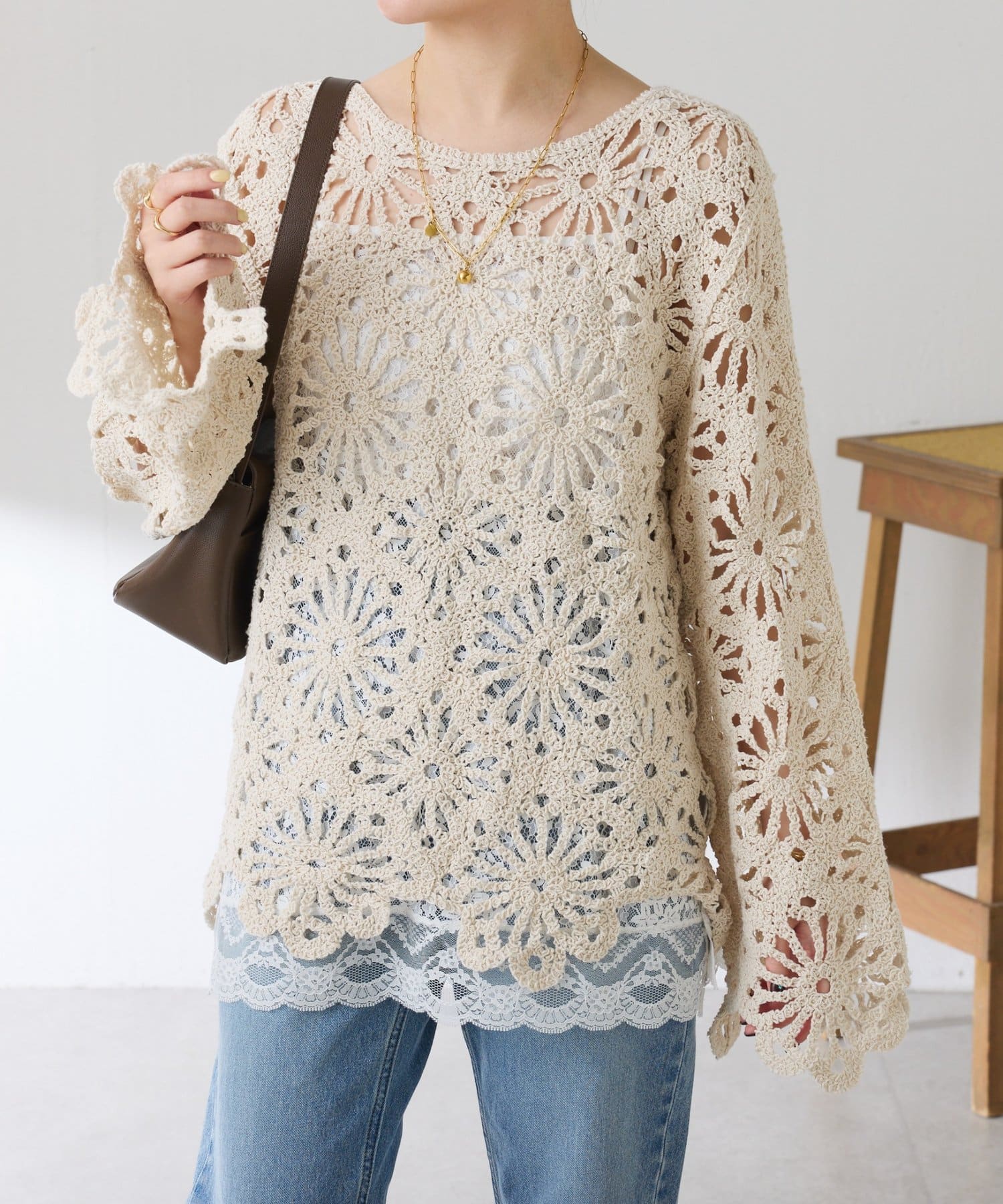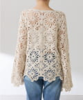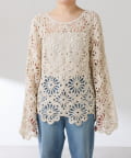 【シーズンムードアップ】フラワー柄クロシェニット