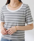 【大人も着やすい】サーマルボーダーハーフスリーブ