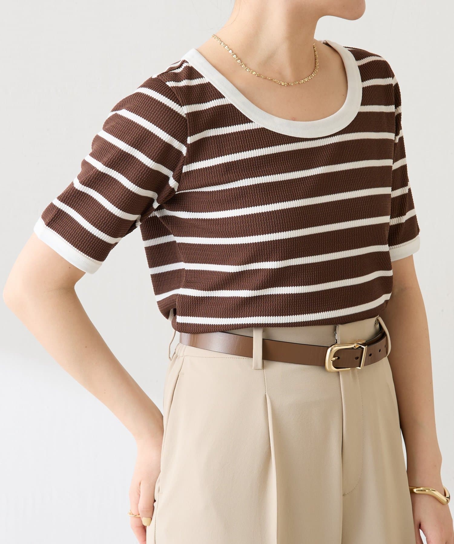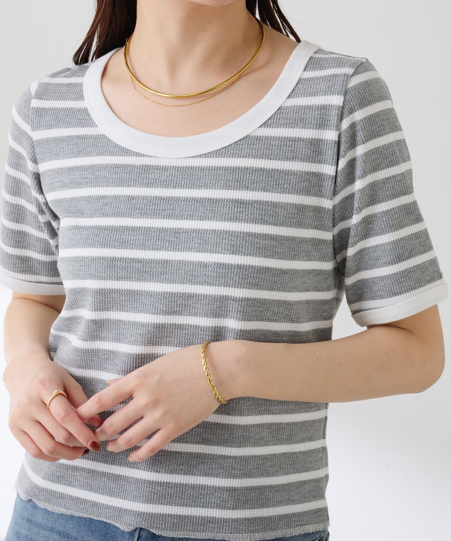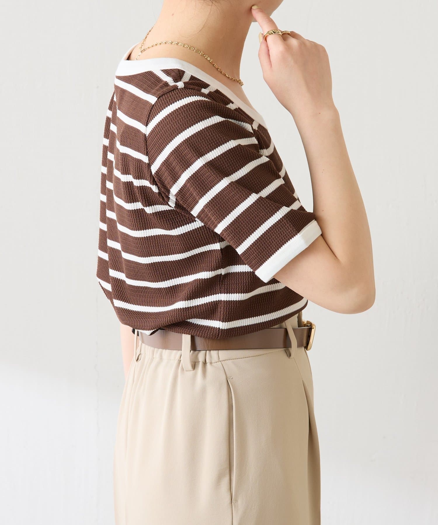 TOP > COLLAGE GALLARDAGALANTE > レディース > トップス > Tシャツ/カットソー > 【大人も着やすい】サーマルボーダーハーフスリーブ