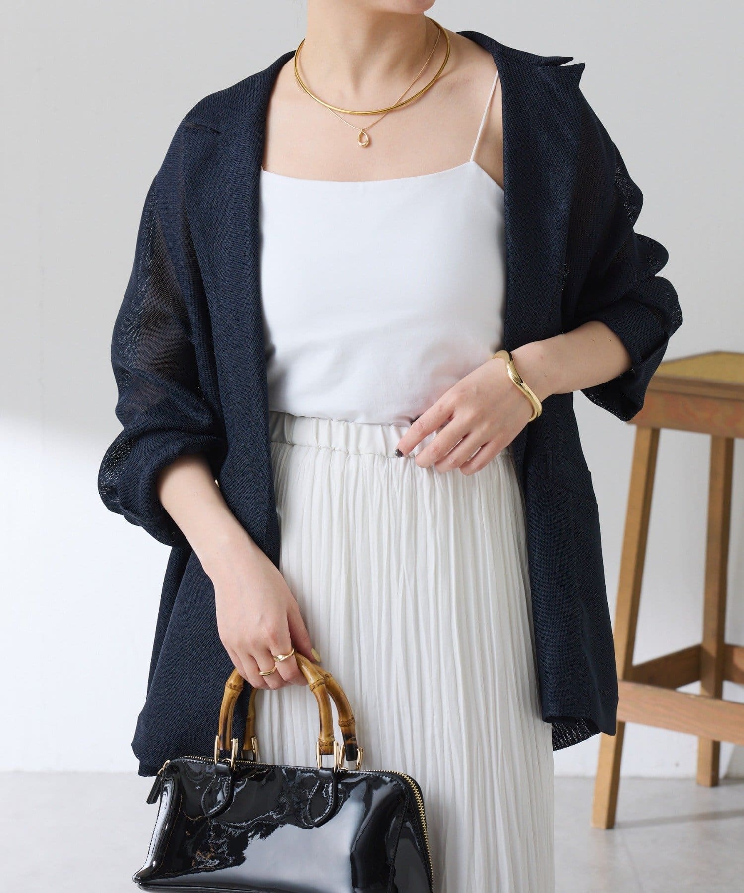 ・華奢な肩紐が女性らしい雰囲気で着られて抜け感を演出◎