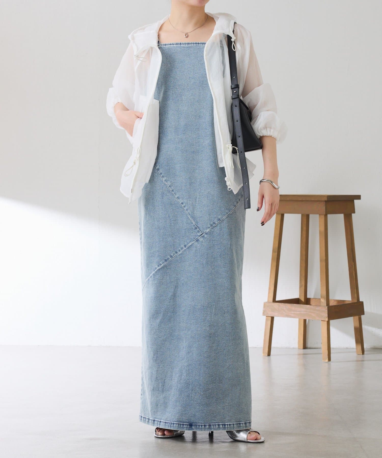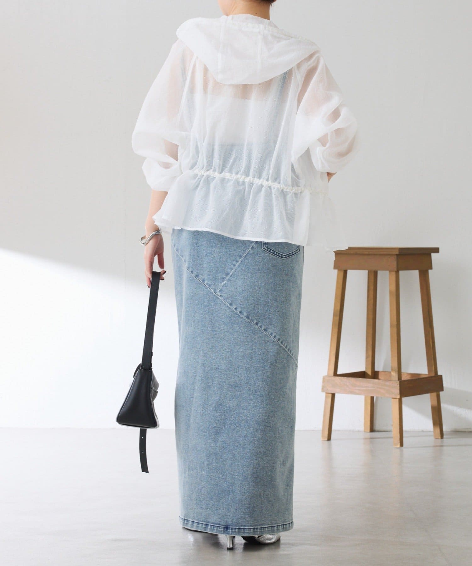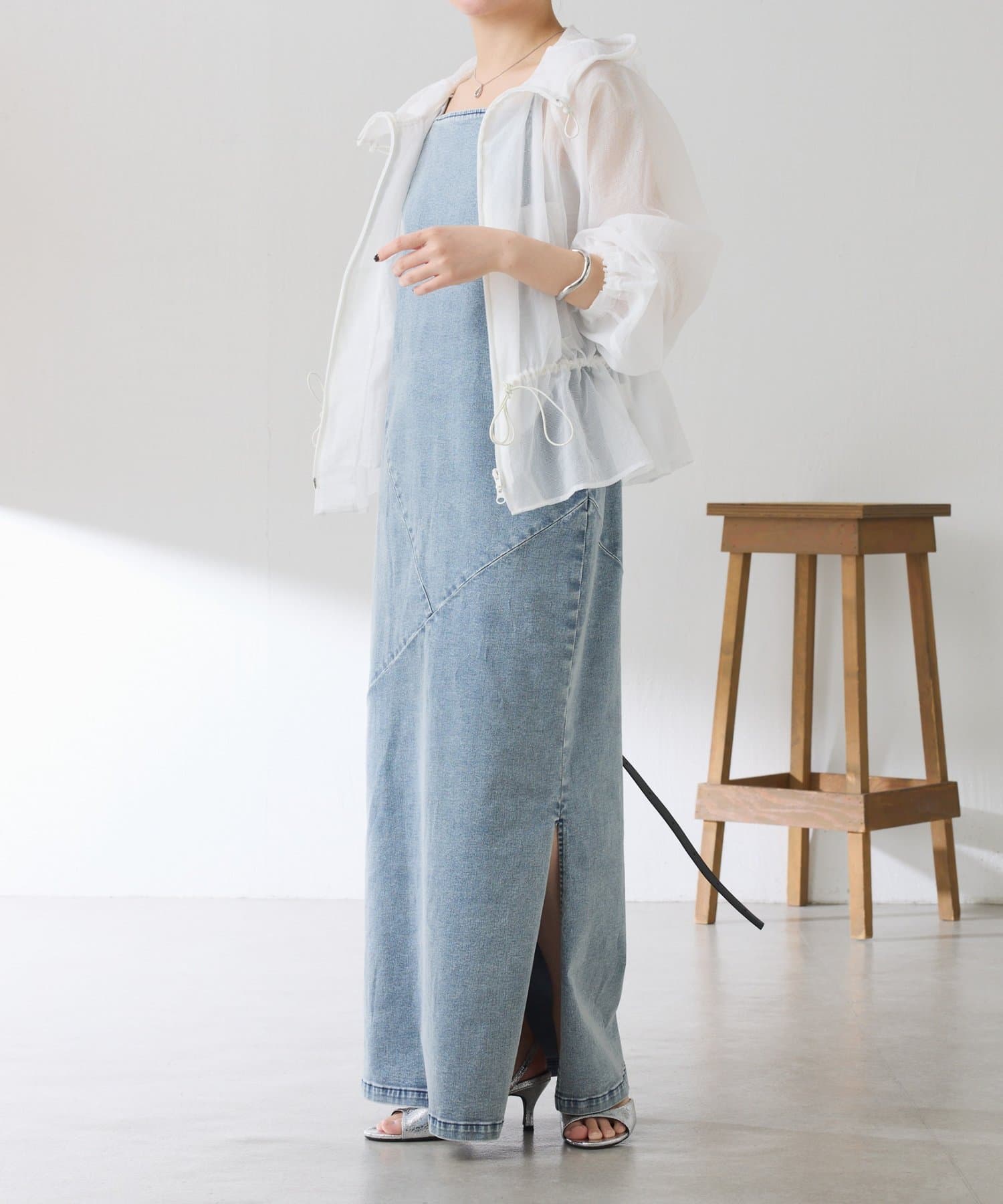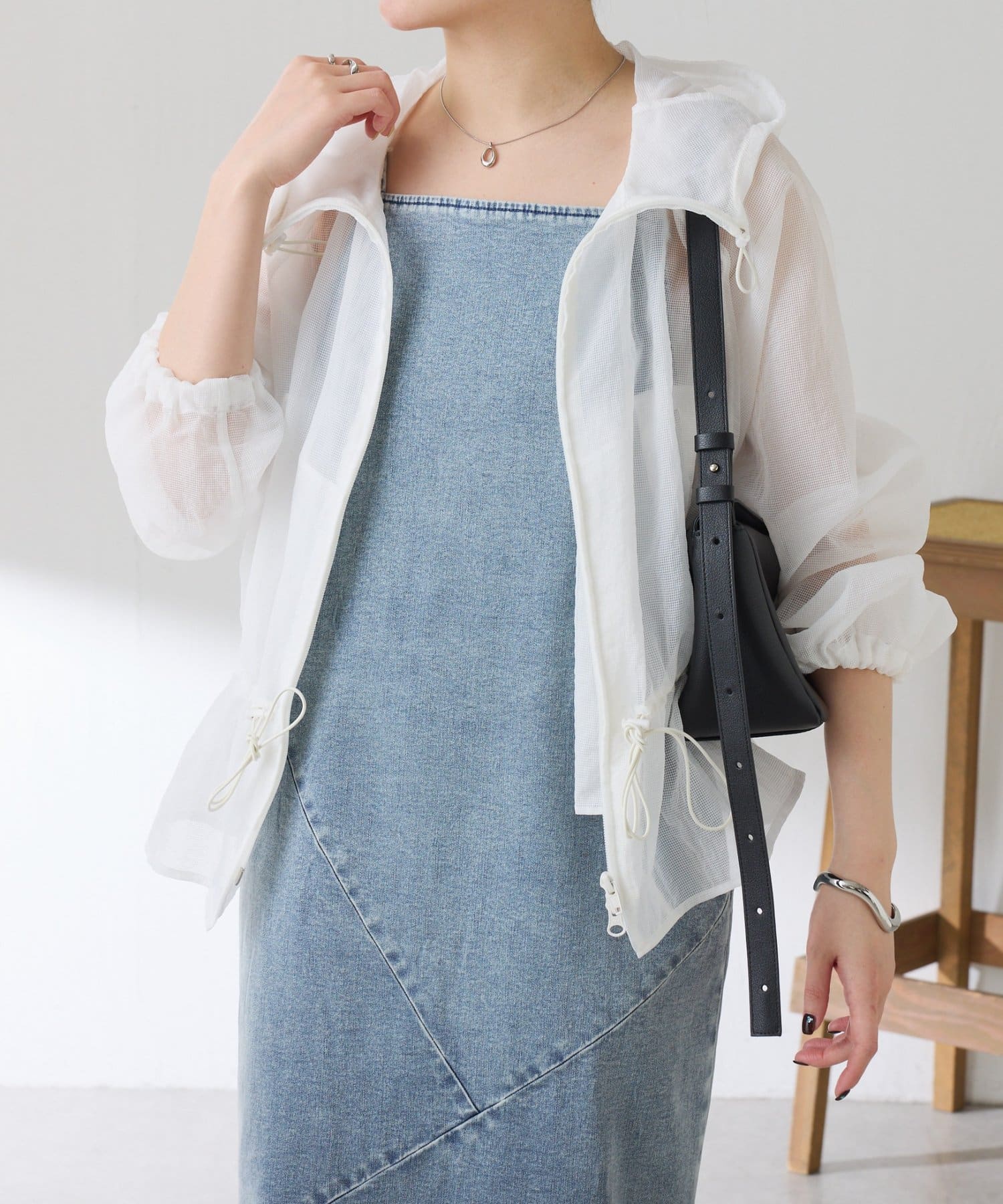 ・ファスナーは逆開で下だけ開けて抜け感を出すのもおすすめです。