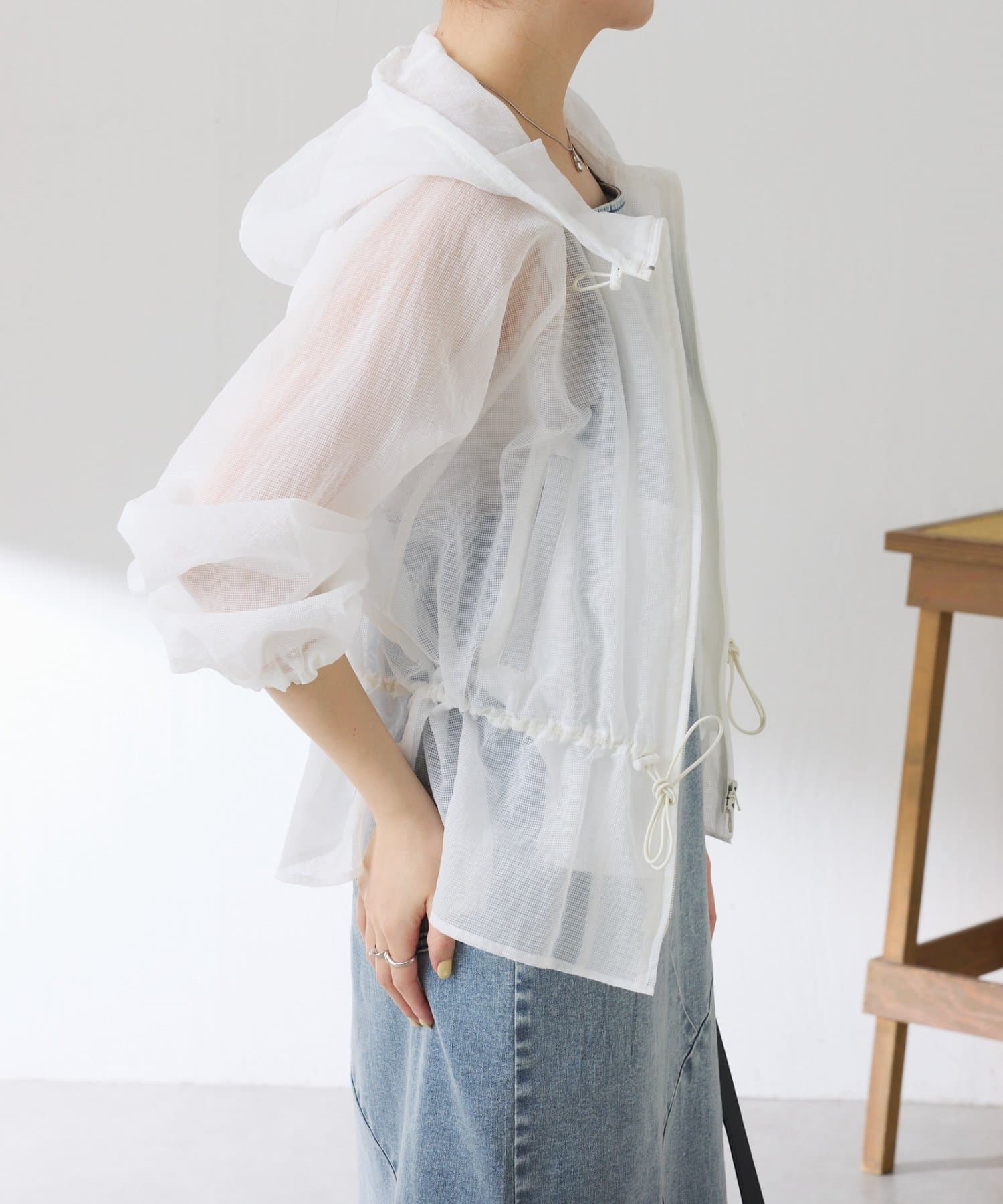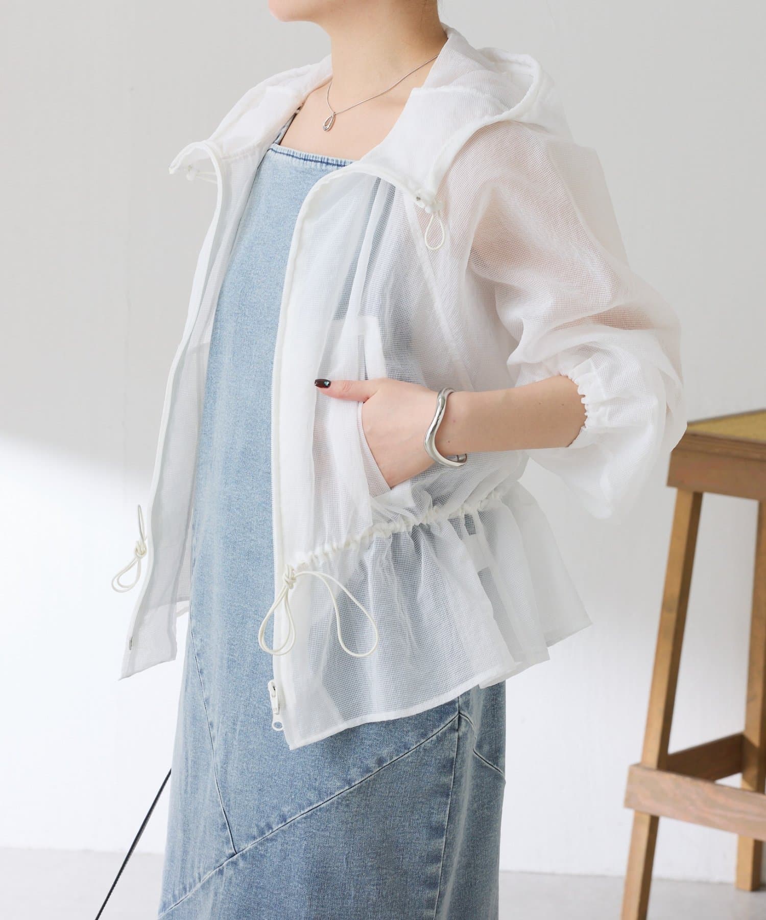 コーデにメリハリが生まれるドロスト付きフーデッドブルゾン
