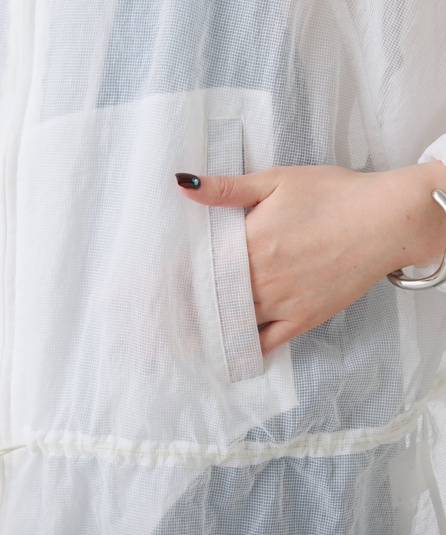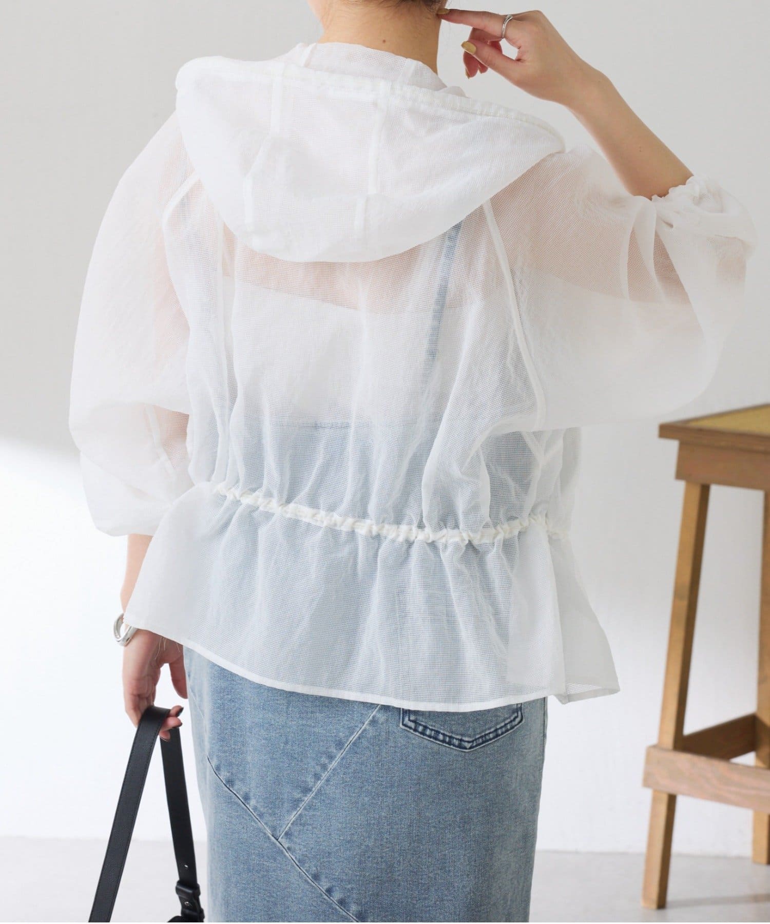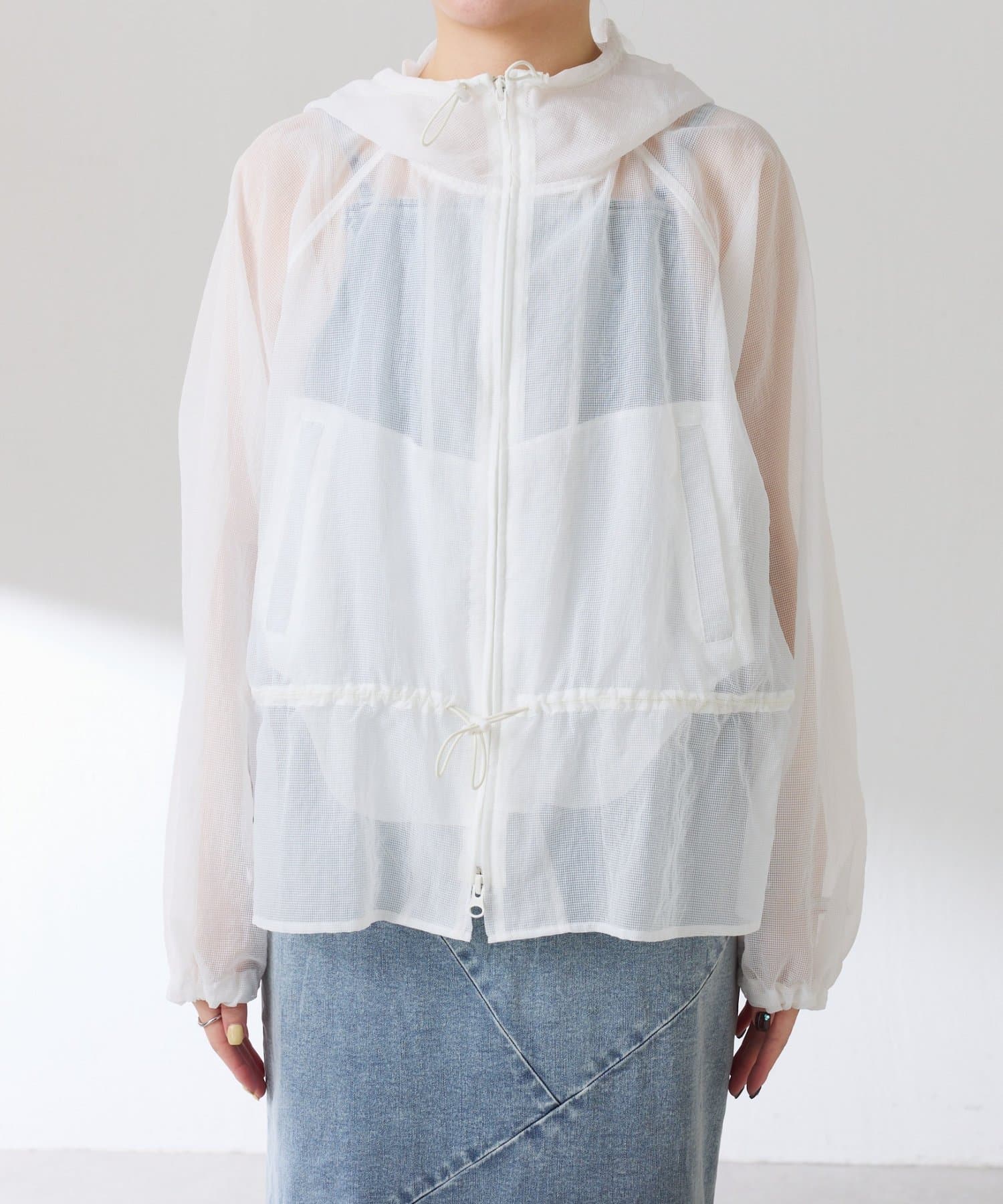 ・シアーのリップストップ素材を使用した軽く羽織れるフーデッドブルゾン。