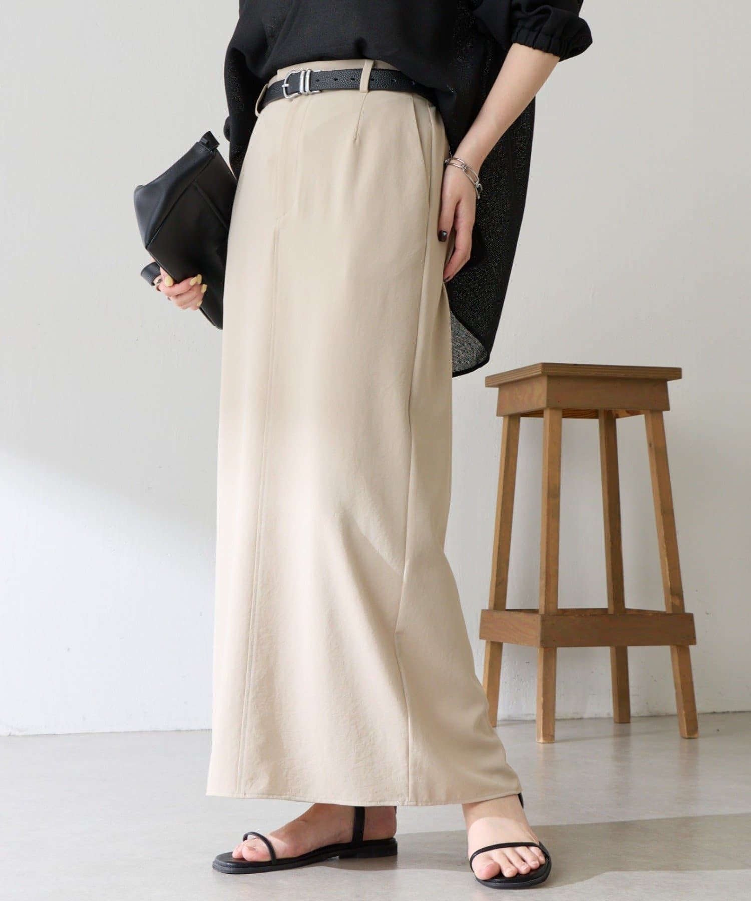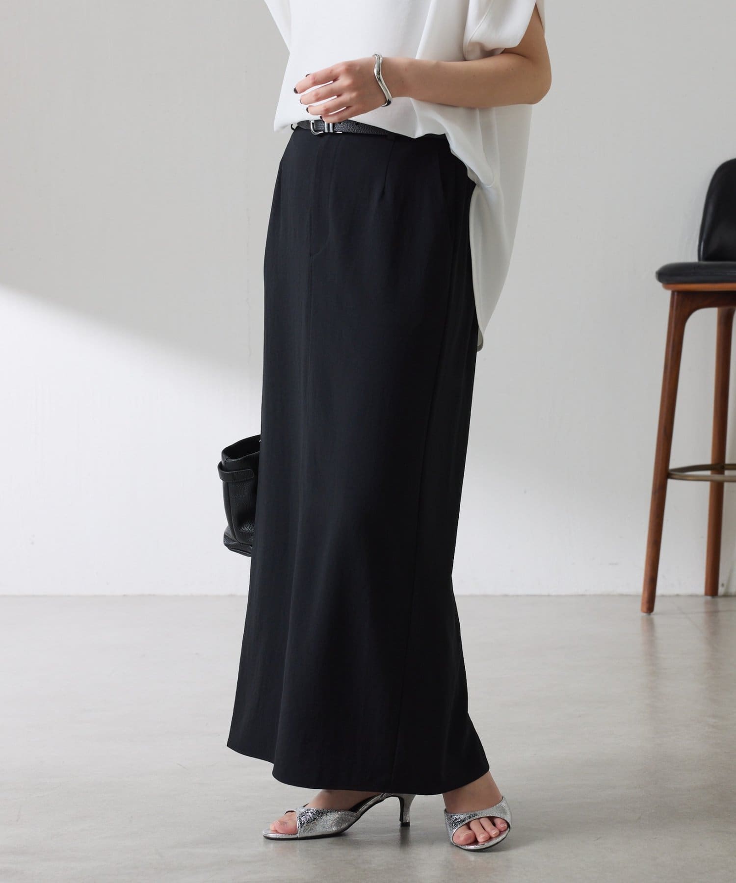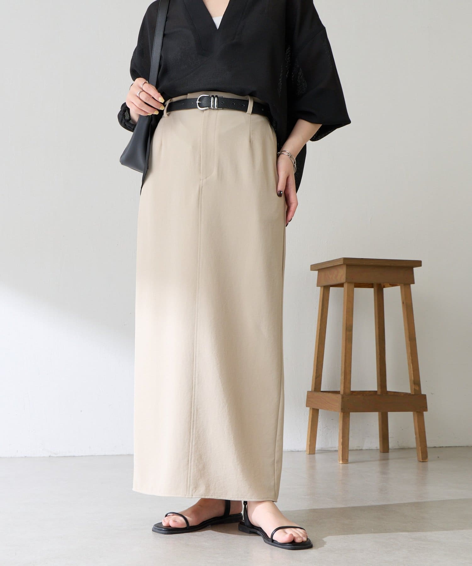 ・オンオフ問わず万能に使えるシンプルなタイトスカート。