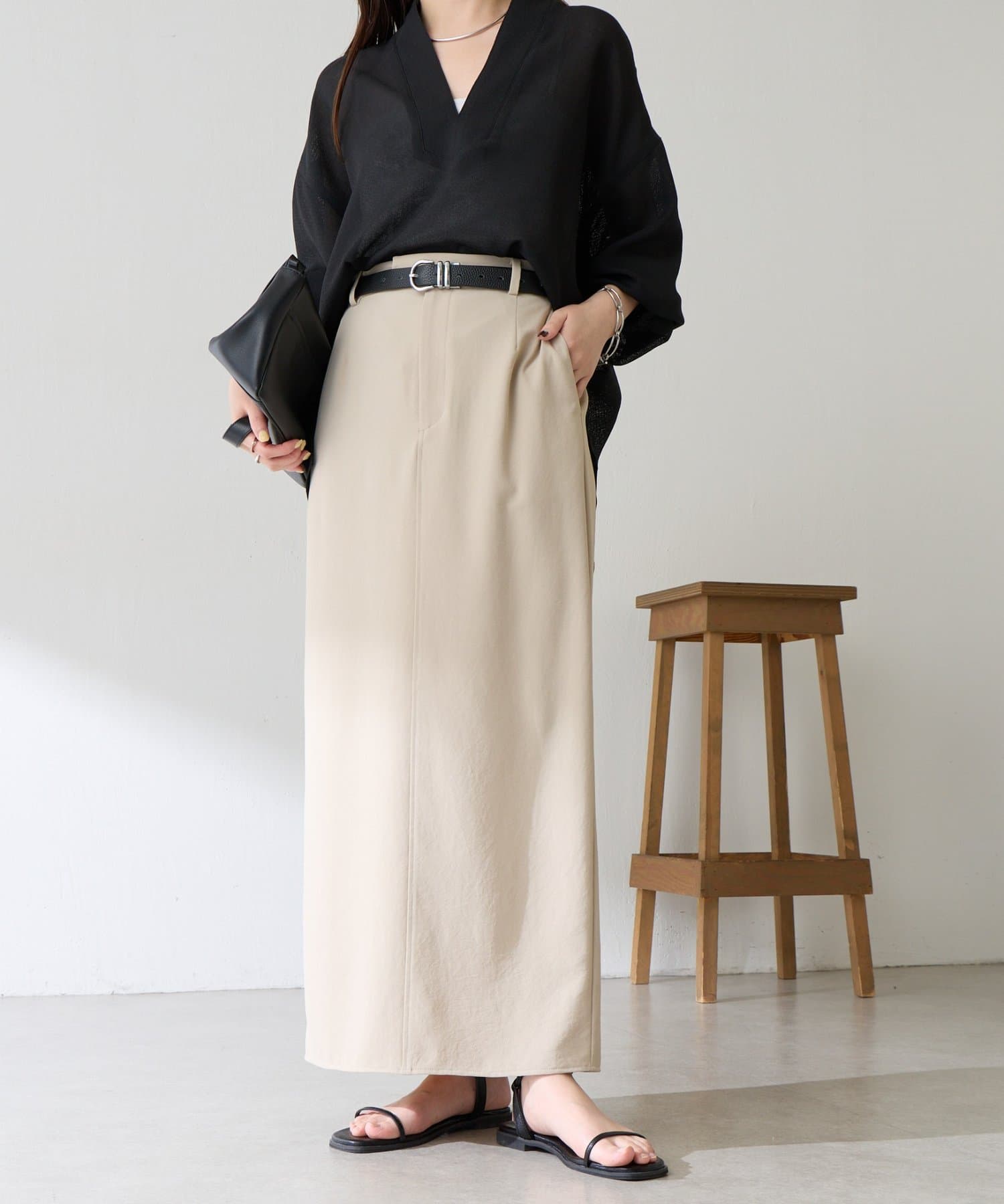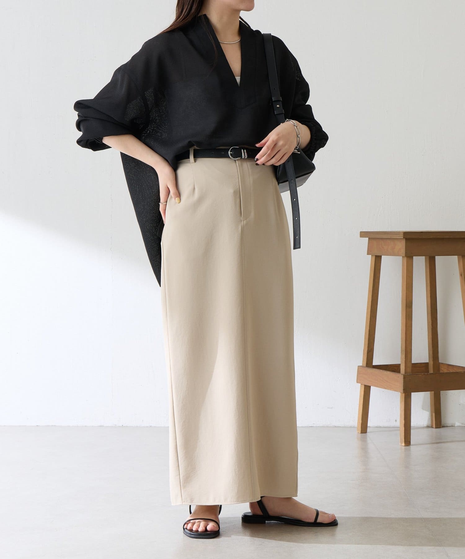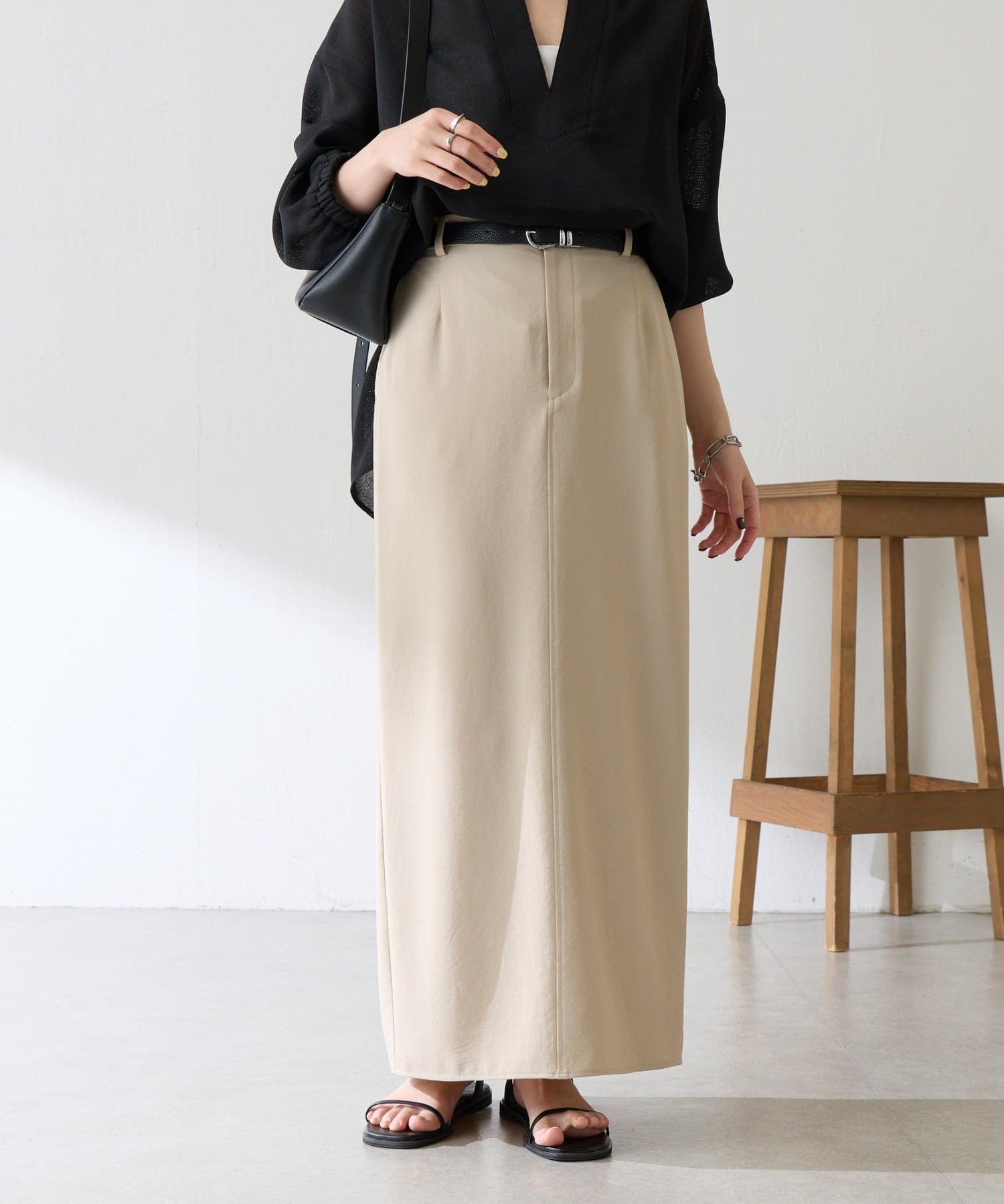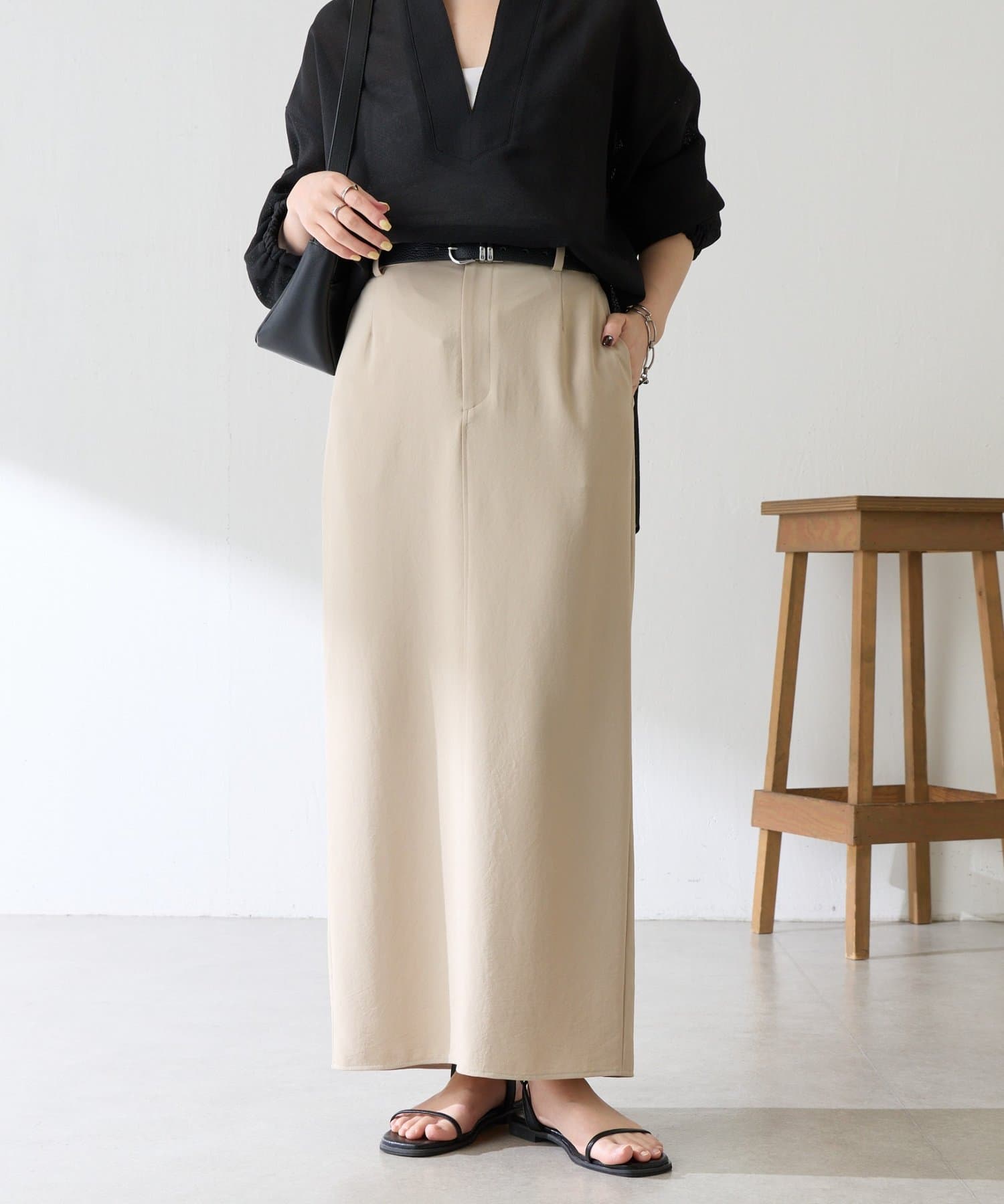 ・オンオフ問わず万能に使えるシンプルなタイトスカート。