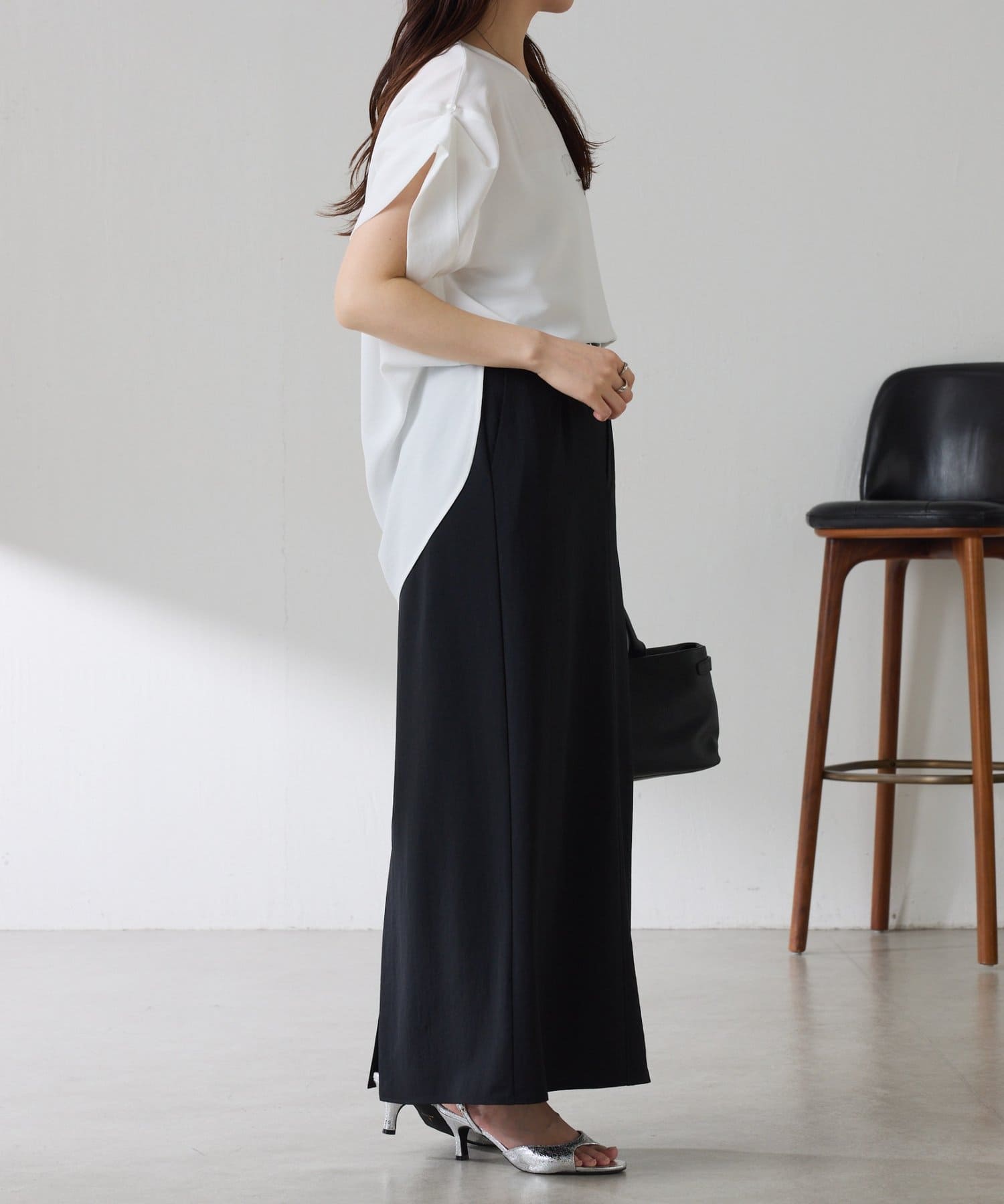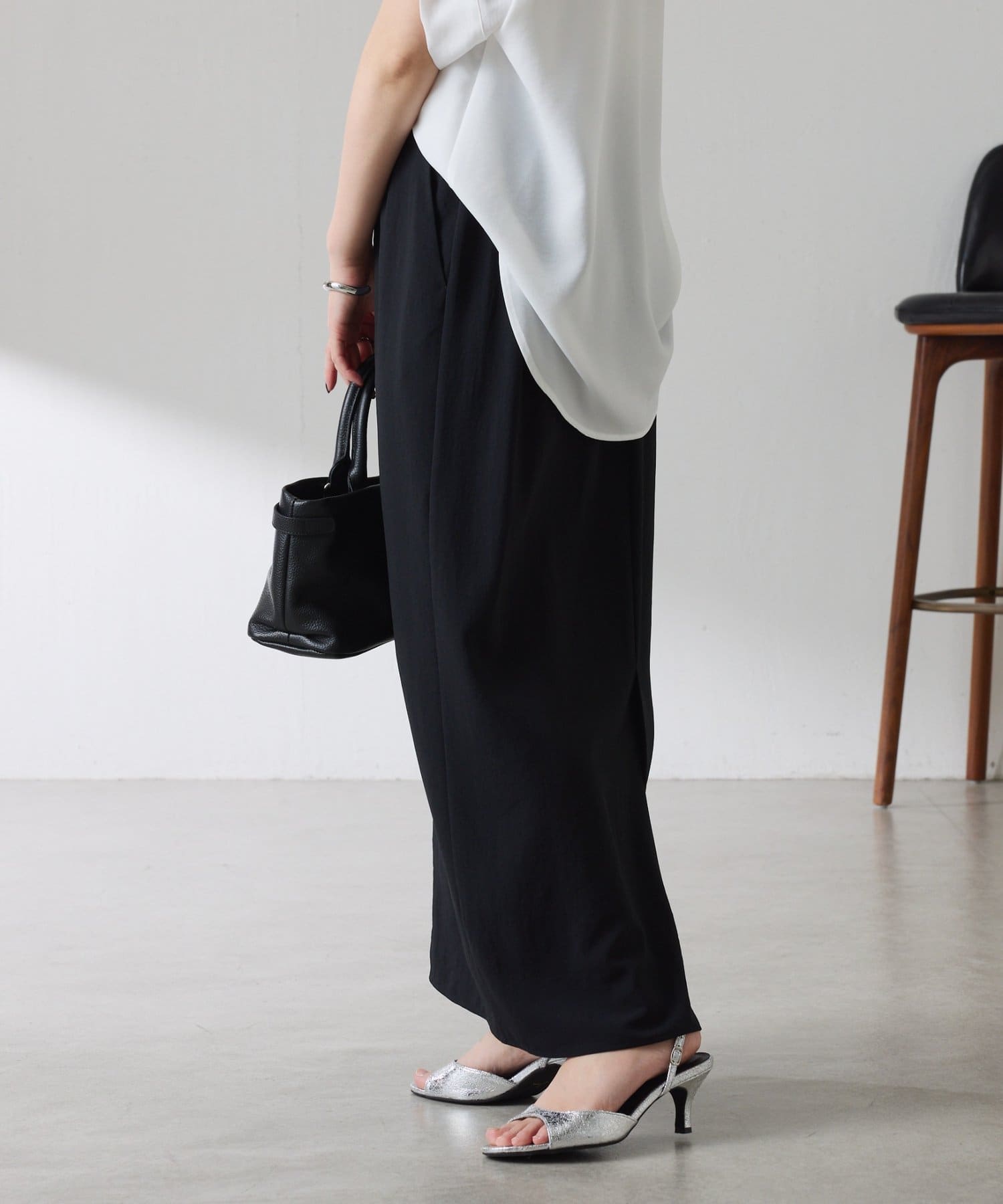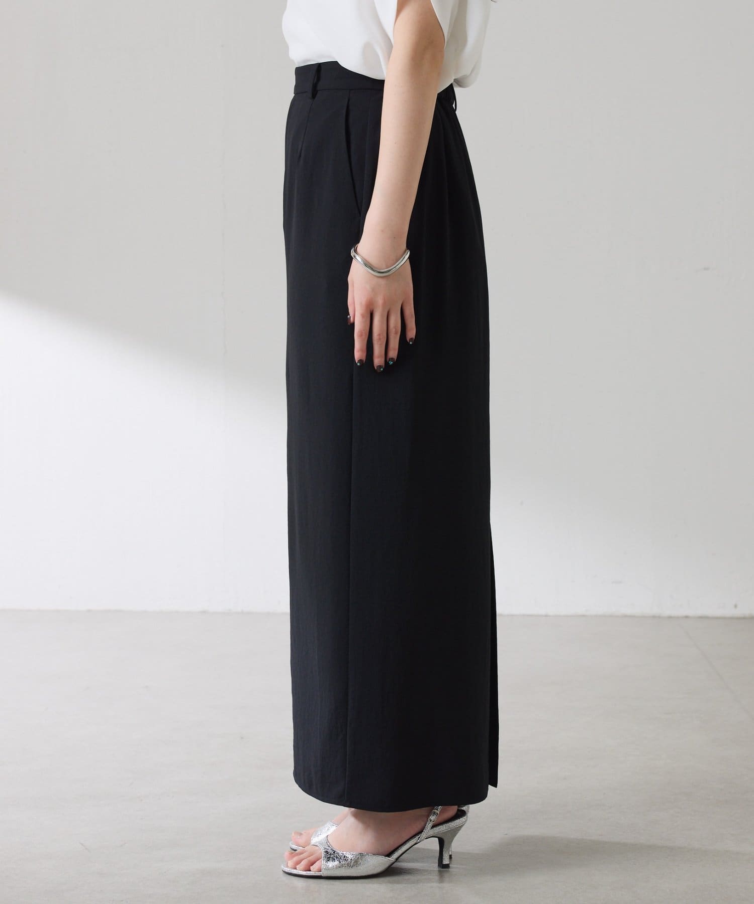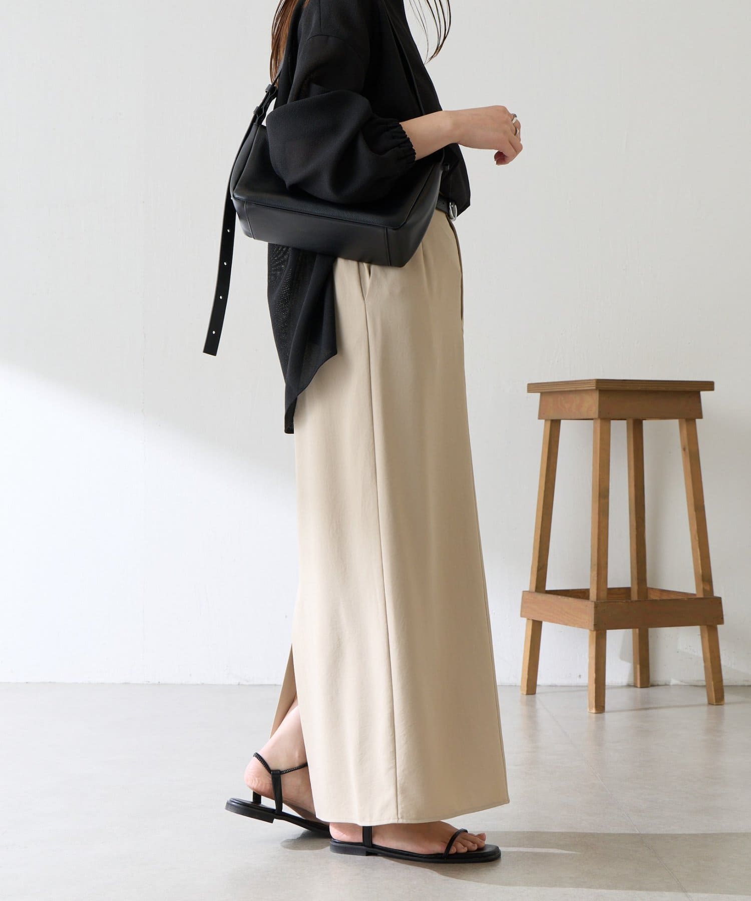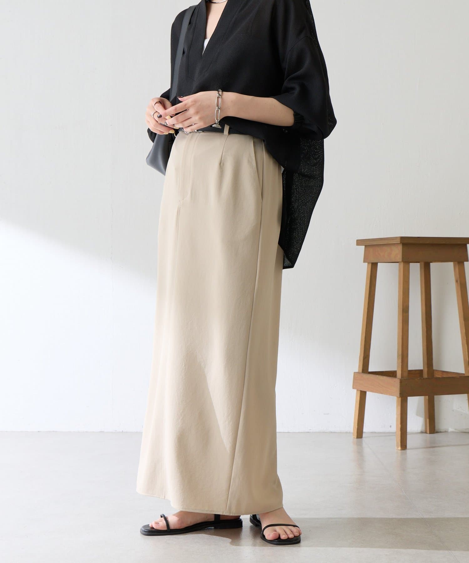同素材のトップスやジャケットと合わせてお仕事や夏のきちんとシーンにも活躍します。