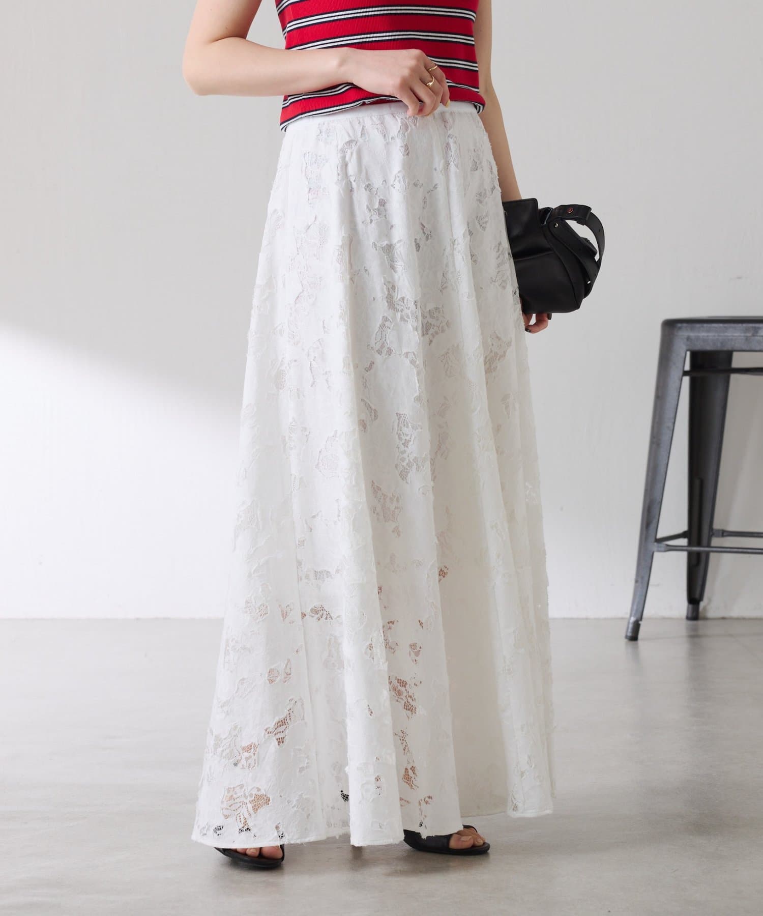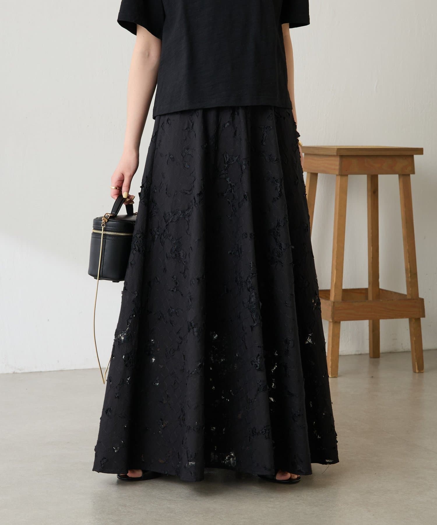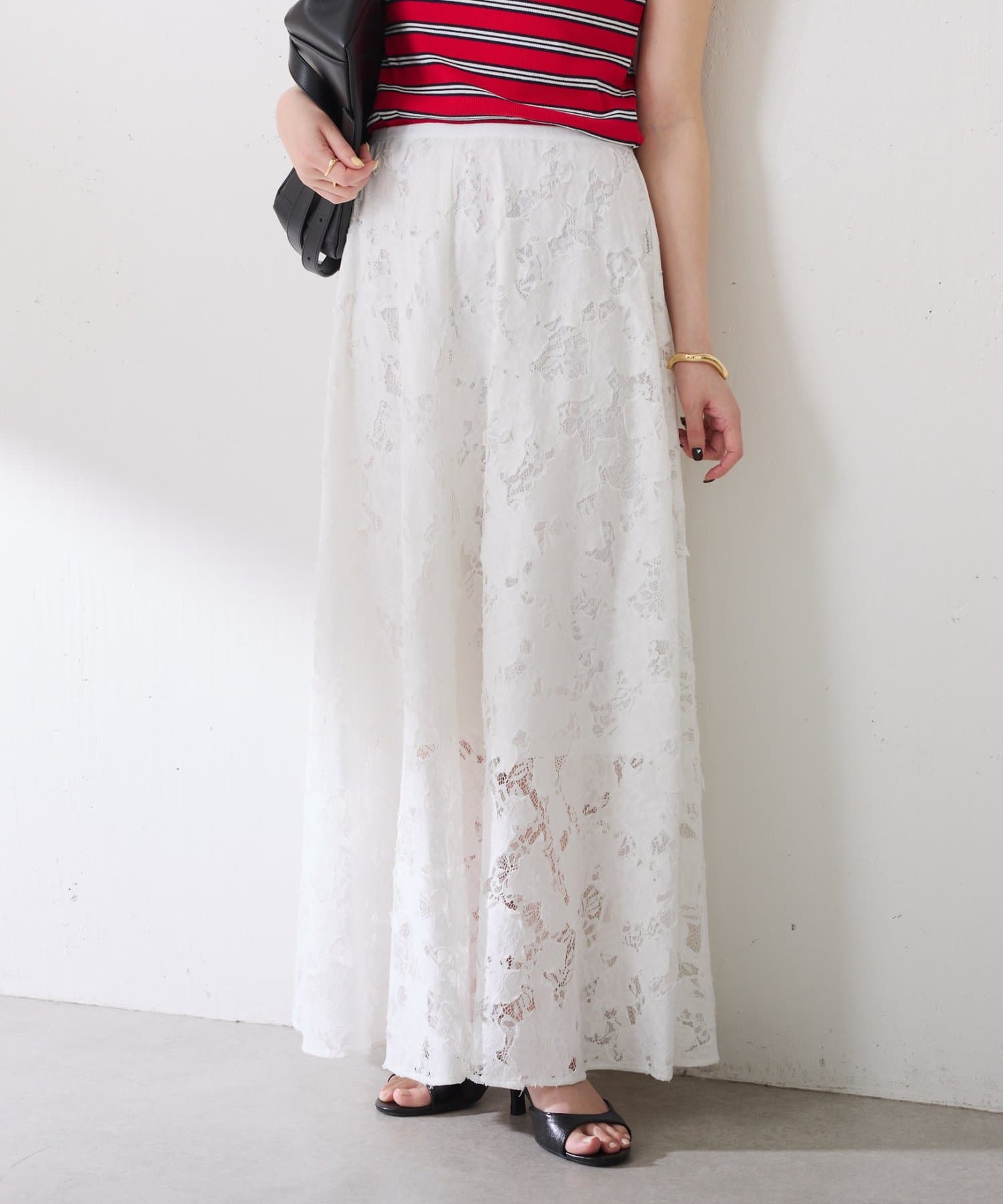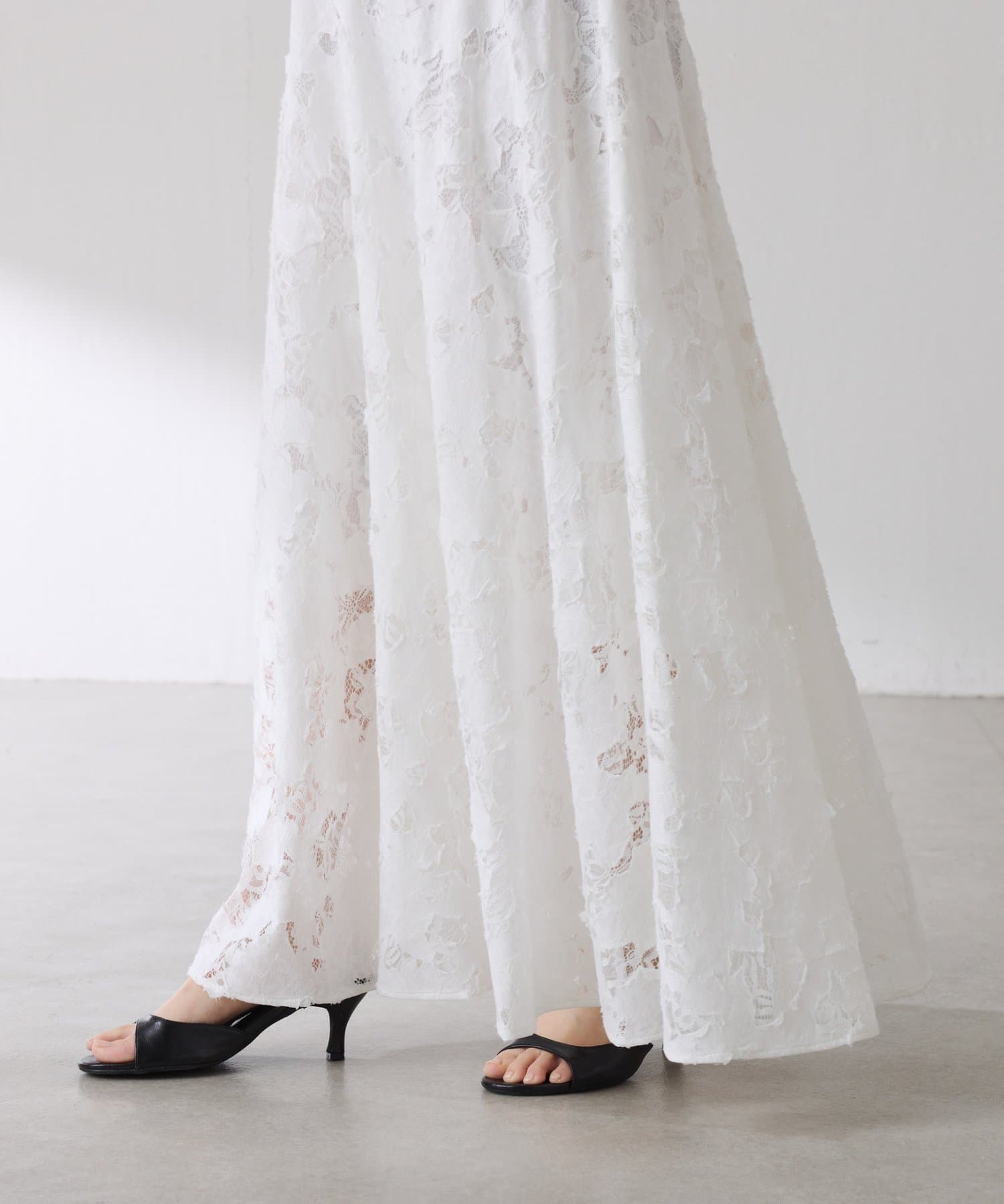 軽やかなレースが抜け感を出してくれるフレアスカート