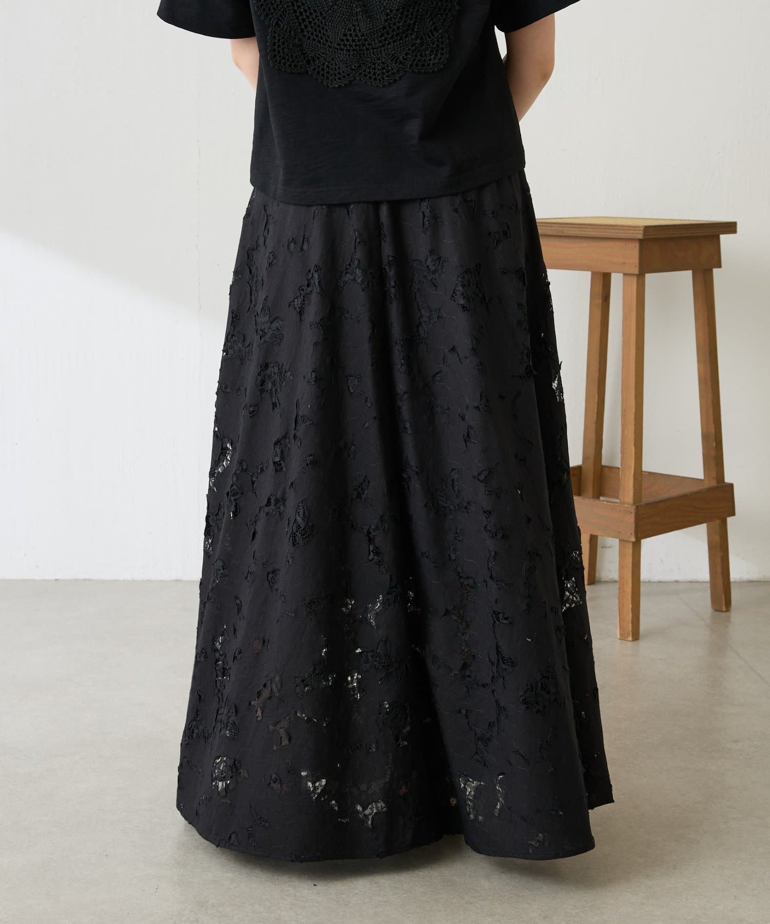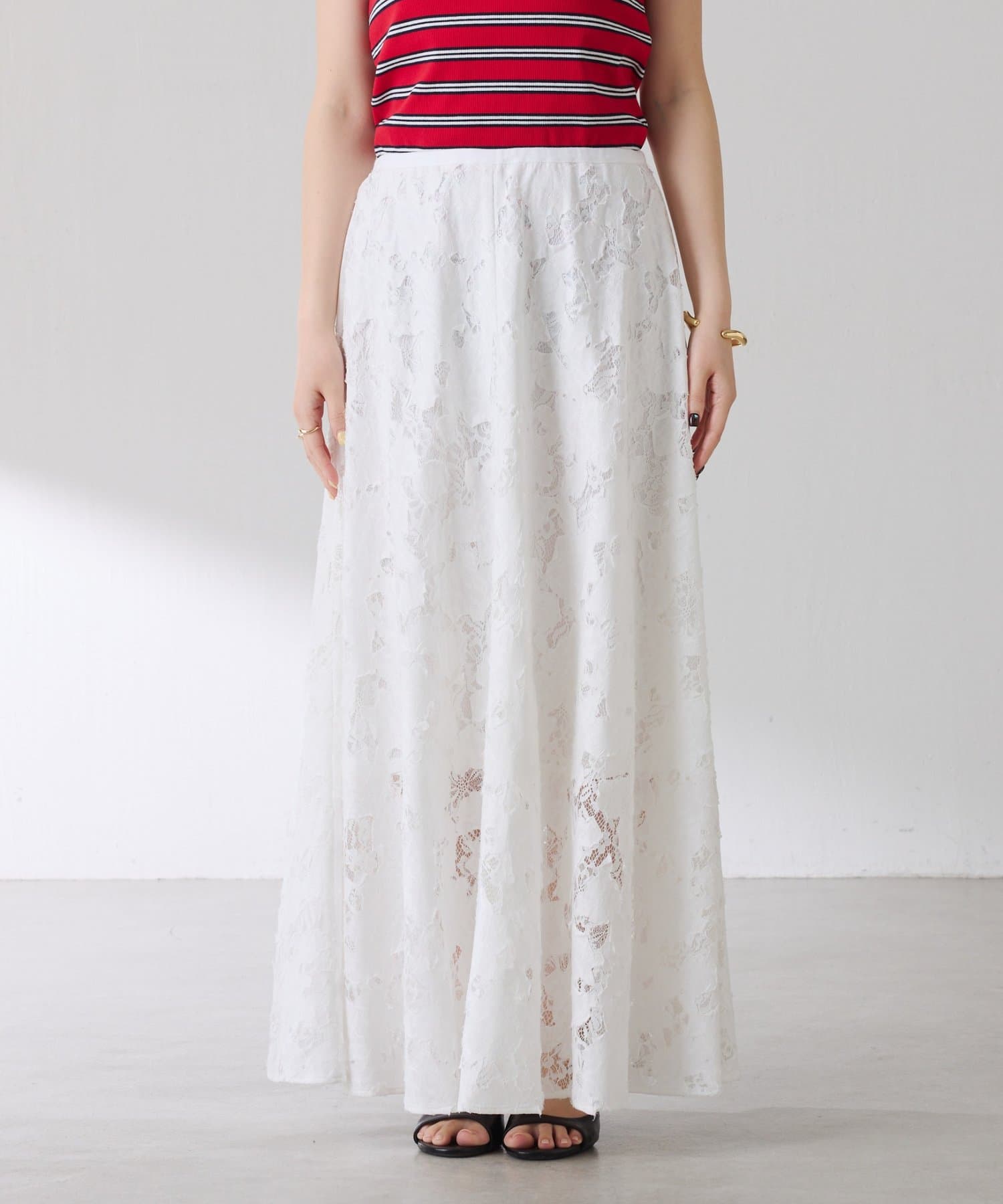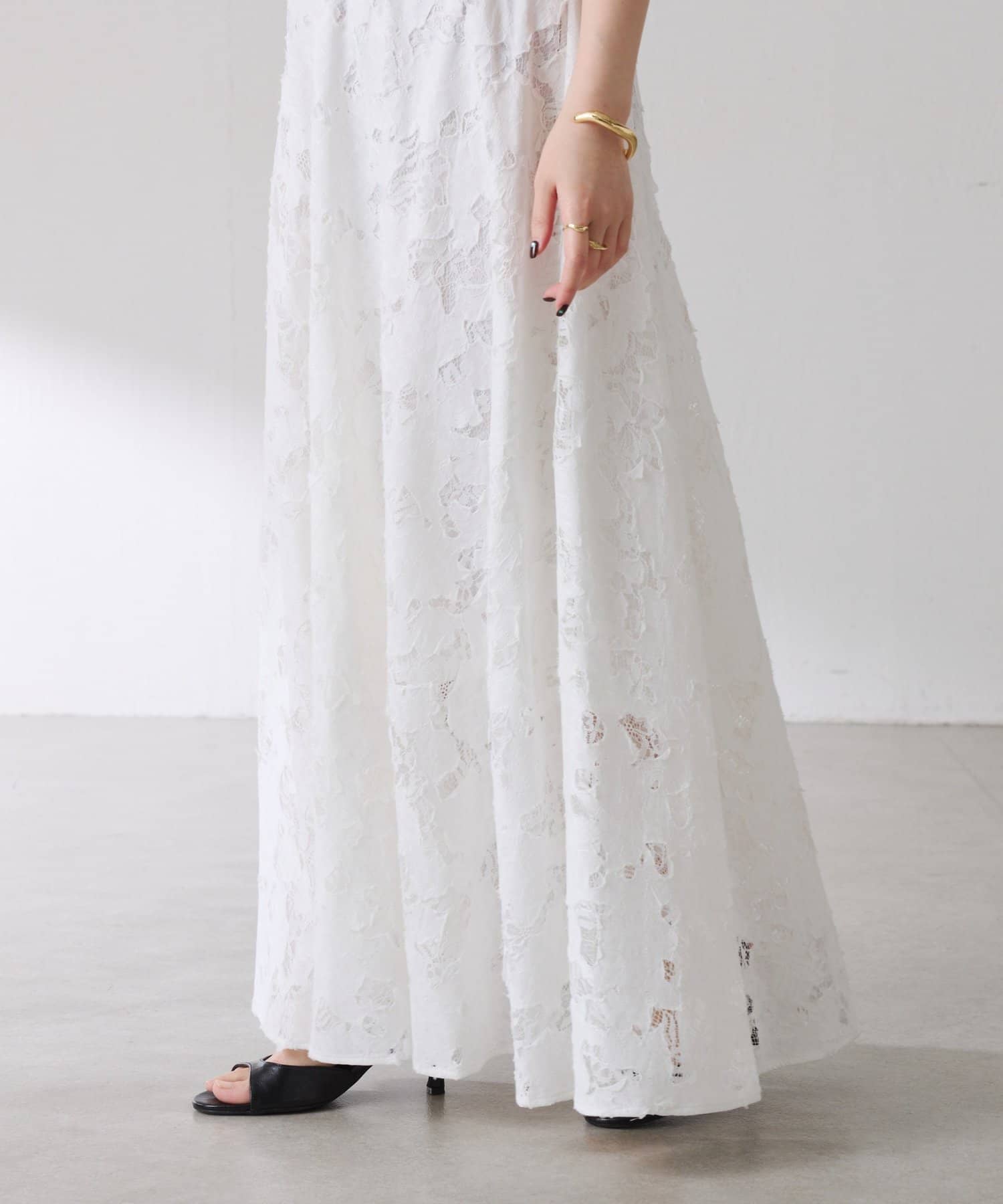 軽やかなレースが抜け感を出してくれるフレアスカート