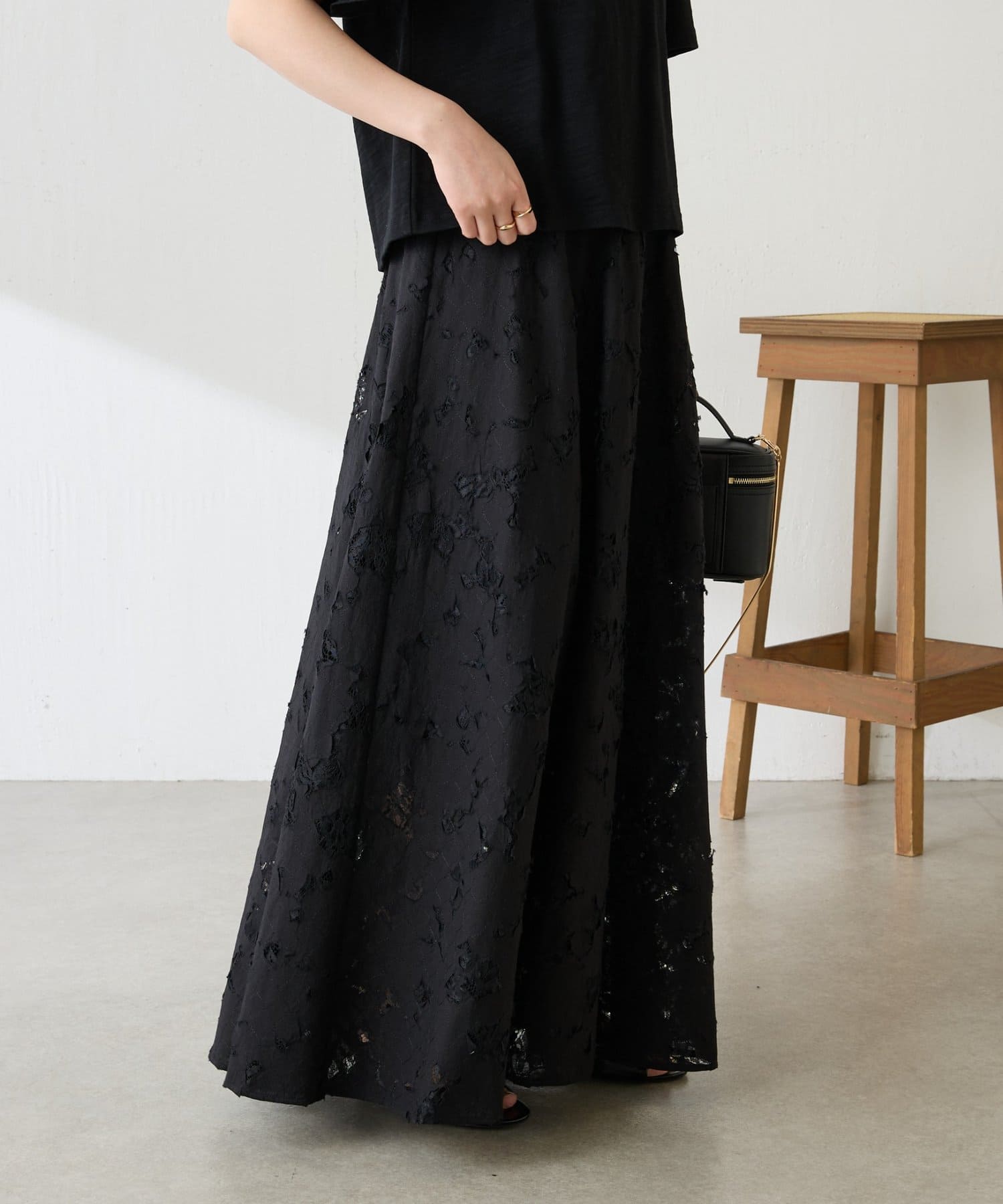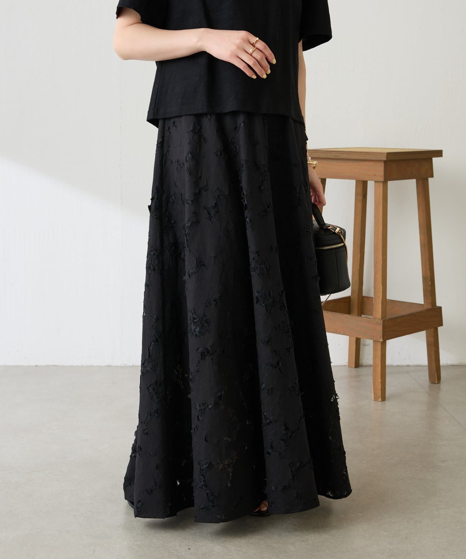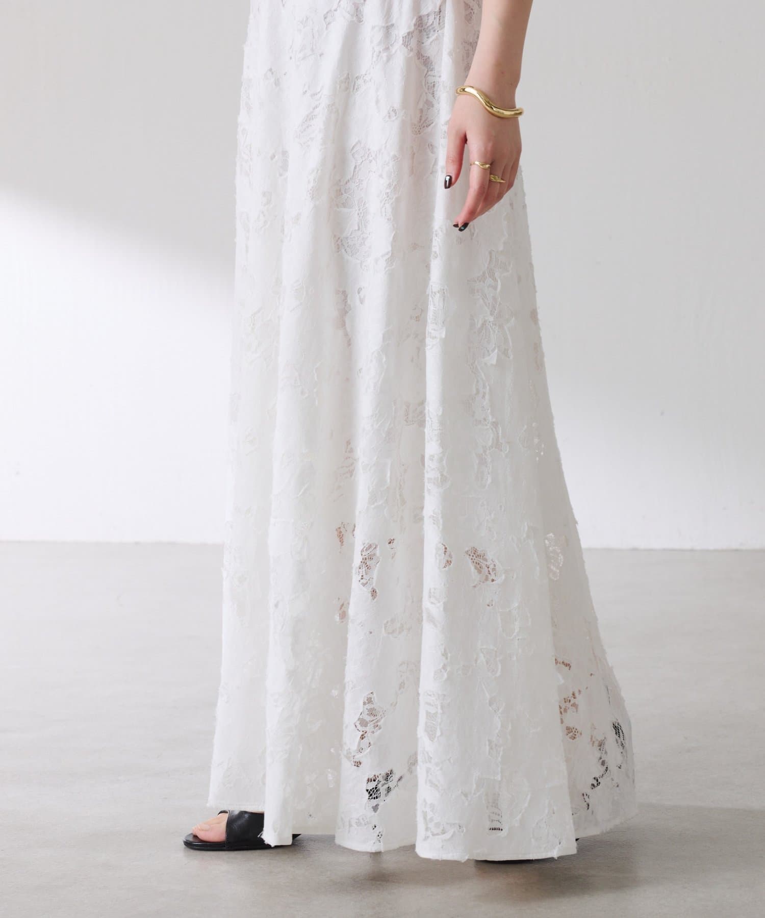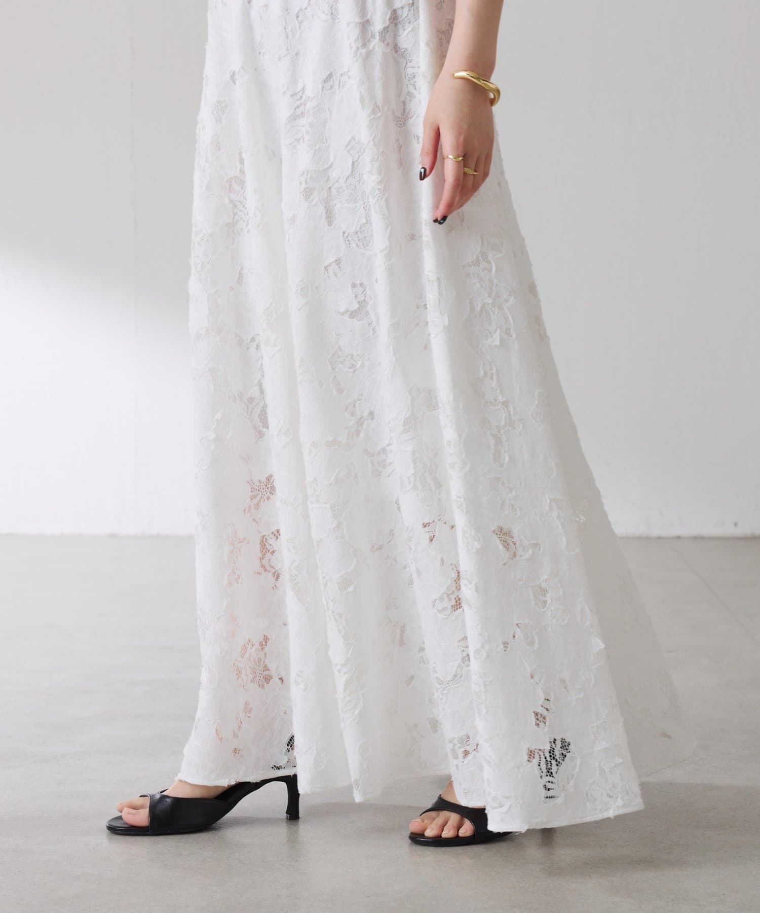 軽やかなレースが抜け感を出してくれるフレアスカート
