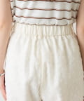 ・フサフサした立体的なフラワー柄の生地を使用した着映えパンツです。